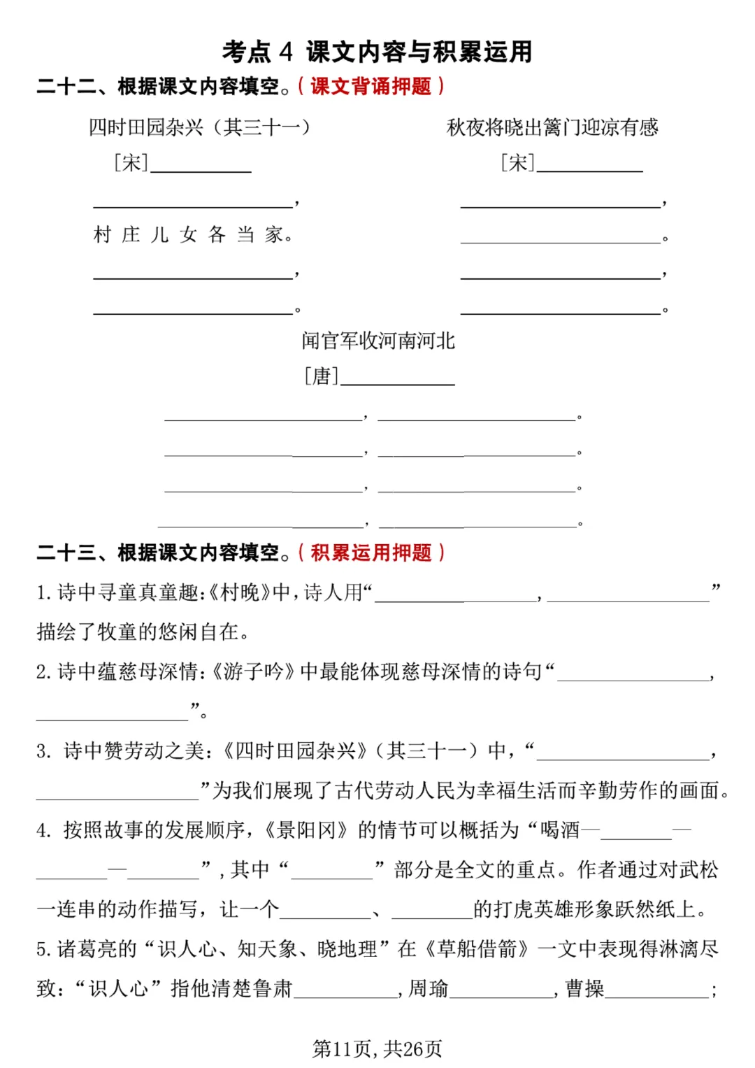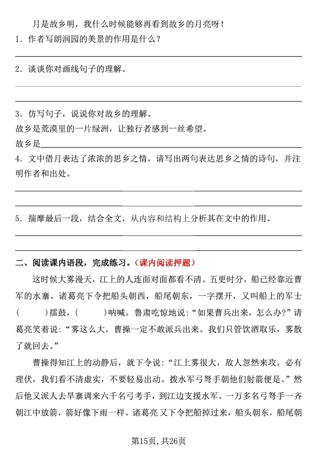 今天给大家分享的是:【26新五年级下册语文】【人教部编版】 期中冲刺考前复习专项带答案|完整高清电子版可打印