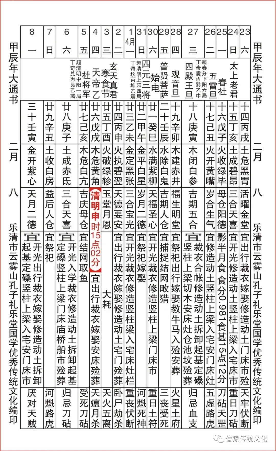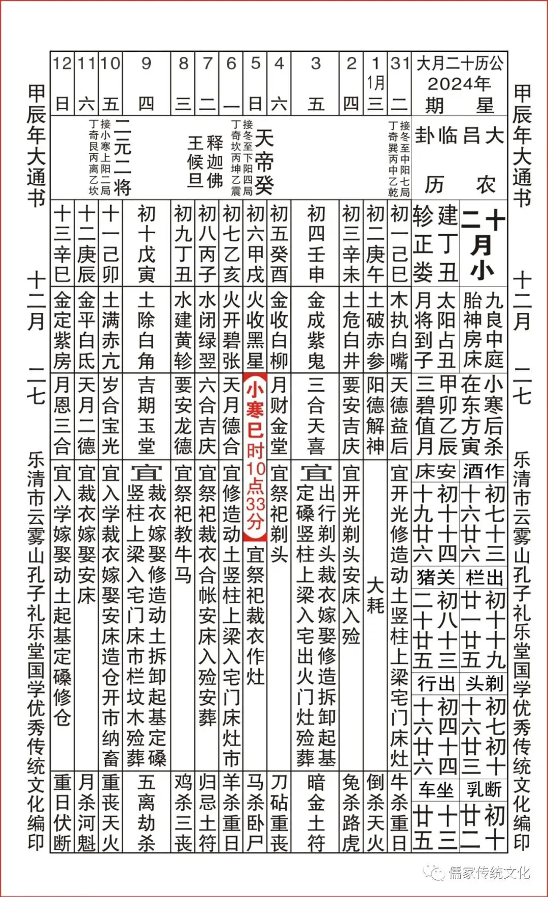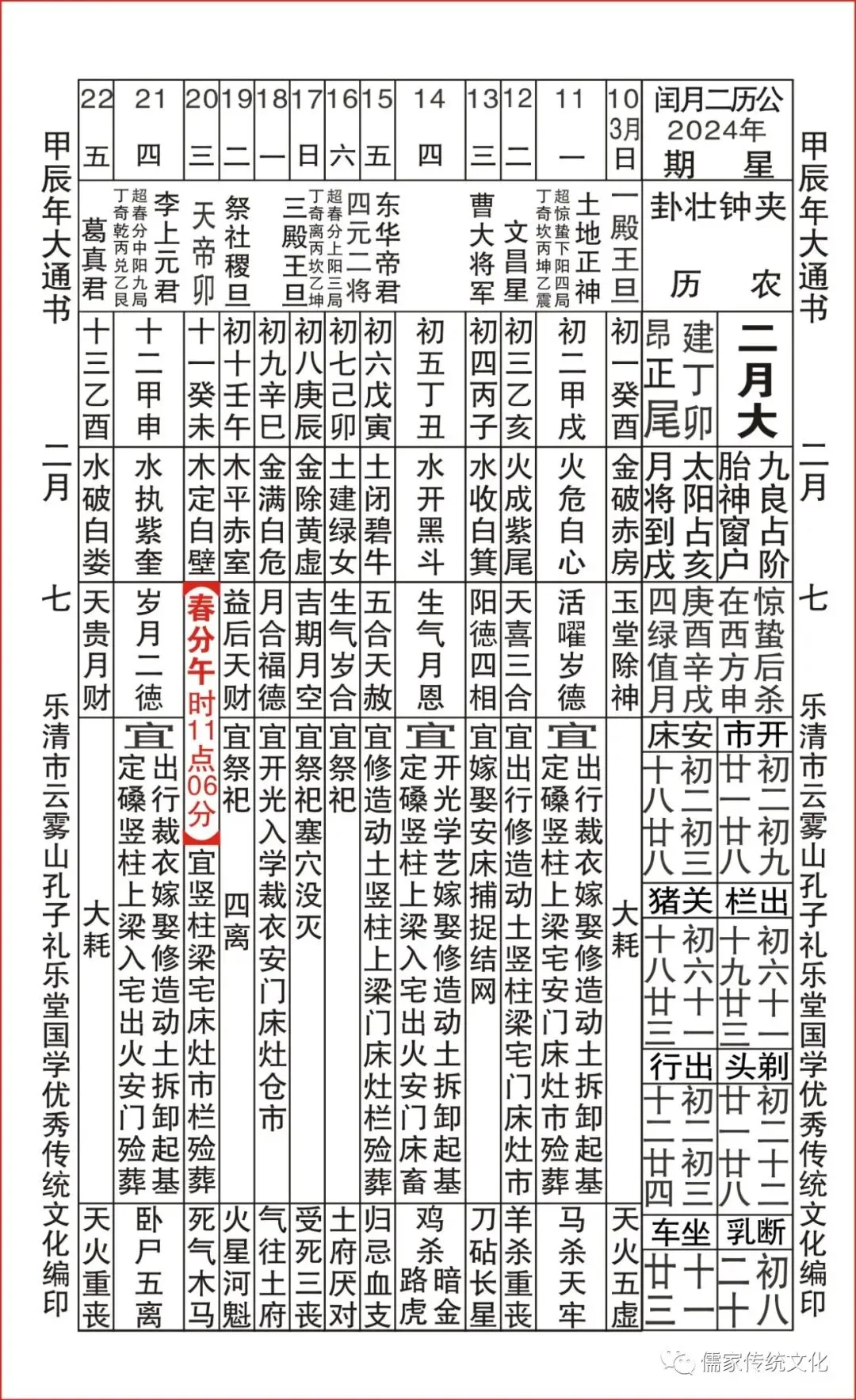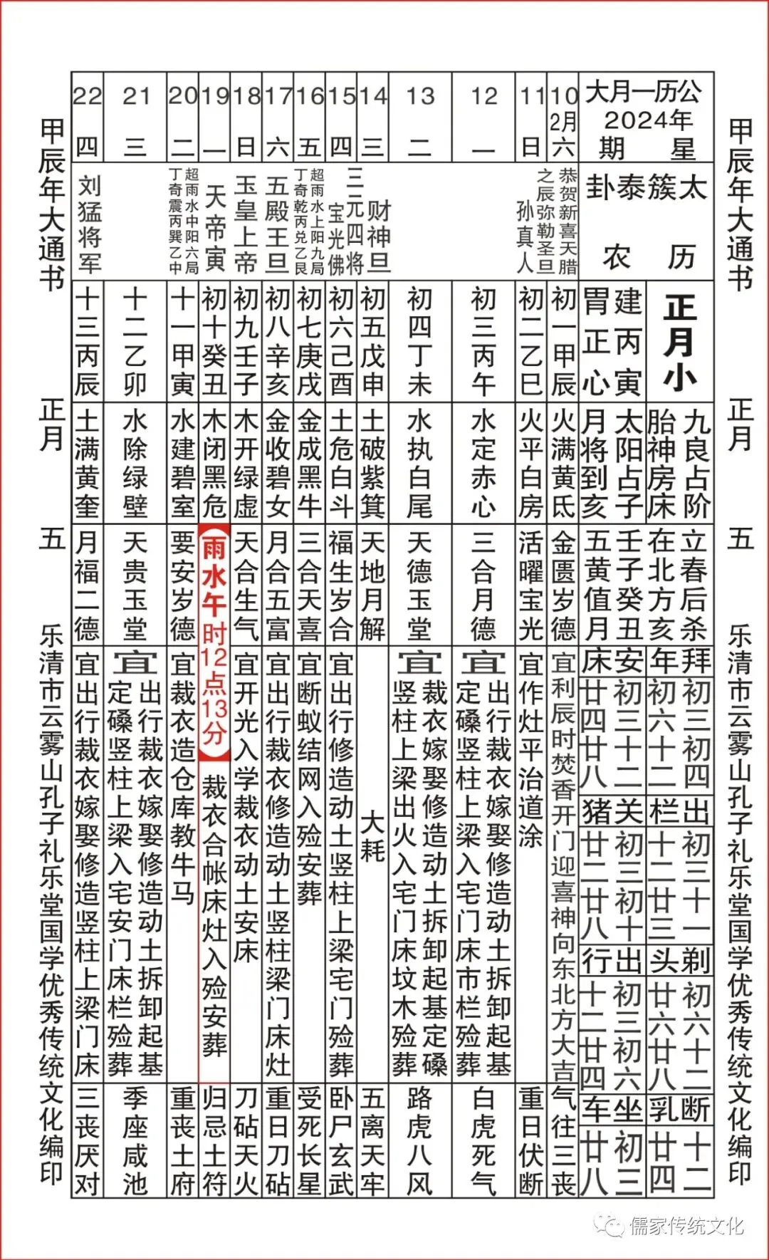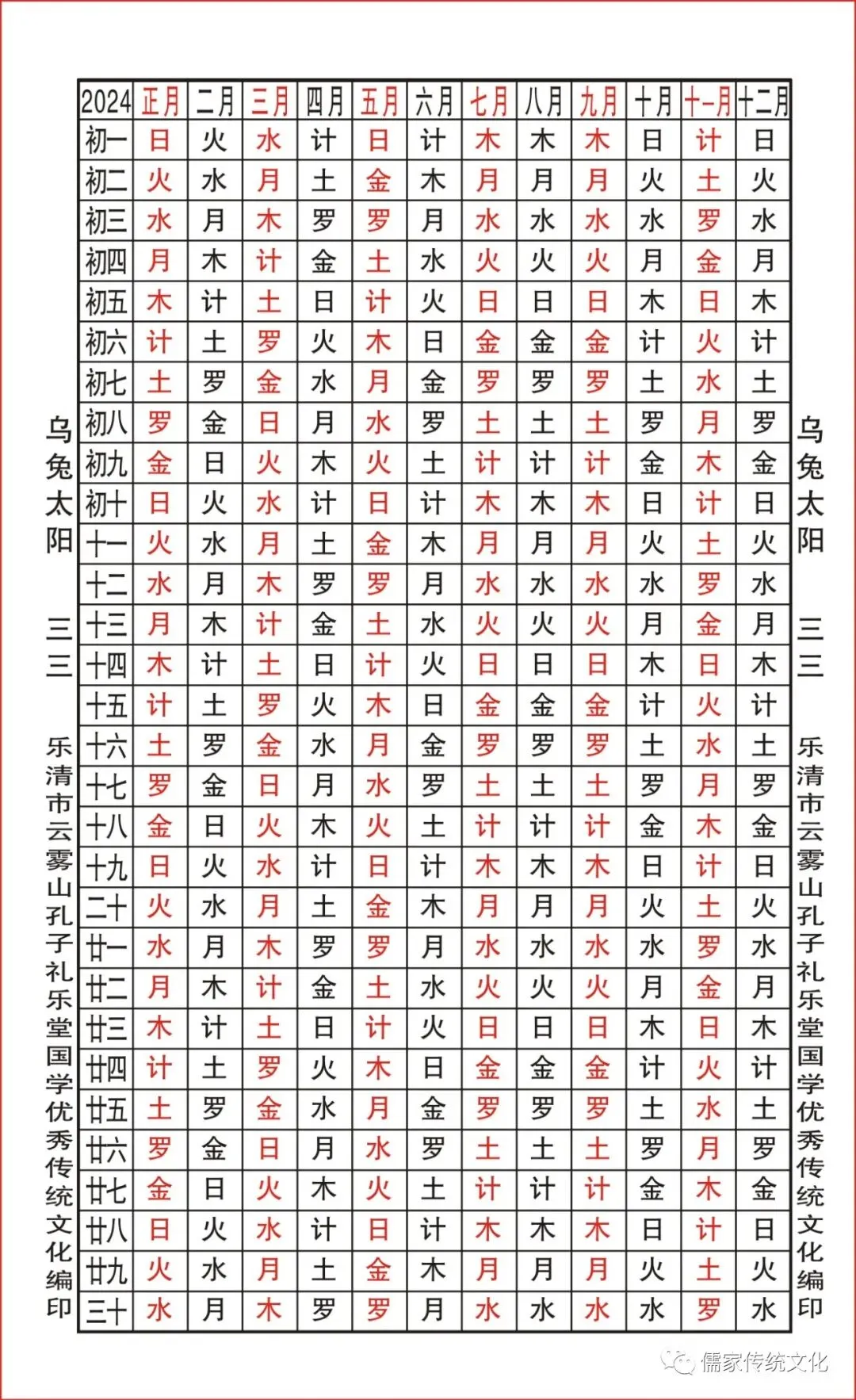 甲辰年乌兔太阳值日查表