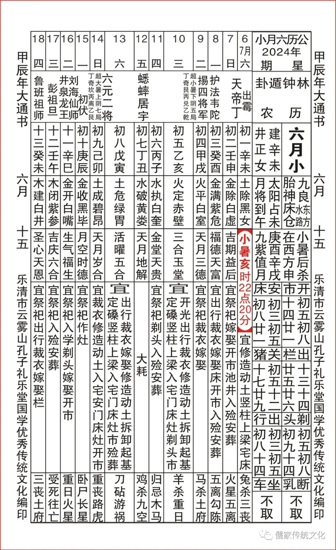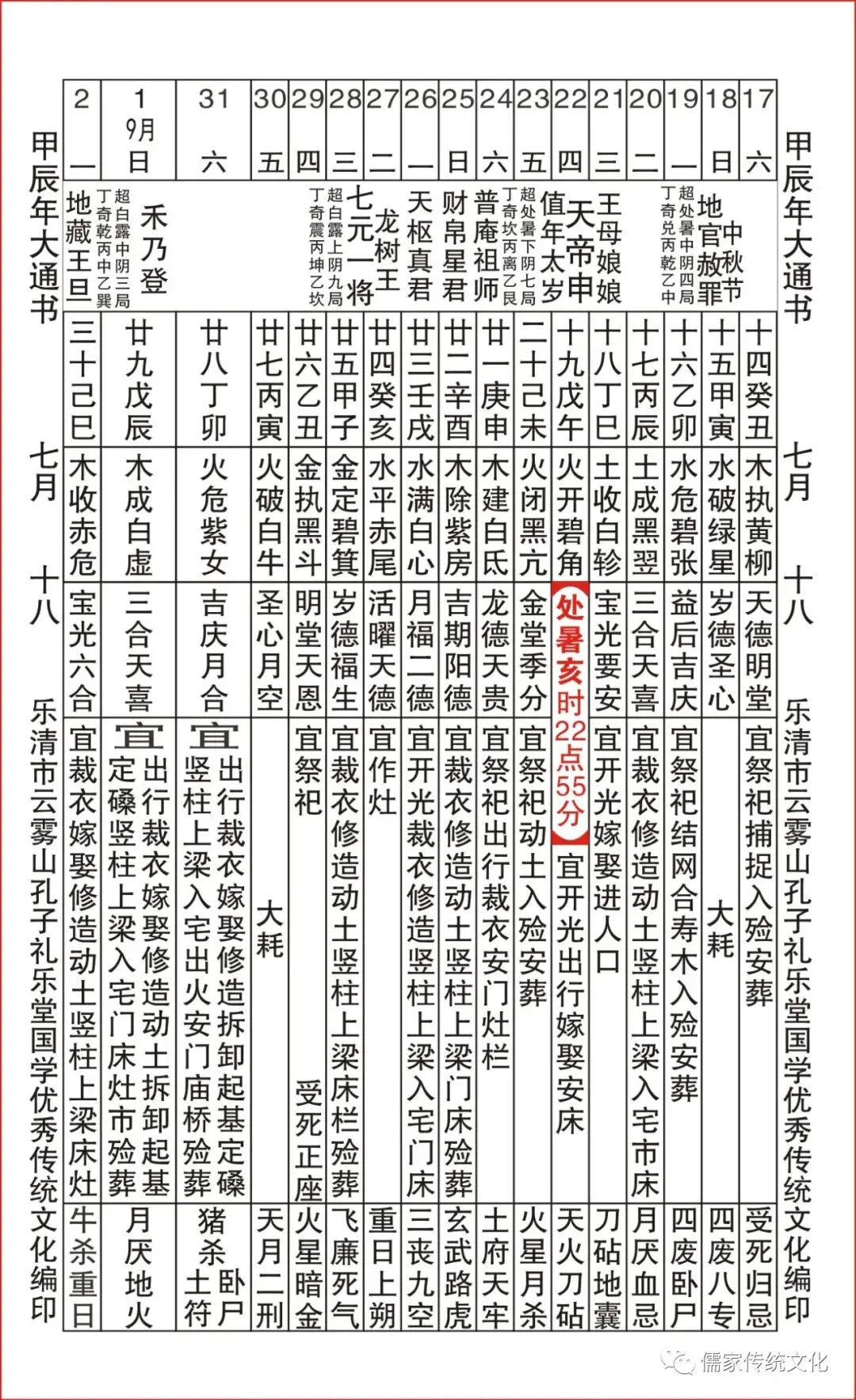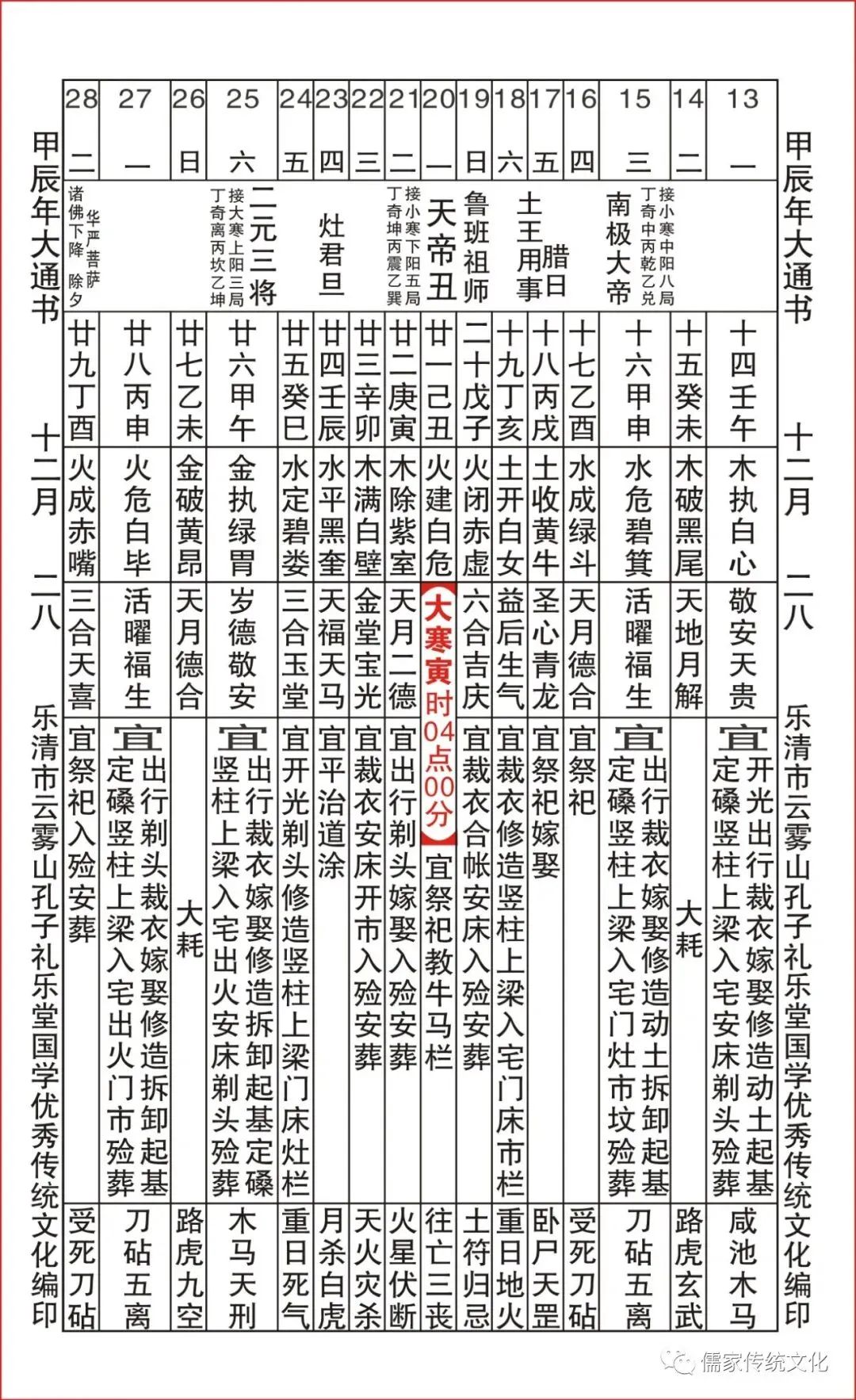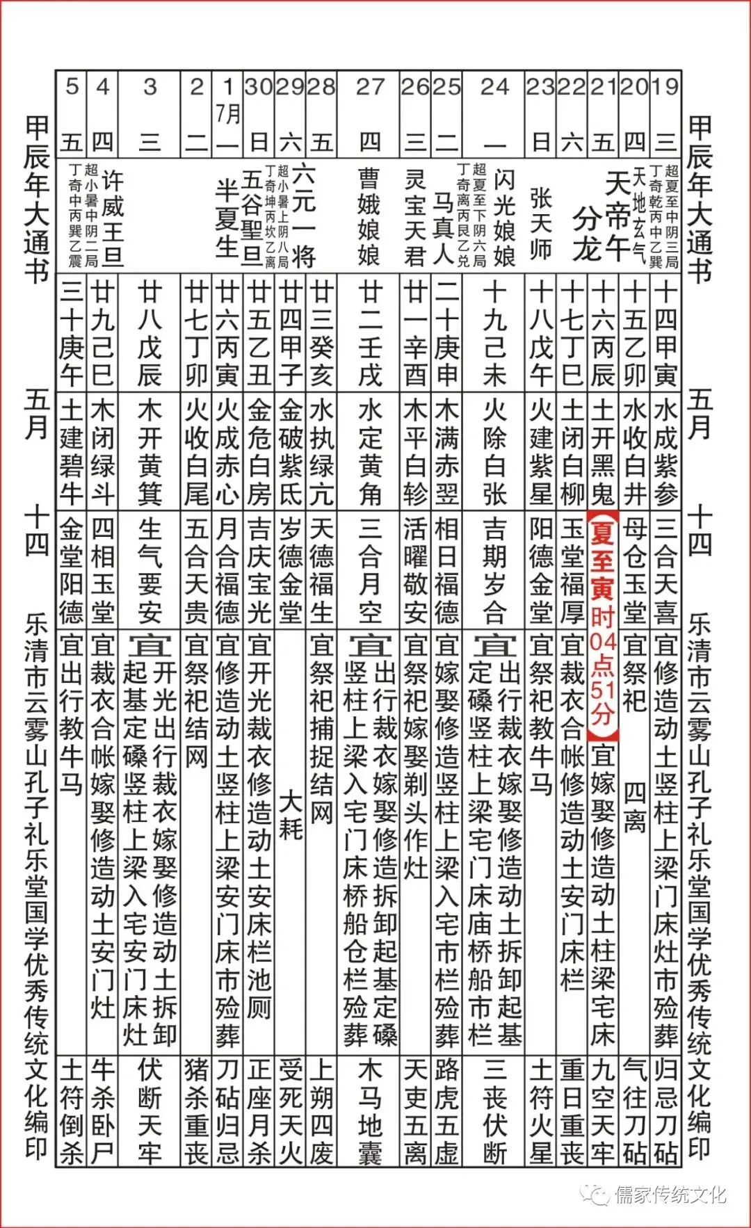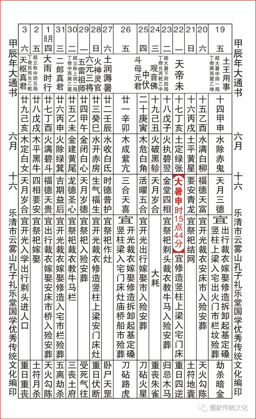 甲辰年乌兔太阳值日查表