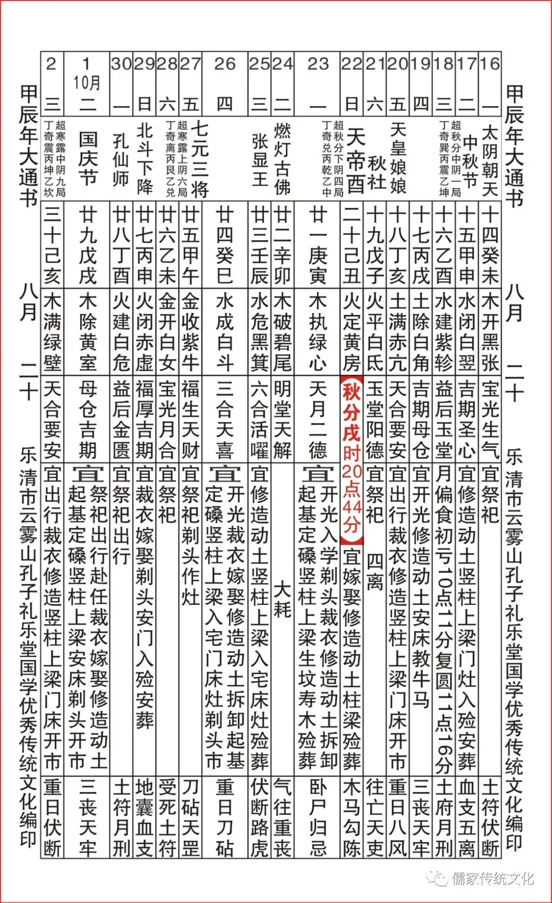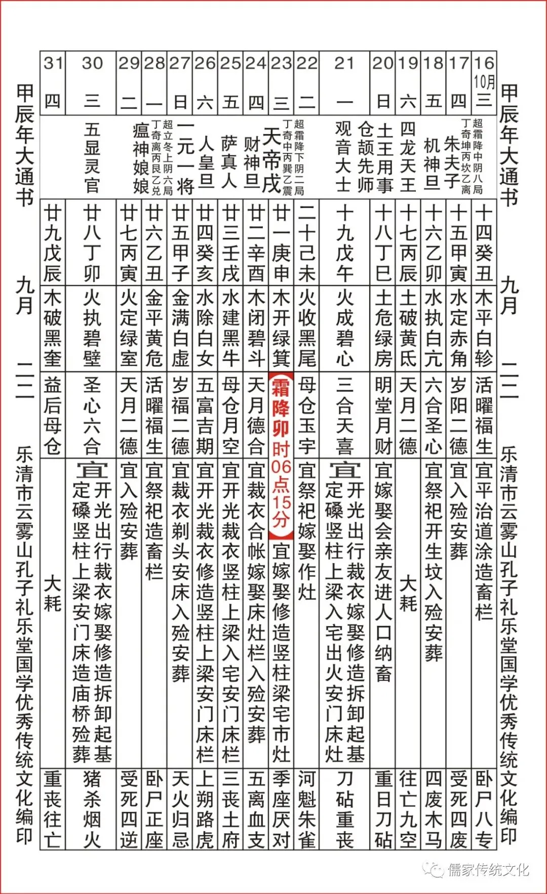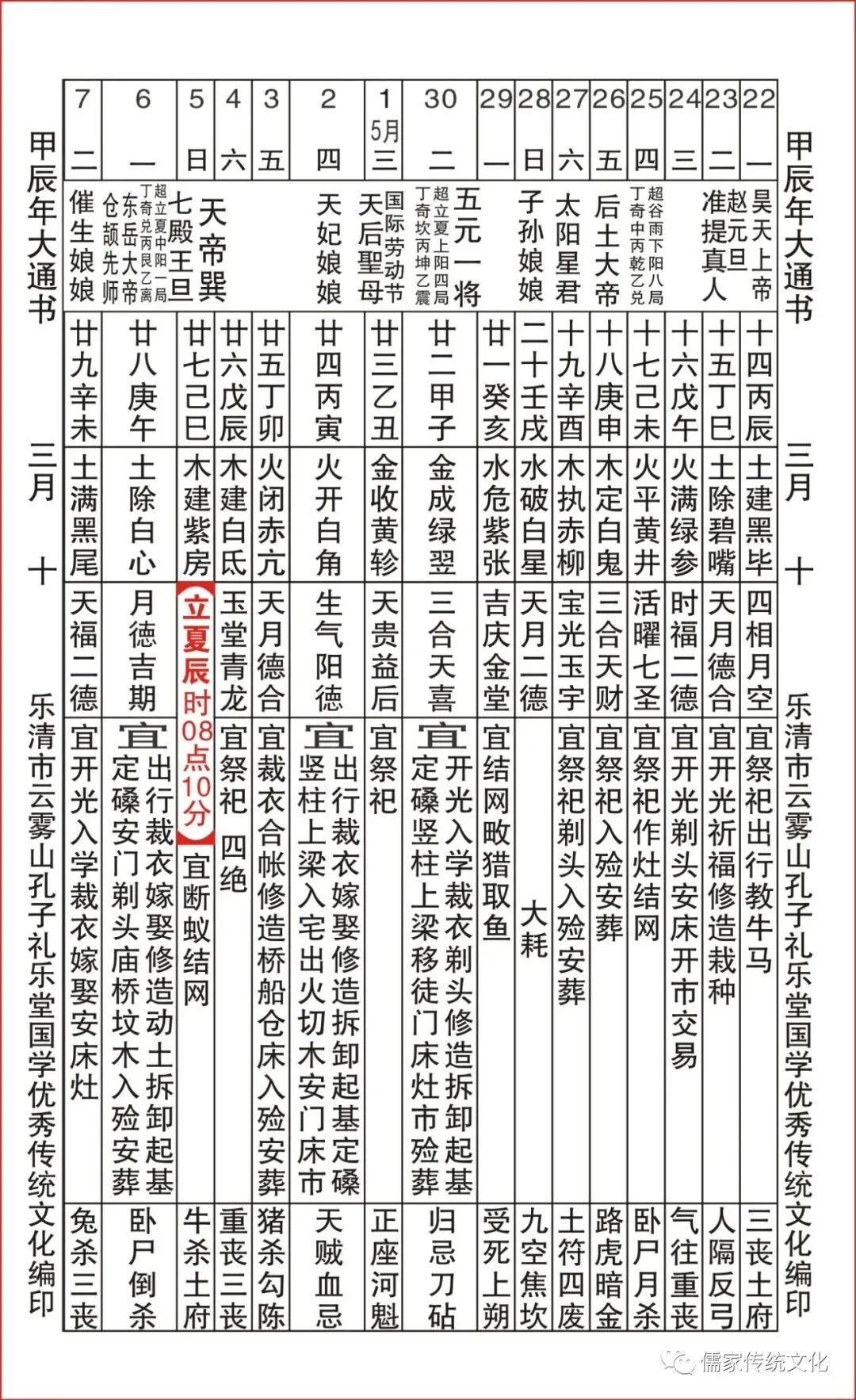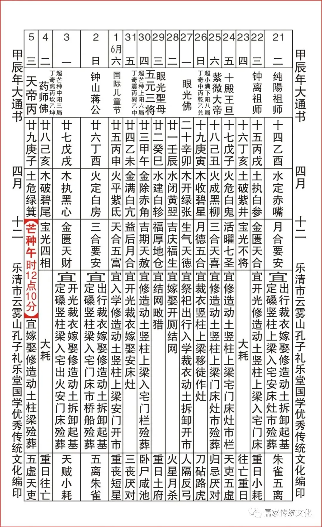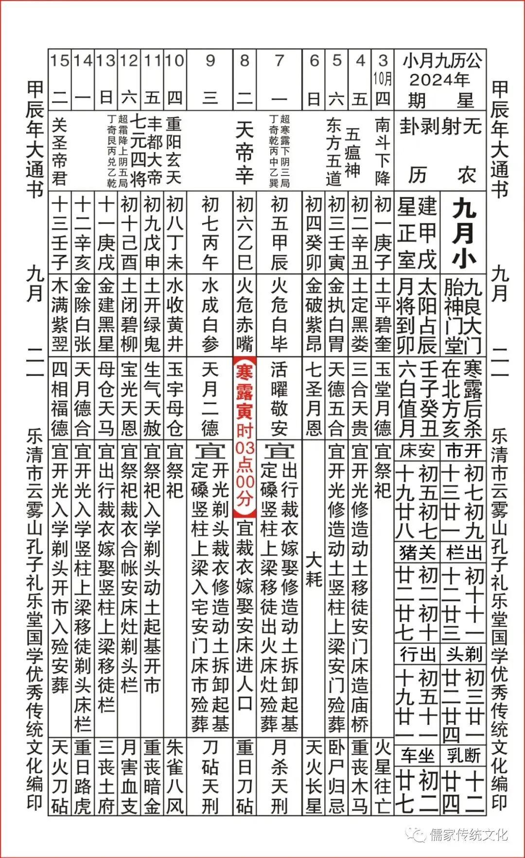 甲辰年乌兔太阳值日查表
