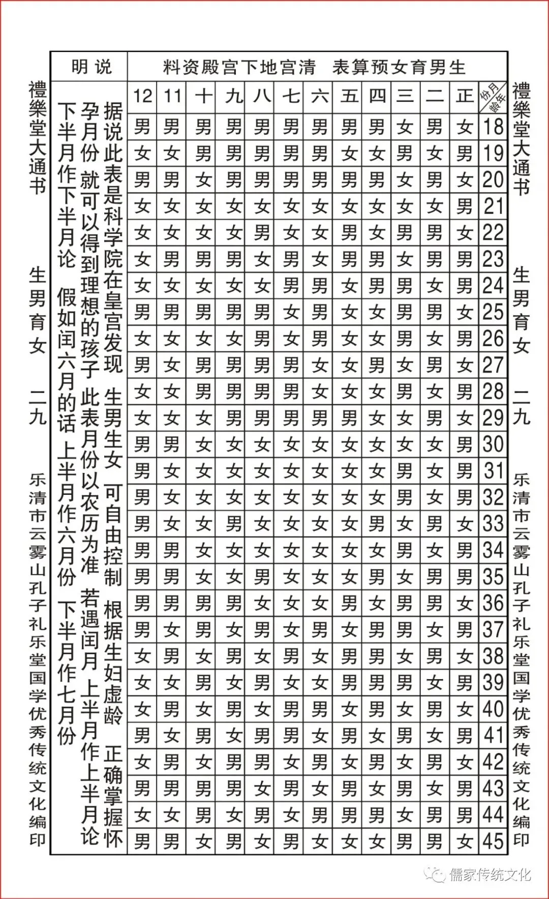 生男育女查表