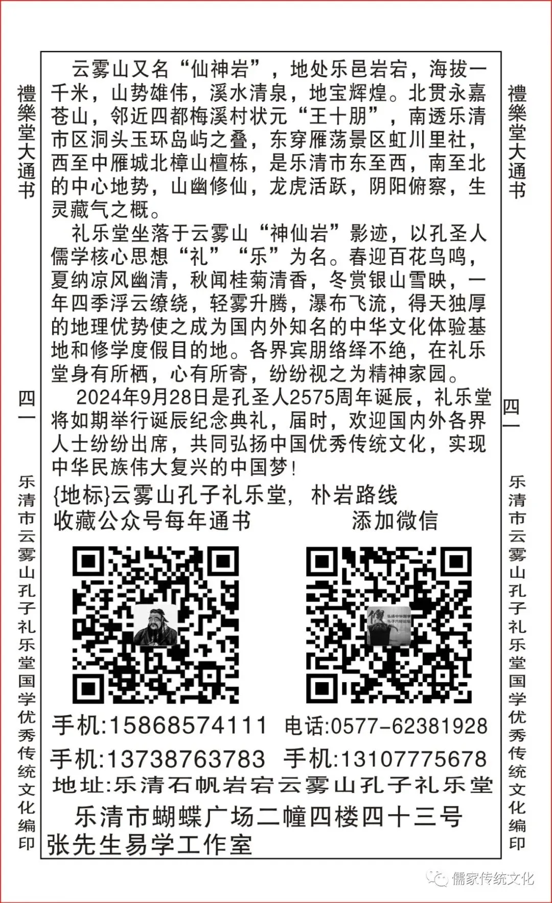 本堂弘扬国学优秀传统文化易学的精髓,若有爱好学习风水择日者、有缘前来温州乐清市石帆街道云雾山“孔子礼乐堂”,学述互相交流……