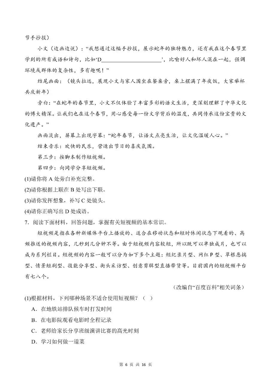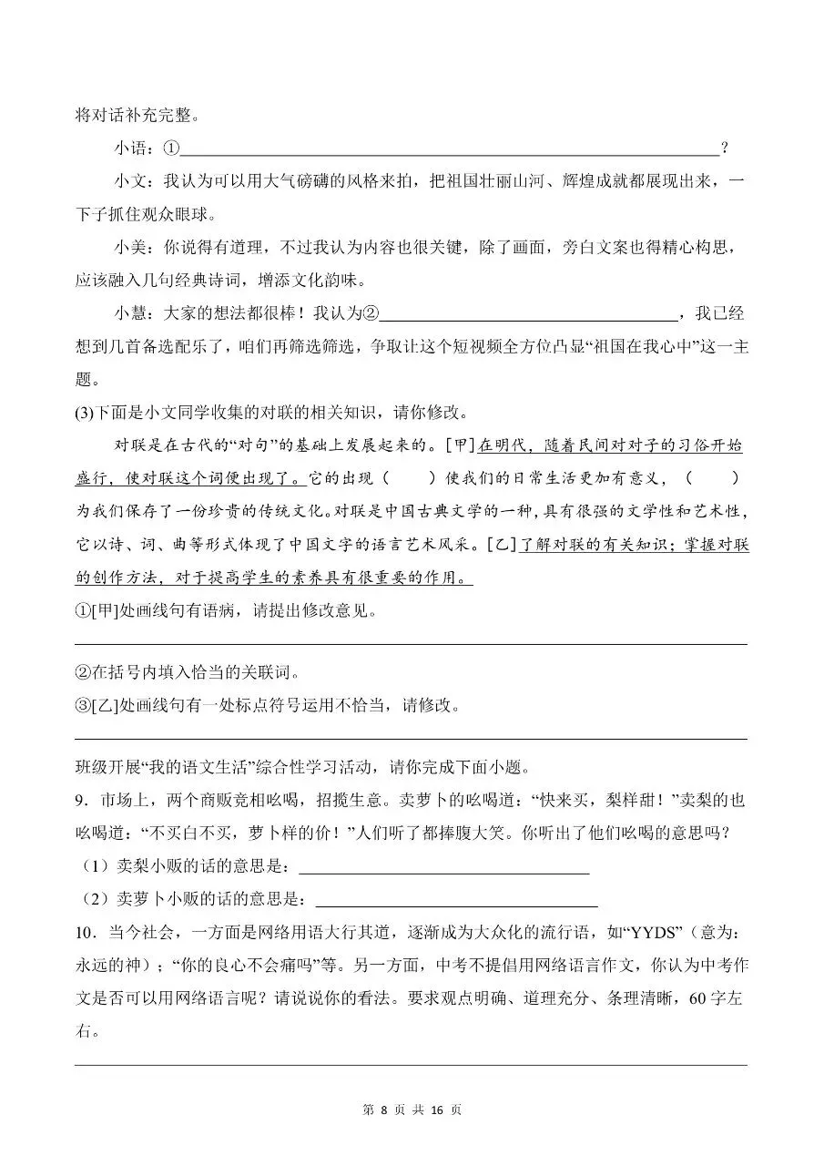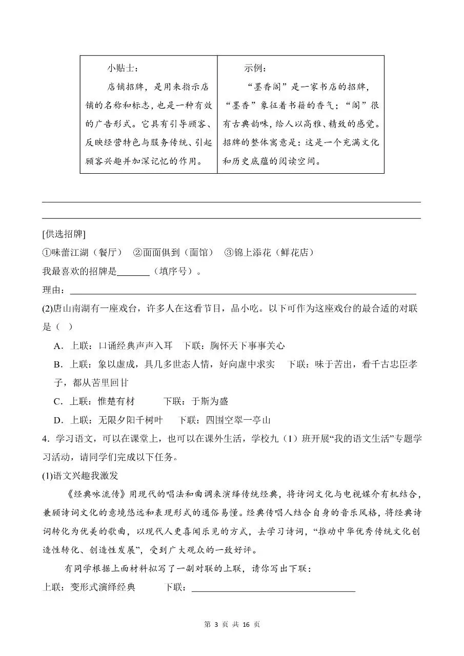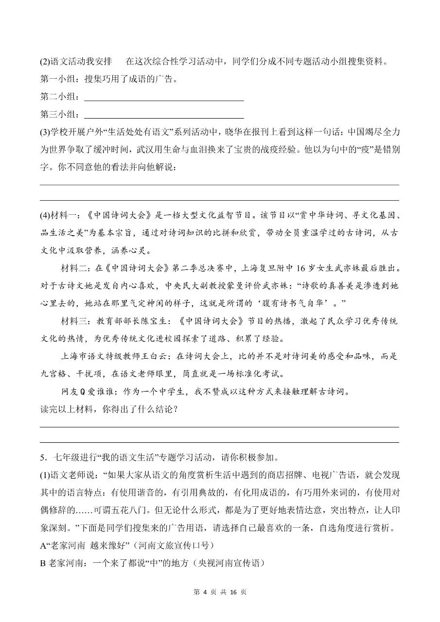 2026年春新版七年级下册人教版语文期中考试复习专题学习《我的语文生活》+整本书阅读《骆驼祥子》,完整电子版含答案
