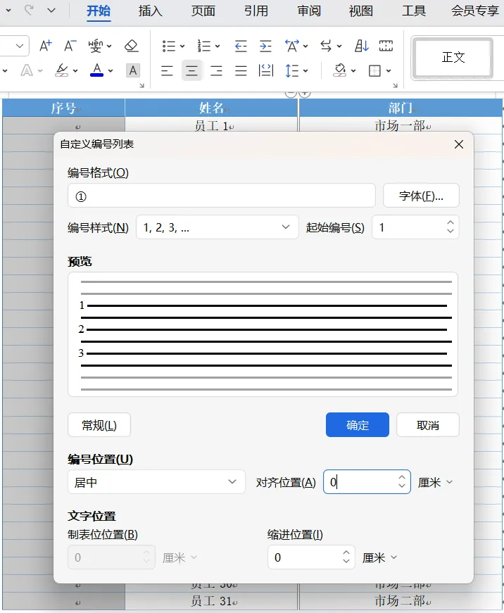 4、完成编号格式、样式、位置等设置