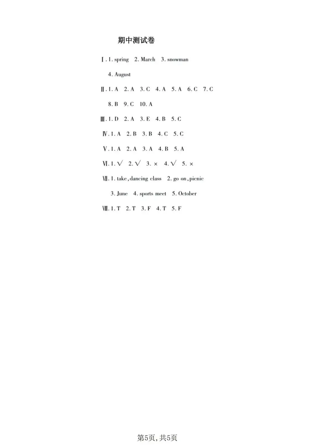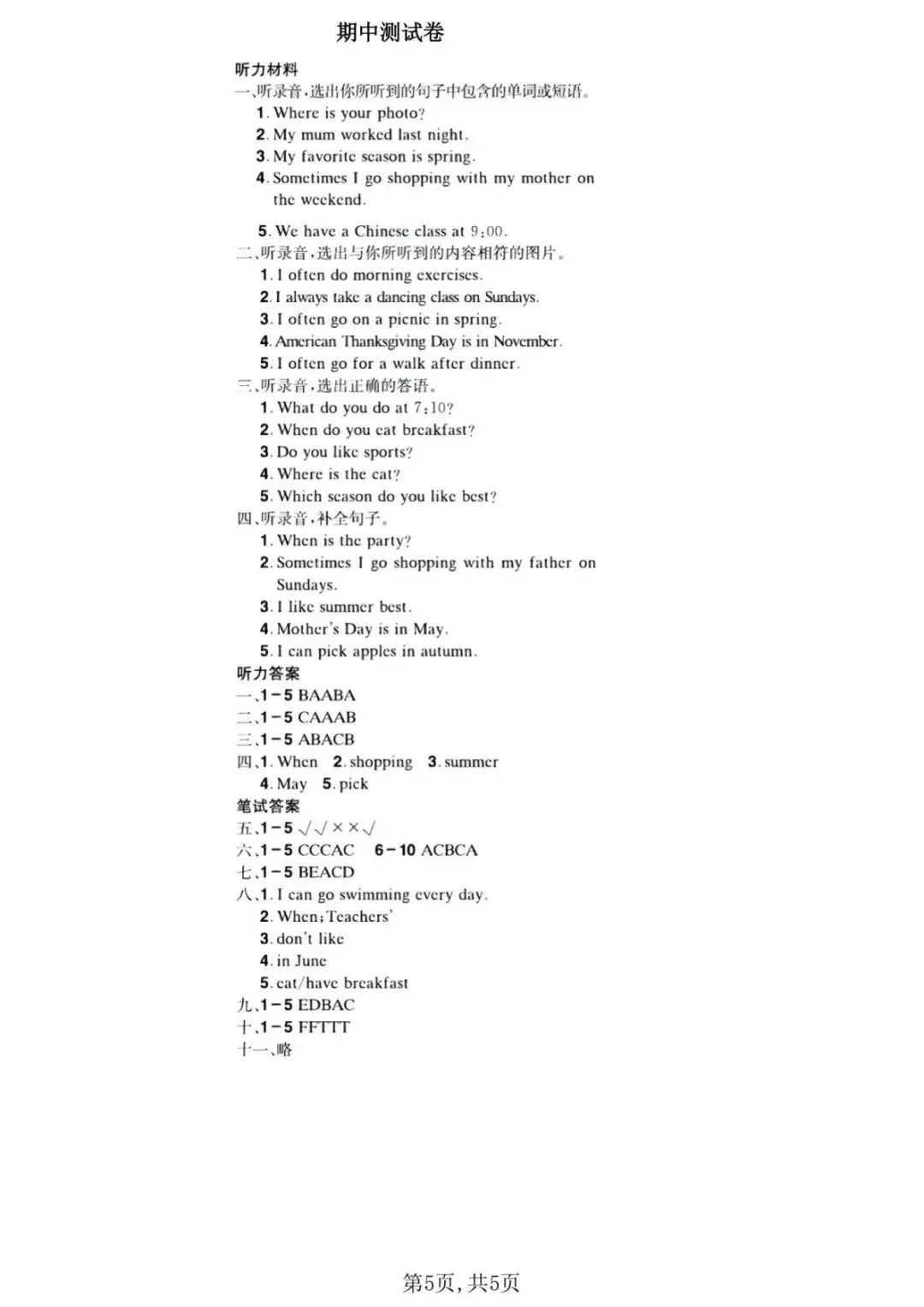 26春人教PEP版五年级下册英语《期中真题测试卷》(5套+听力+答案)| 可打印
