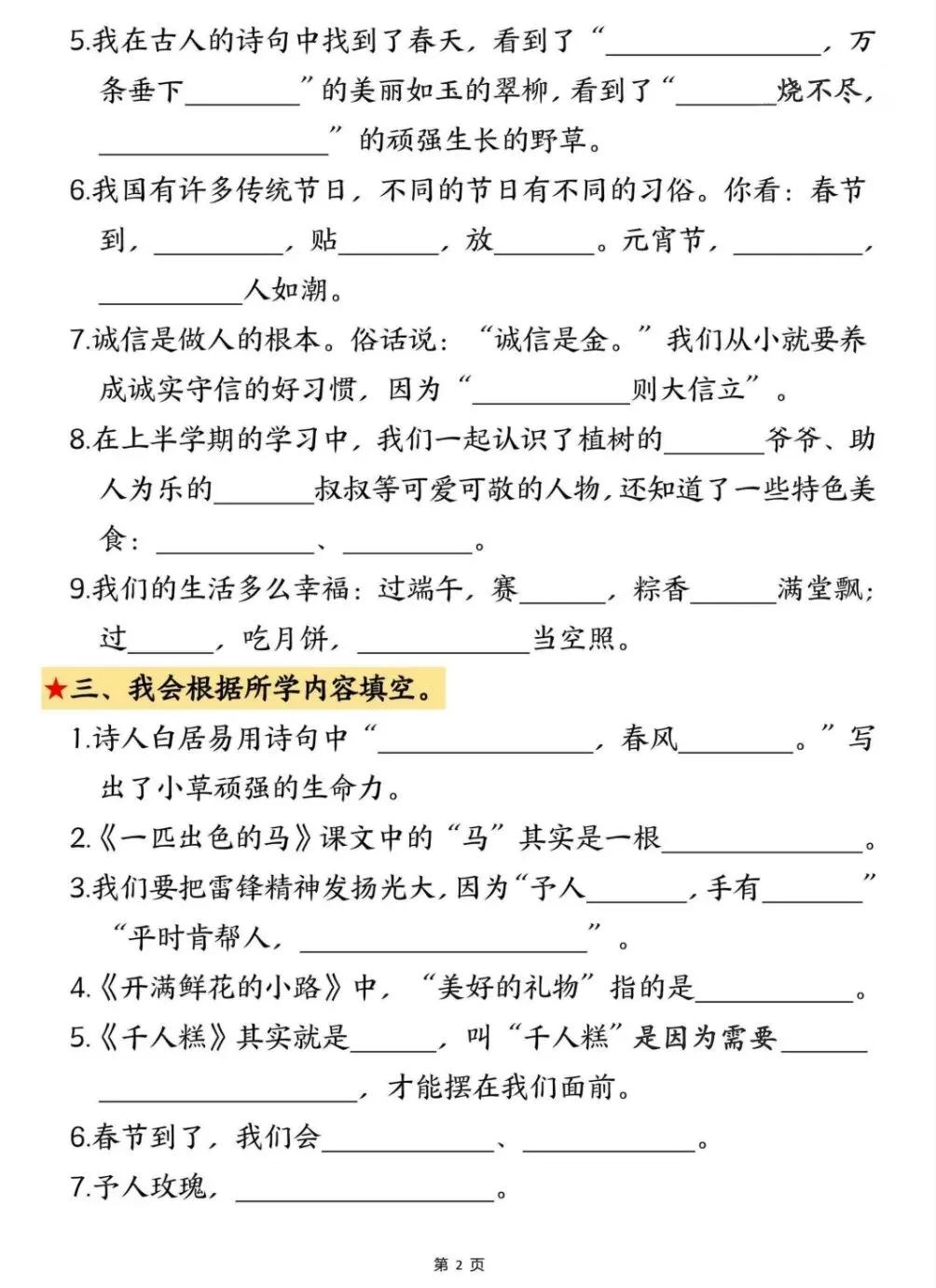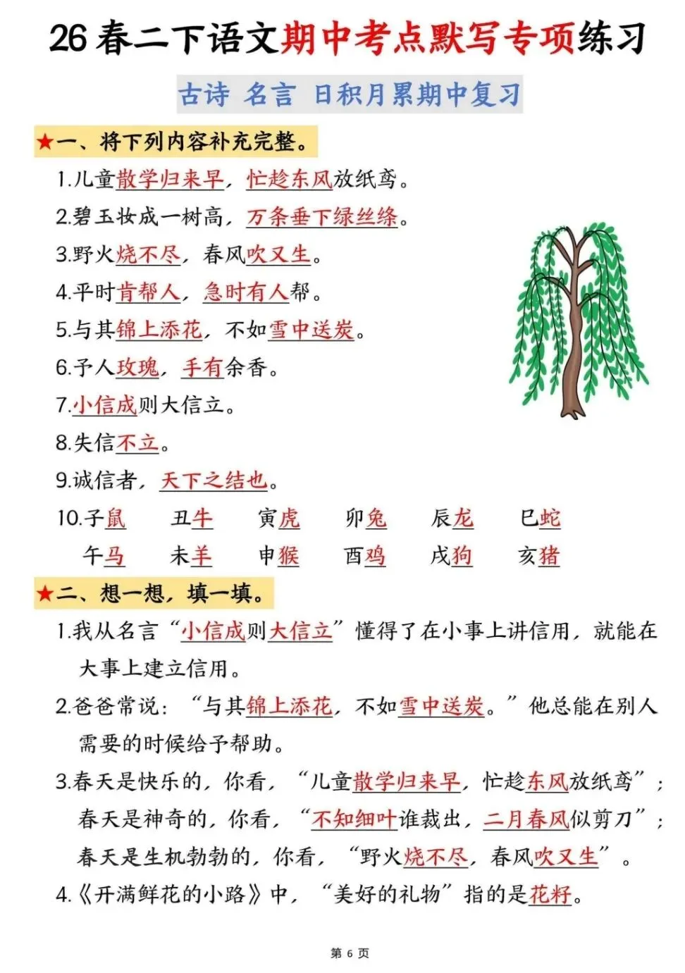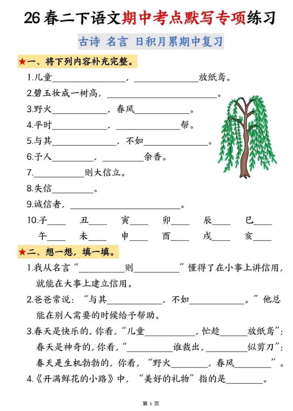 期中复习|二下语文《期中考点默写专项》电子版pdf免费下载