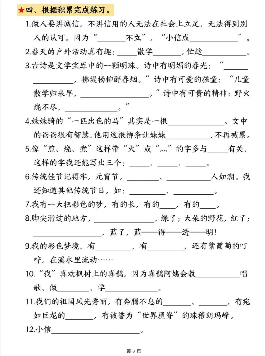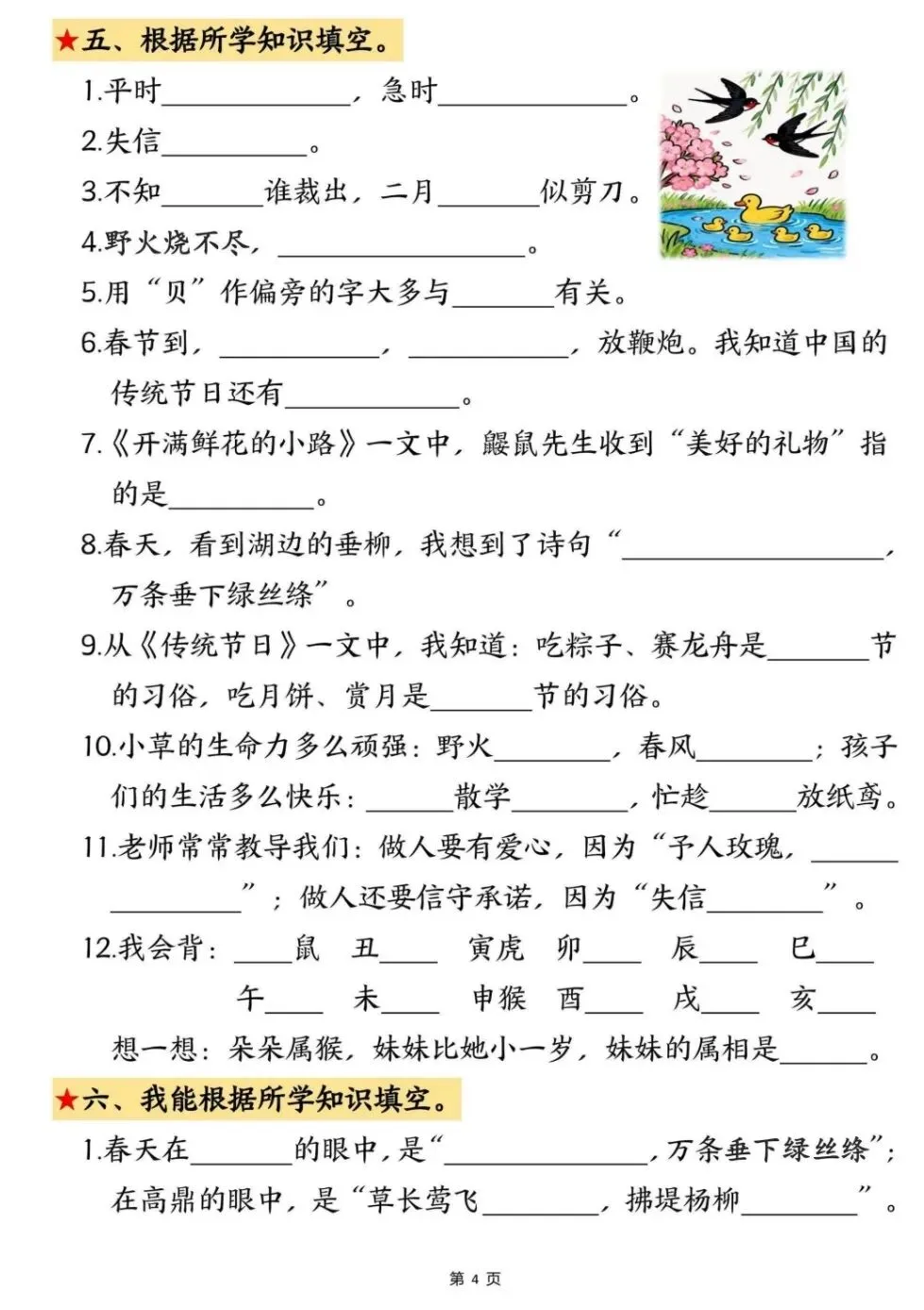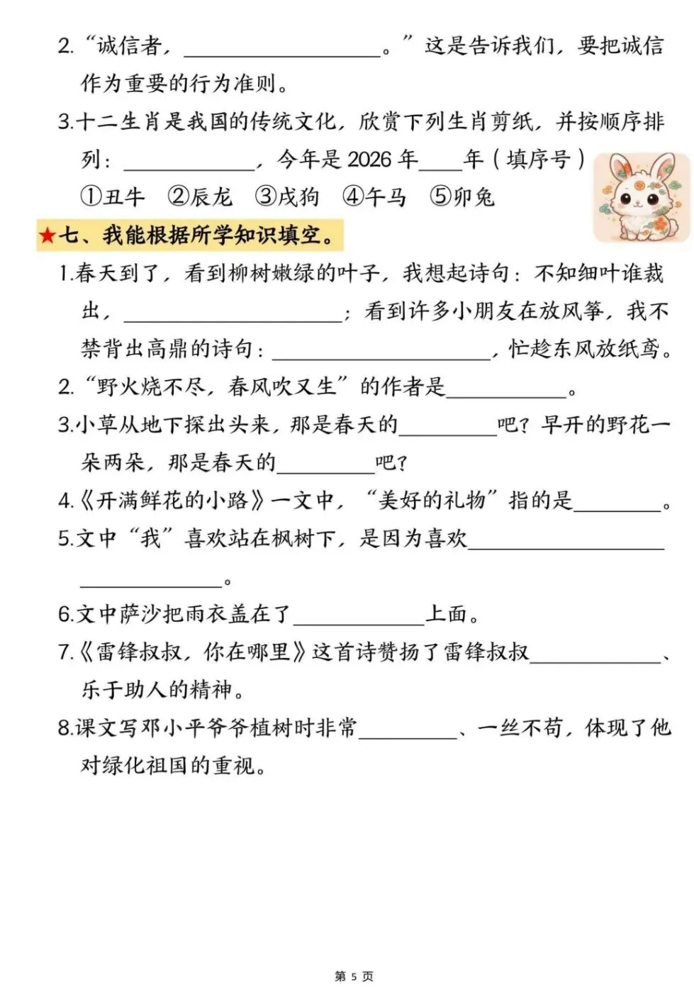 期中复习|二下语文《期中考点默写专项》电子版pdf免费下载