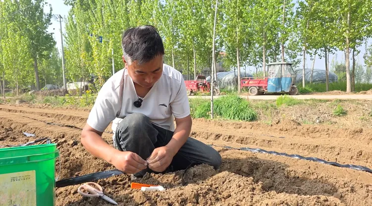 “今年我种了十五六亩,其中五亩是‘西瓜红’,剩下的都是‘龙九’。”白龙龙一边擦着额角的汗,一边笑着介绍,“咱们这红薯得赶清明前后栽,‘龙九’生长周期短,三个月就能收获;‘西瓜红’要五个月才能上市,不过品相好、价钱俏。现在有滴灌带和水肥一体技术,浇水施肥都方便多啦,省不少劲!”