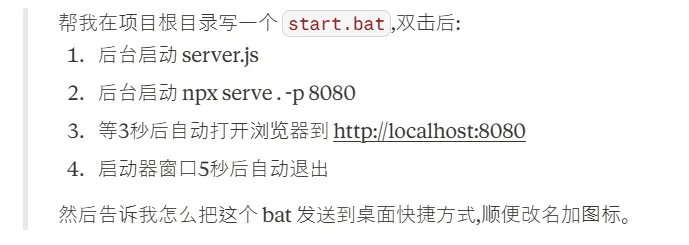 好了,在cursor里面开两个终端,一个跑“node server.js”;另外一个跑“npx serve . -p 8080”;浏览器打开“http://localhost:8080”。