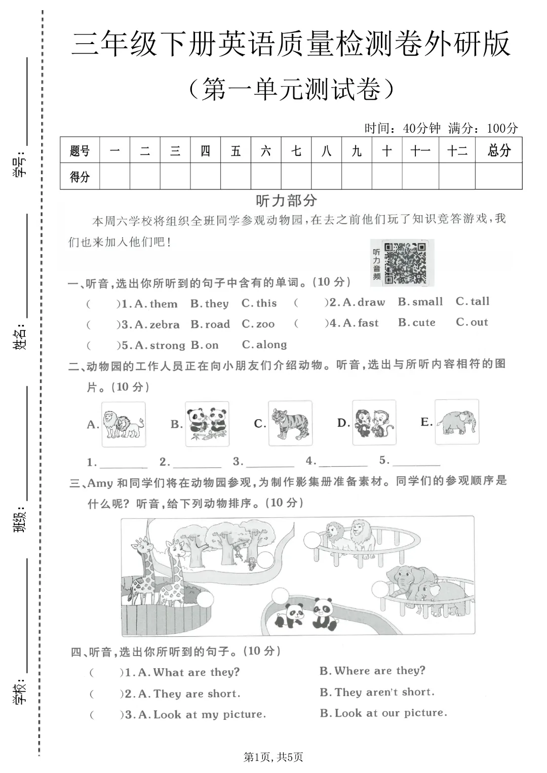 今天给家长们分享的是:26春三年级下册英语外研版三起点《第1-4单元测试卷+期中测试卷》带答案| 完整高清电子版可打印