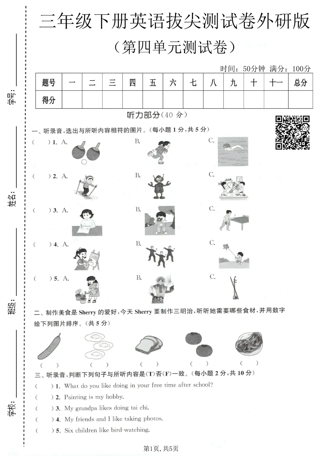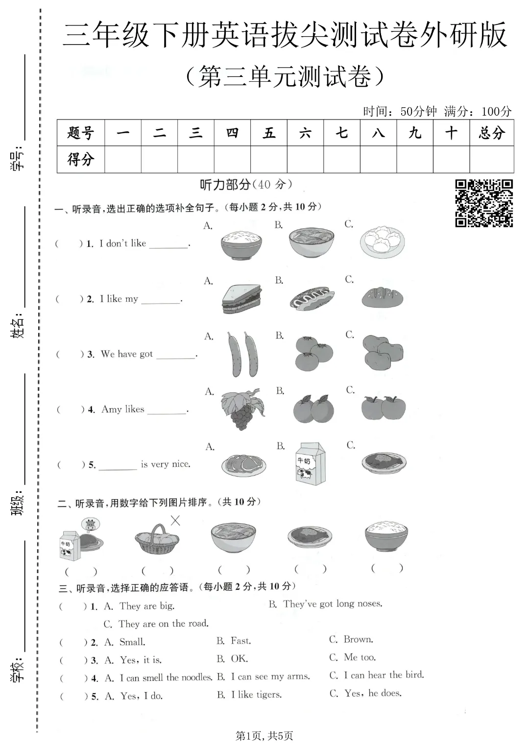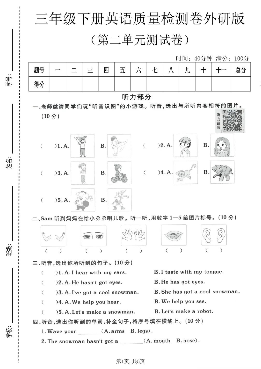 26春三年级下册英语外研版三起点《第1-4单元测试卷+期中测试卷》带答案| 完整高清可打印
