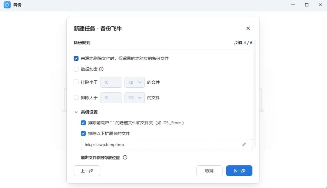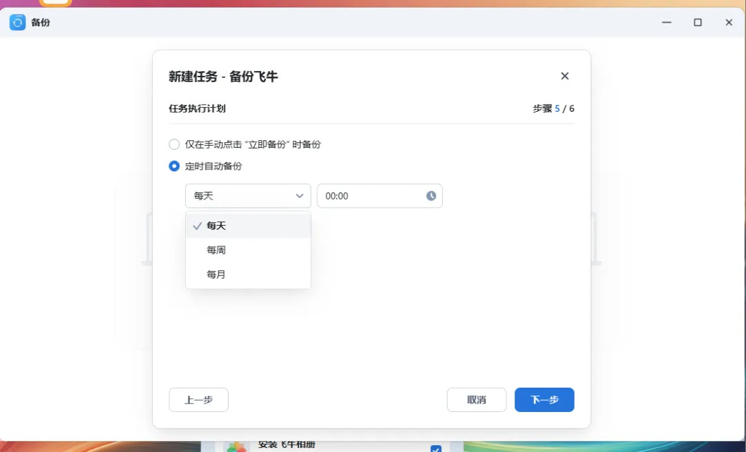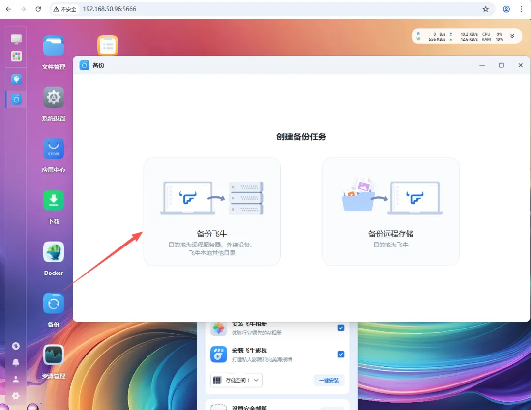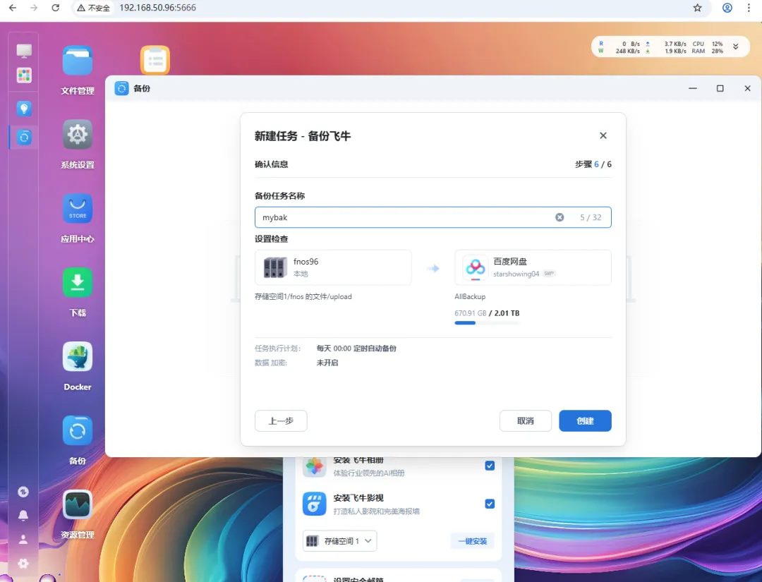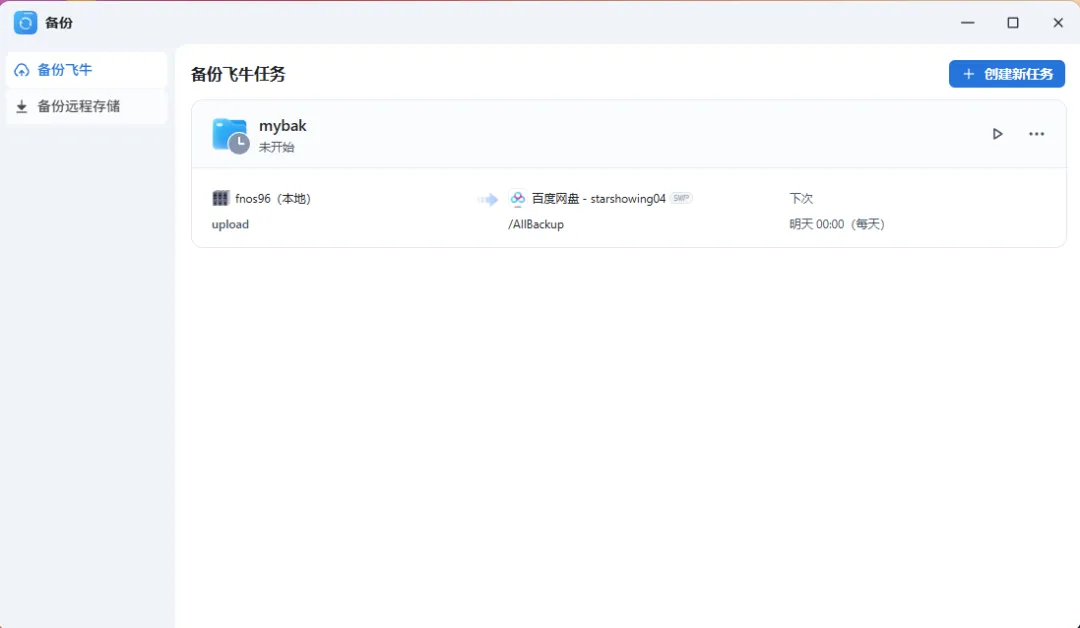 文档安全是最重要的,请一定要设置备份和定期把备份拷贝到云盘。很多用户安装飞牛的设备都是淘汰的零件,而飞牛是一个娱乐系统,而且一直在更新,为了避免飞牛更新影响系统的稳定性,强烈建议一定做好备份。