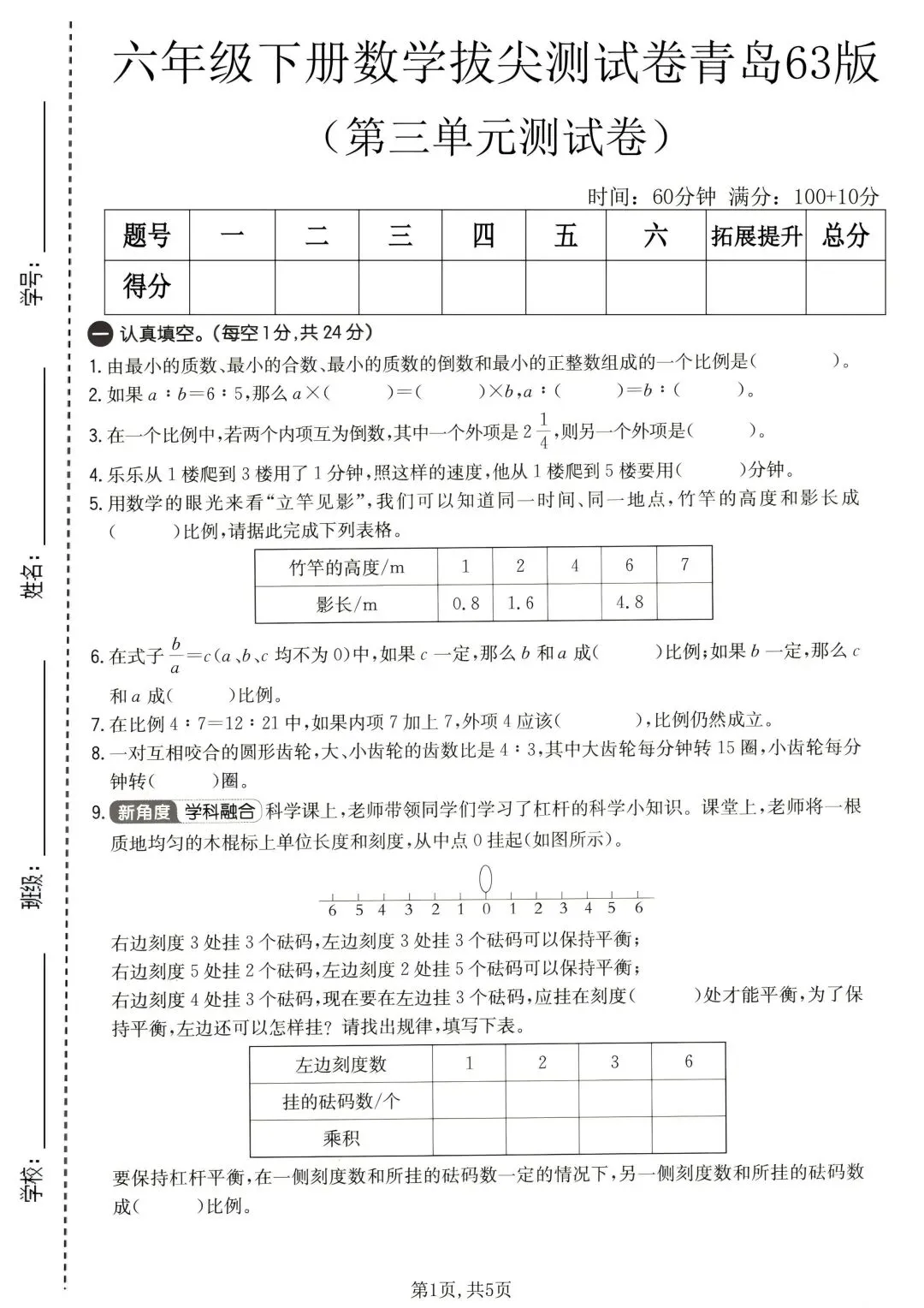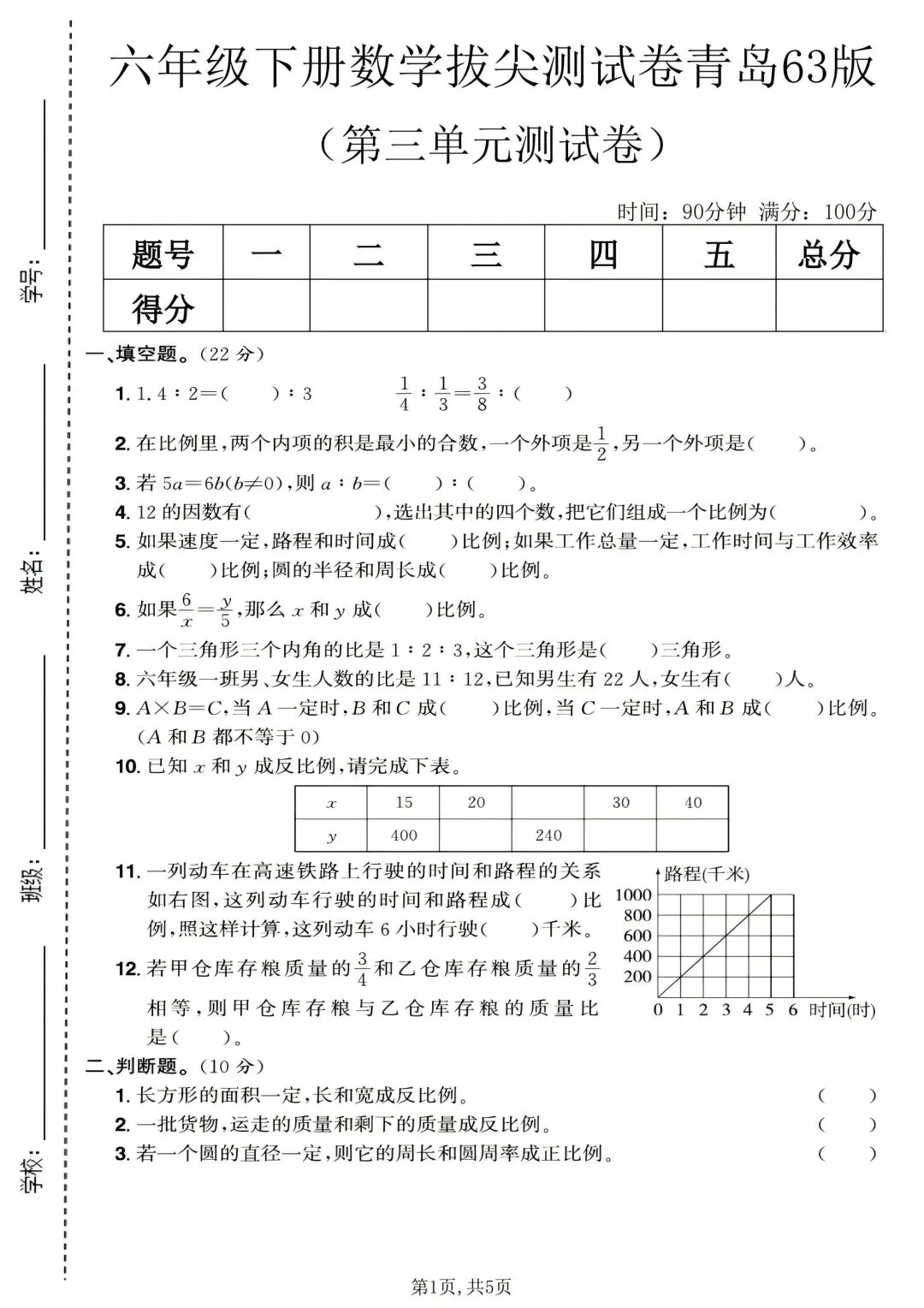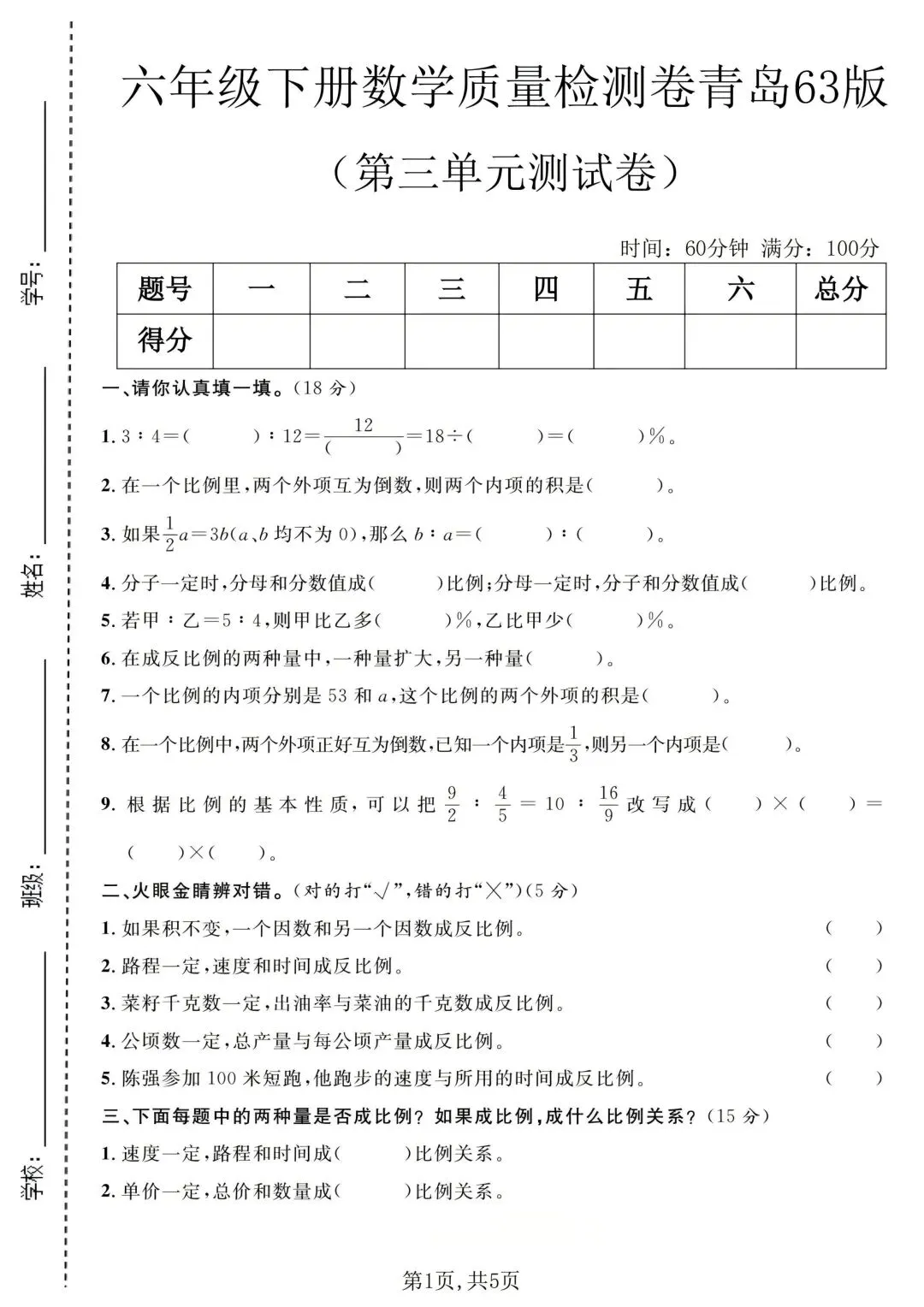 今天分享的是六年级下册青岛63版数学《第三单元检测卷合集》,大家可以按需自取,还可以分享到班级群或者朋友圈,我们一起助力孩子们高效学习。