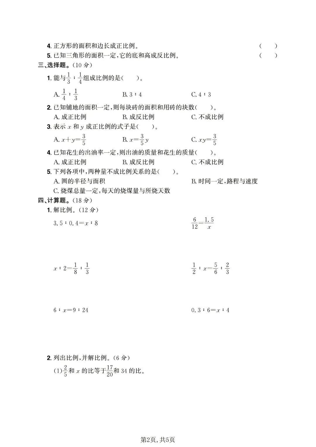 2026年春六年级下册青岛63版数学《第三单元检测卷合集》共3套 完整可打印 (含答案)