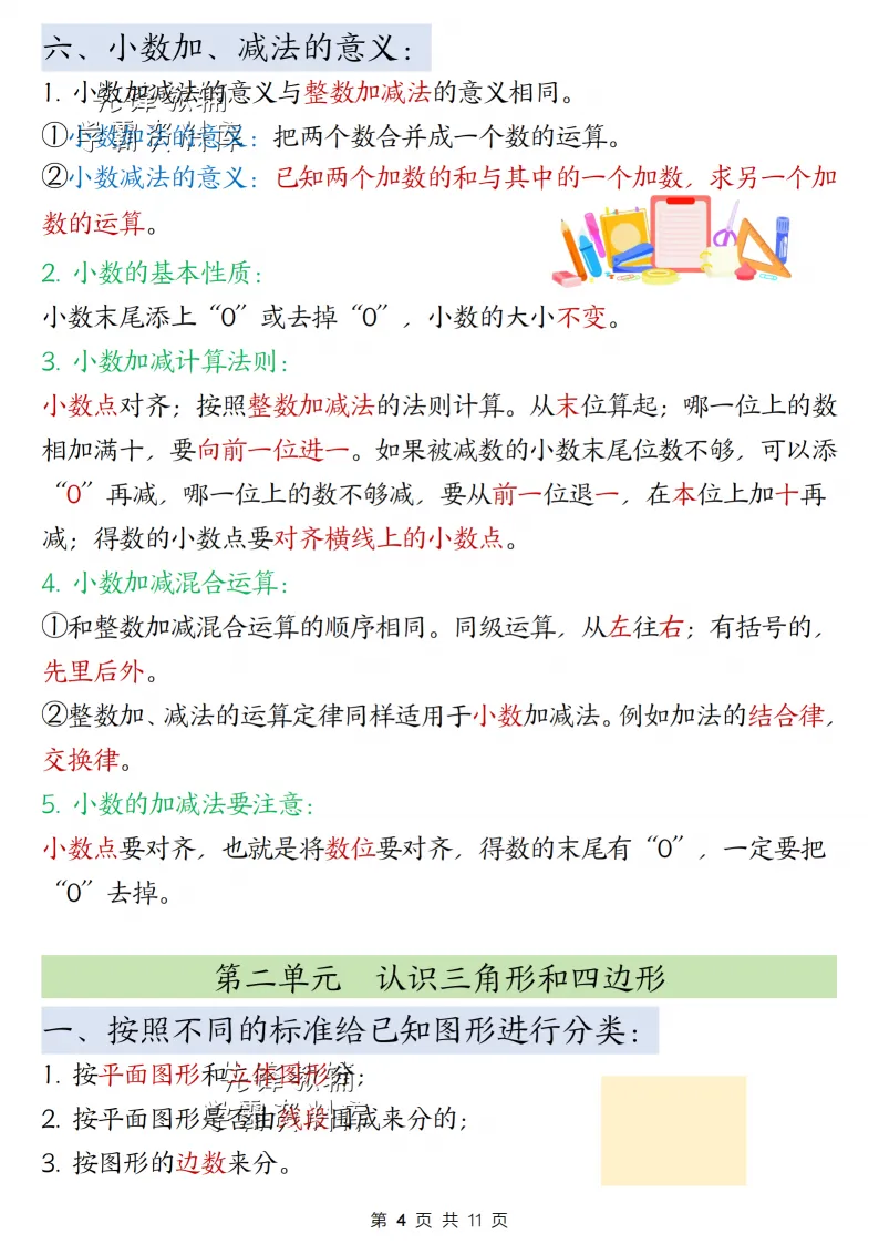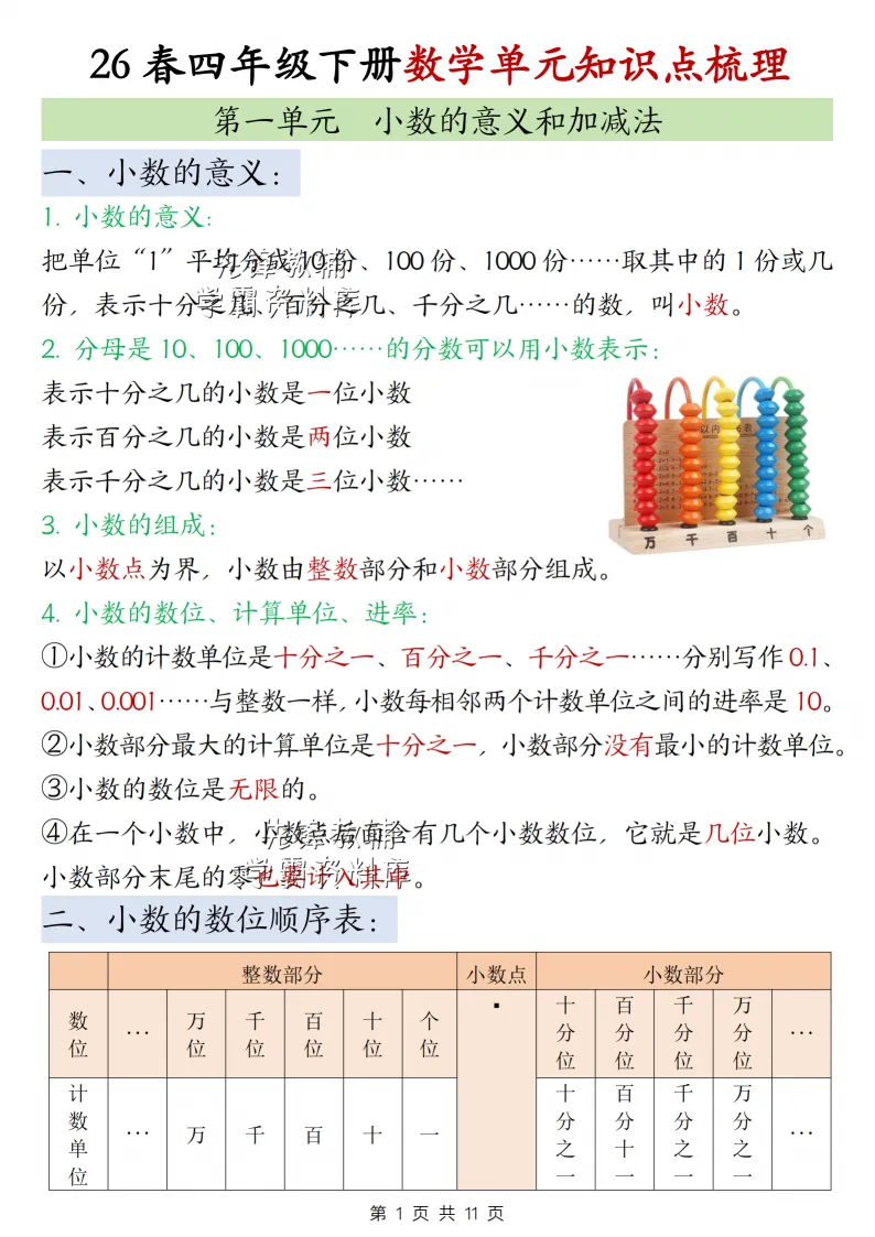 四年级下册是小学高段数学的基础奠基期,知识点难度提升、综合性增强,且前后关联性强,零散记忆易混淆、易遗漏,期中、期末复习更需要系统梳理、精准突破。这款全册单元知识点梳理汇总,严格遵循北师大版教材编排逻辑,按单元拆分、按考点归类,把复杂知识点简化、把零散知识点整合,让孩子看得懂、记得牢、用得上。