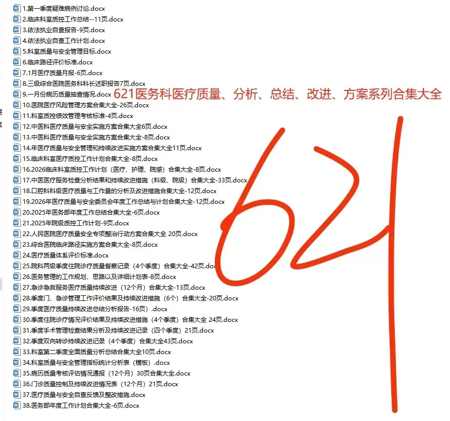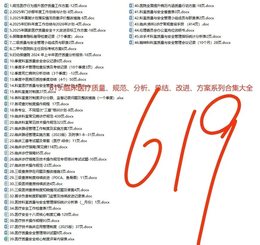 临床科室医疗质量、规范、分析、总结、改进、方案系列合集大全