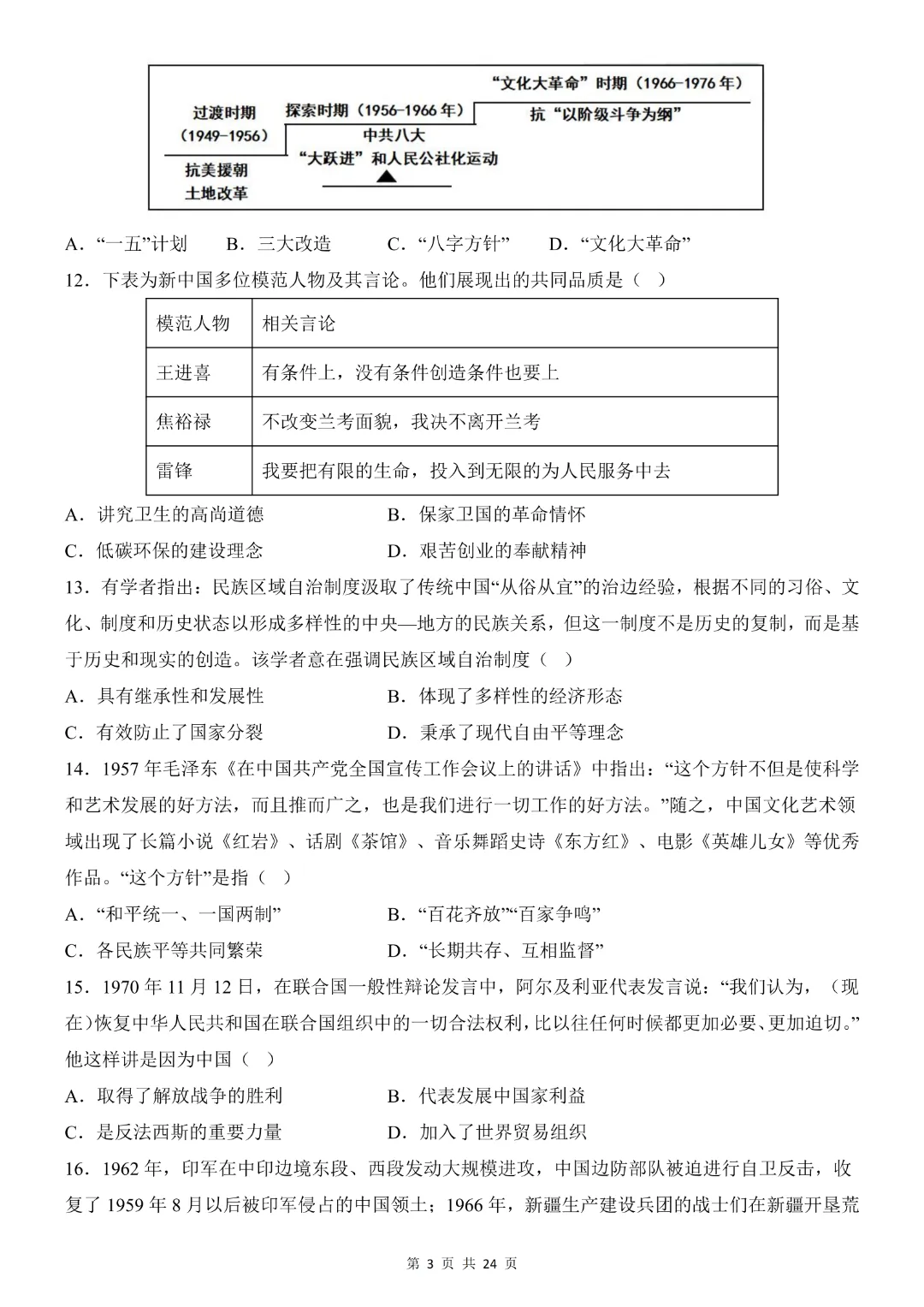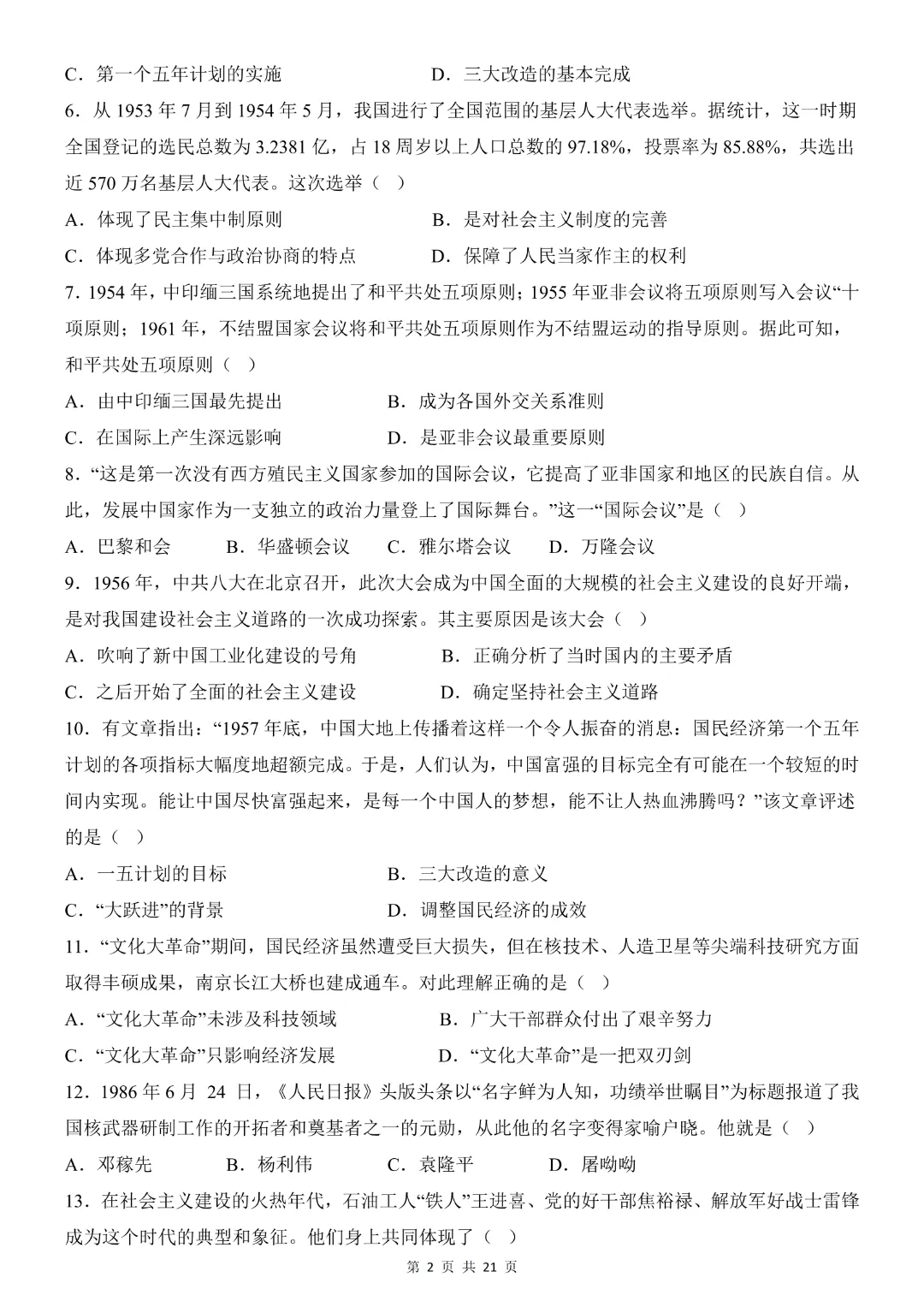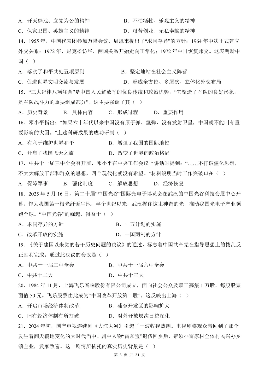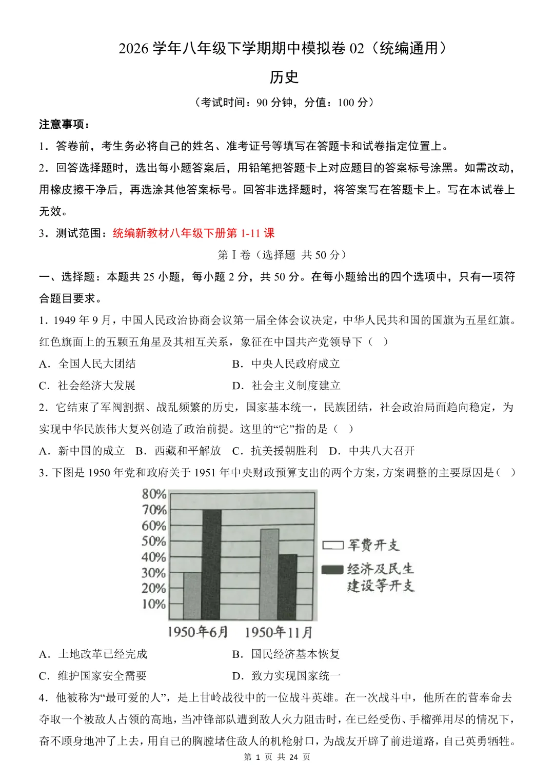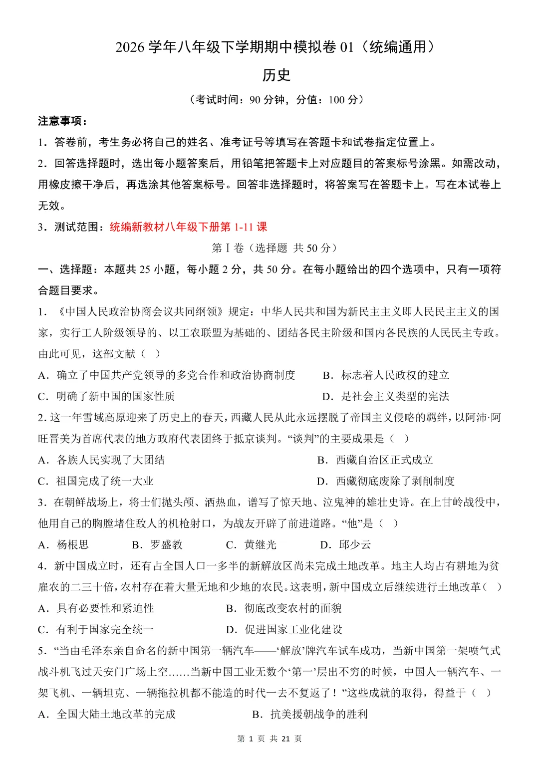 26春八年级下册历史期中模拟卷|完整电子版可打印!