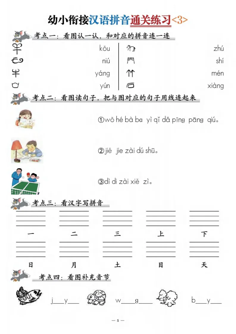 幼小衔接|语文汉语拼音通关练习 3 套(可打印)