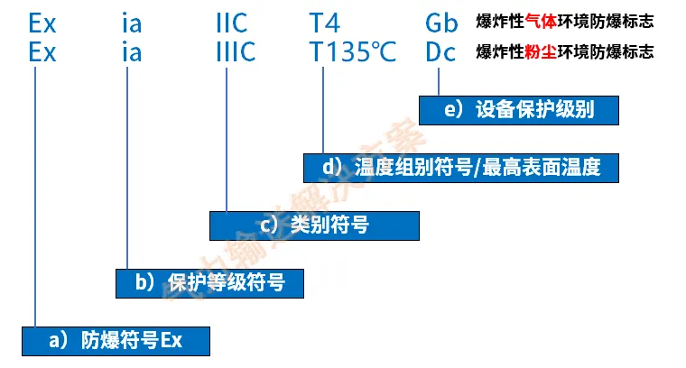 举例二:防爆标识“Ex ia IIIC T135°C Dc”