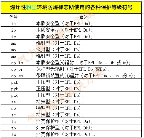 2.“ia”:代表防爆中保护等级, 本质安全型(对于EPL Da)。