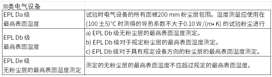 • 对无粉尘层试验的EPL Db 和EPL De, 最高表面温度应用摄氏温度值及单位℃表示,前面加字母”T”( 例如T90°C) 。