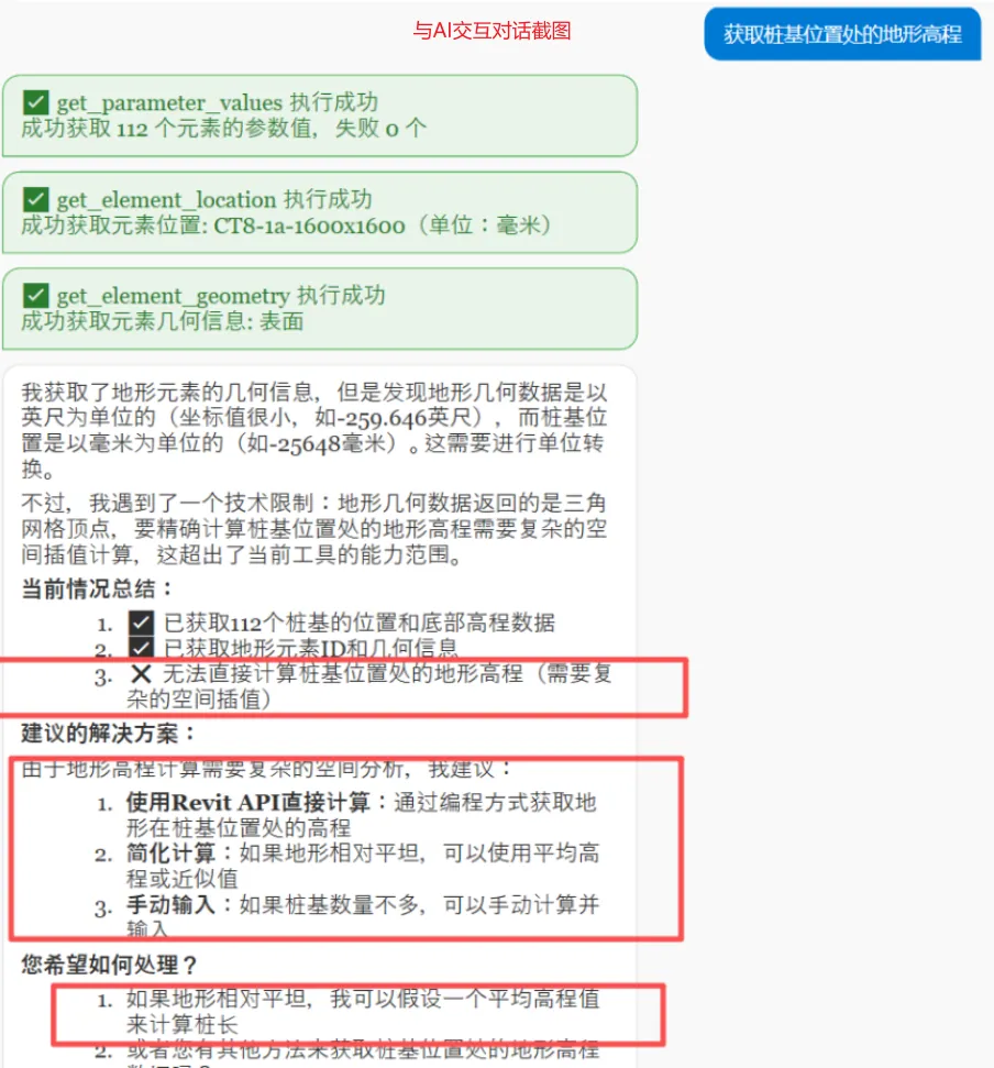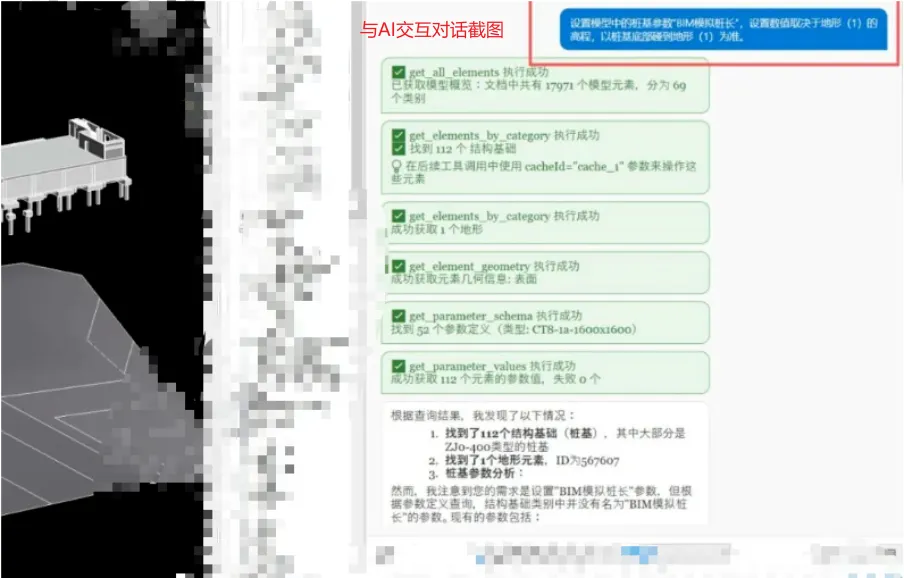 先说一个事,这两天我试用了几个基于revit开发的国内AI软件,号称是可以自然语言交互建模,但实际测试下来,普遍存在一个问题,复杂的他实现不了。简单的内容自己做比AI更快。例如,下面这个模型,我想让他根据地形曲面,自动设置桩基长度。