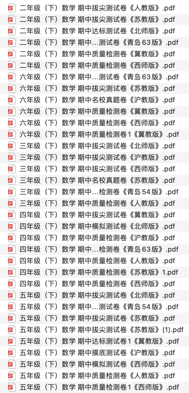 1-6年级数学下册各个版本期中测试卷,电子版可以打印