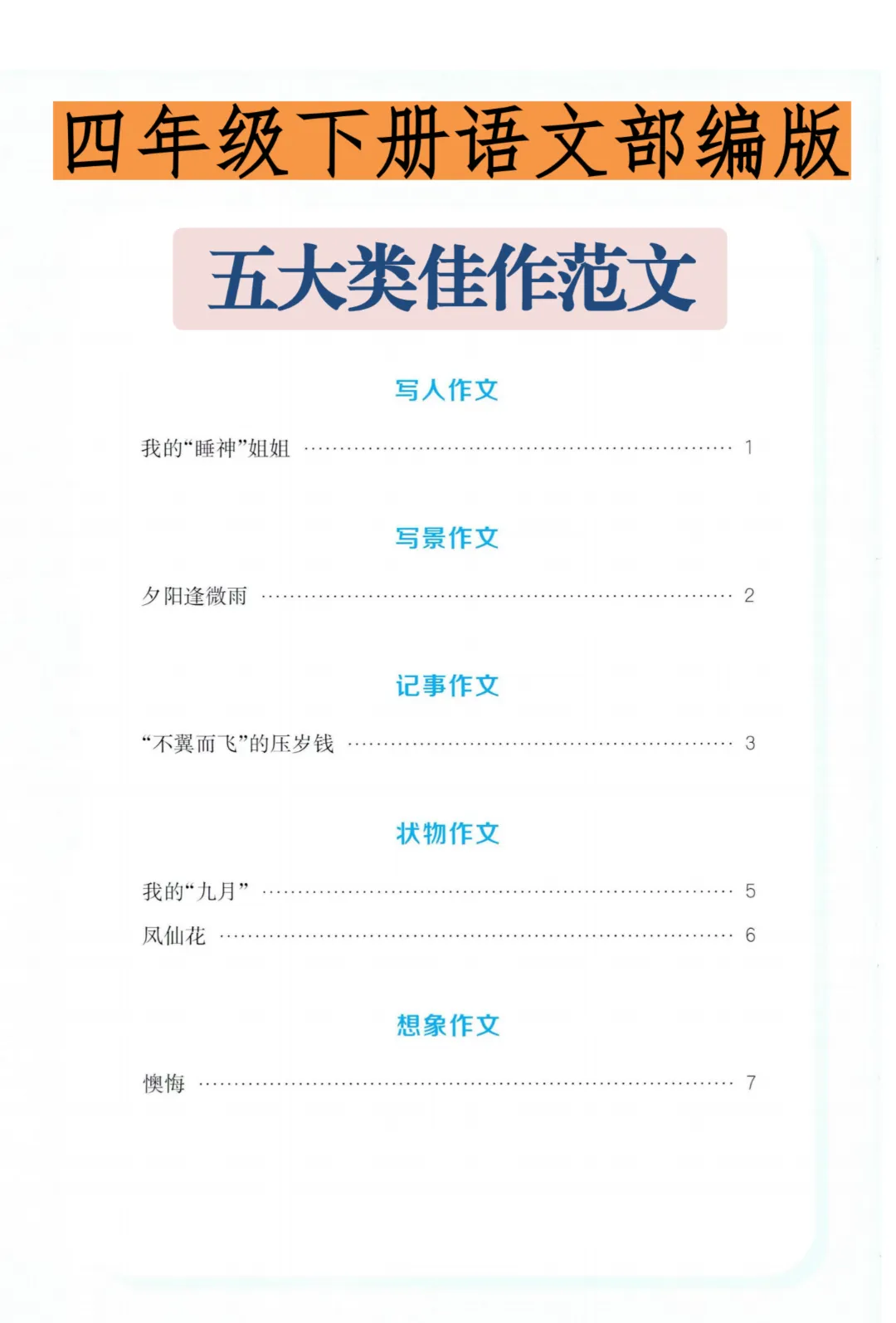 2026年《四年级下册语文部编版五大类佳作范文》电子版可打印