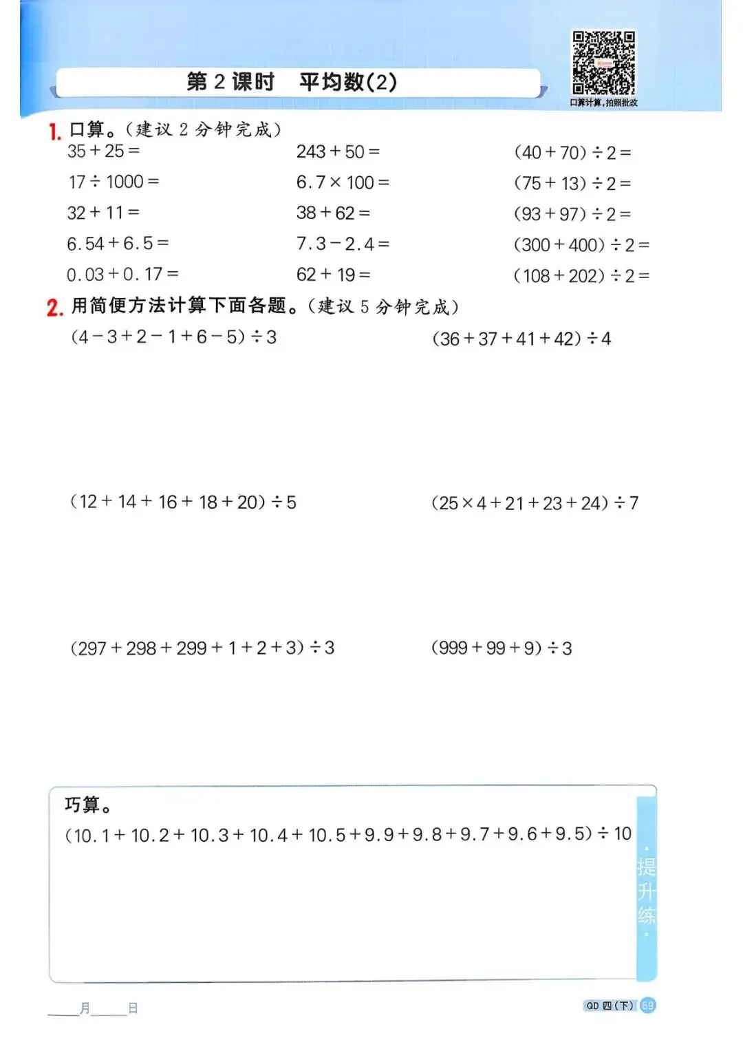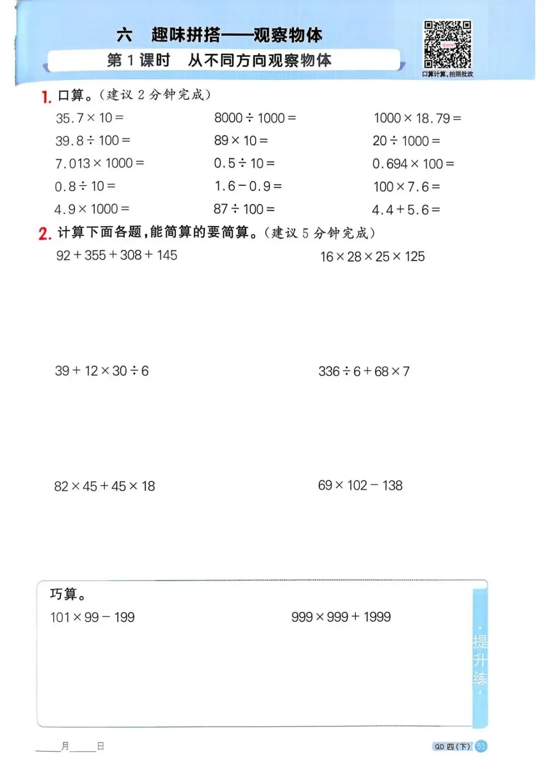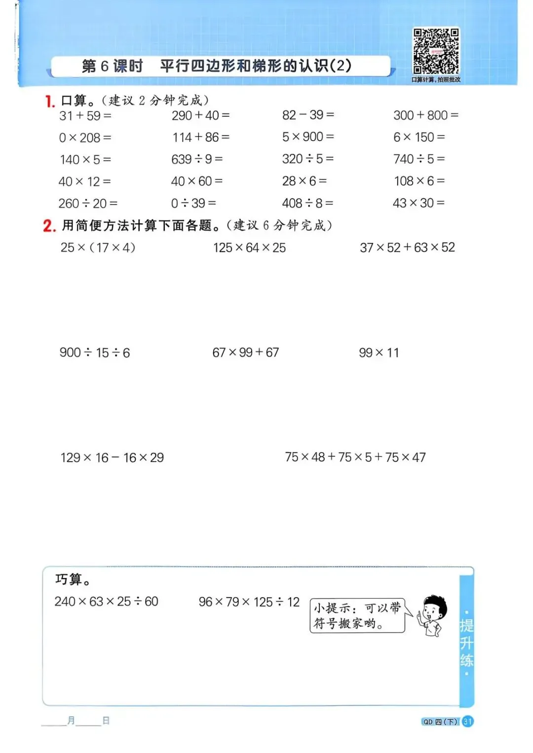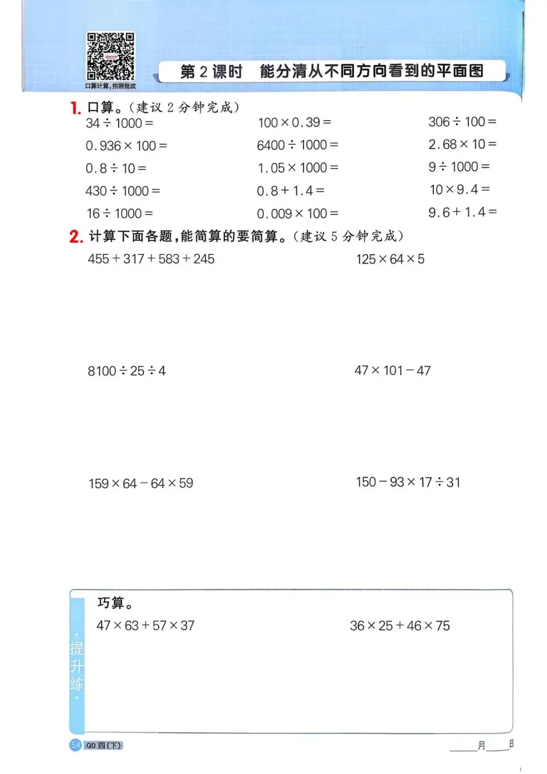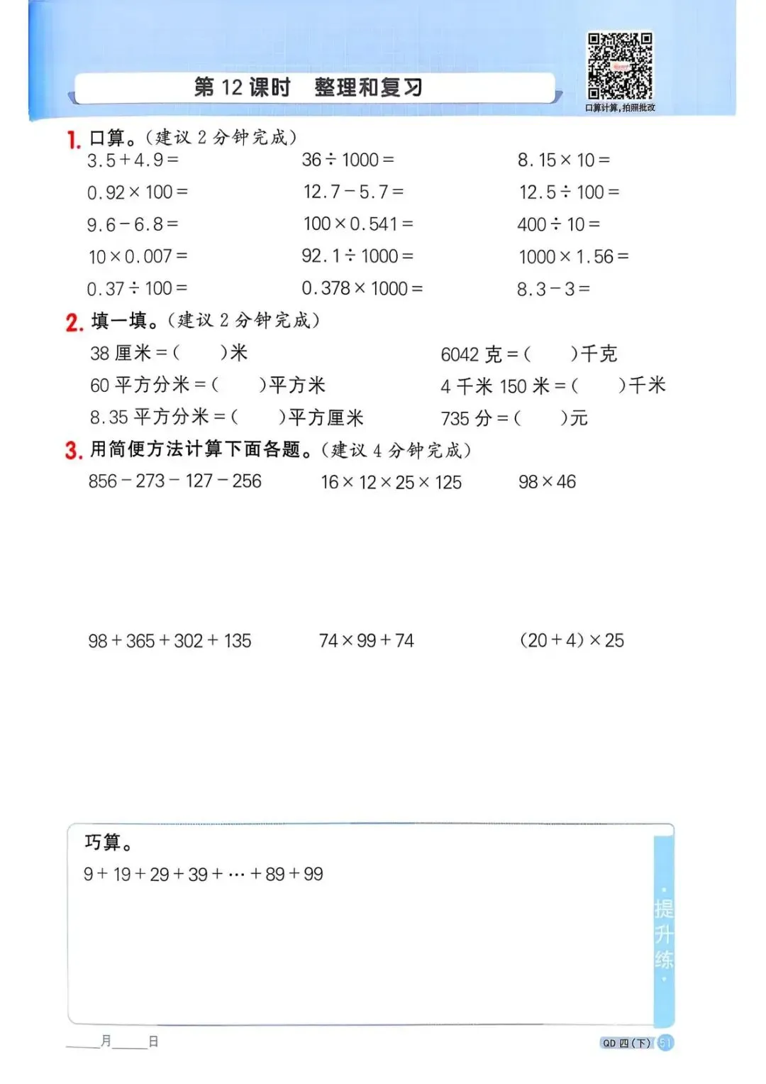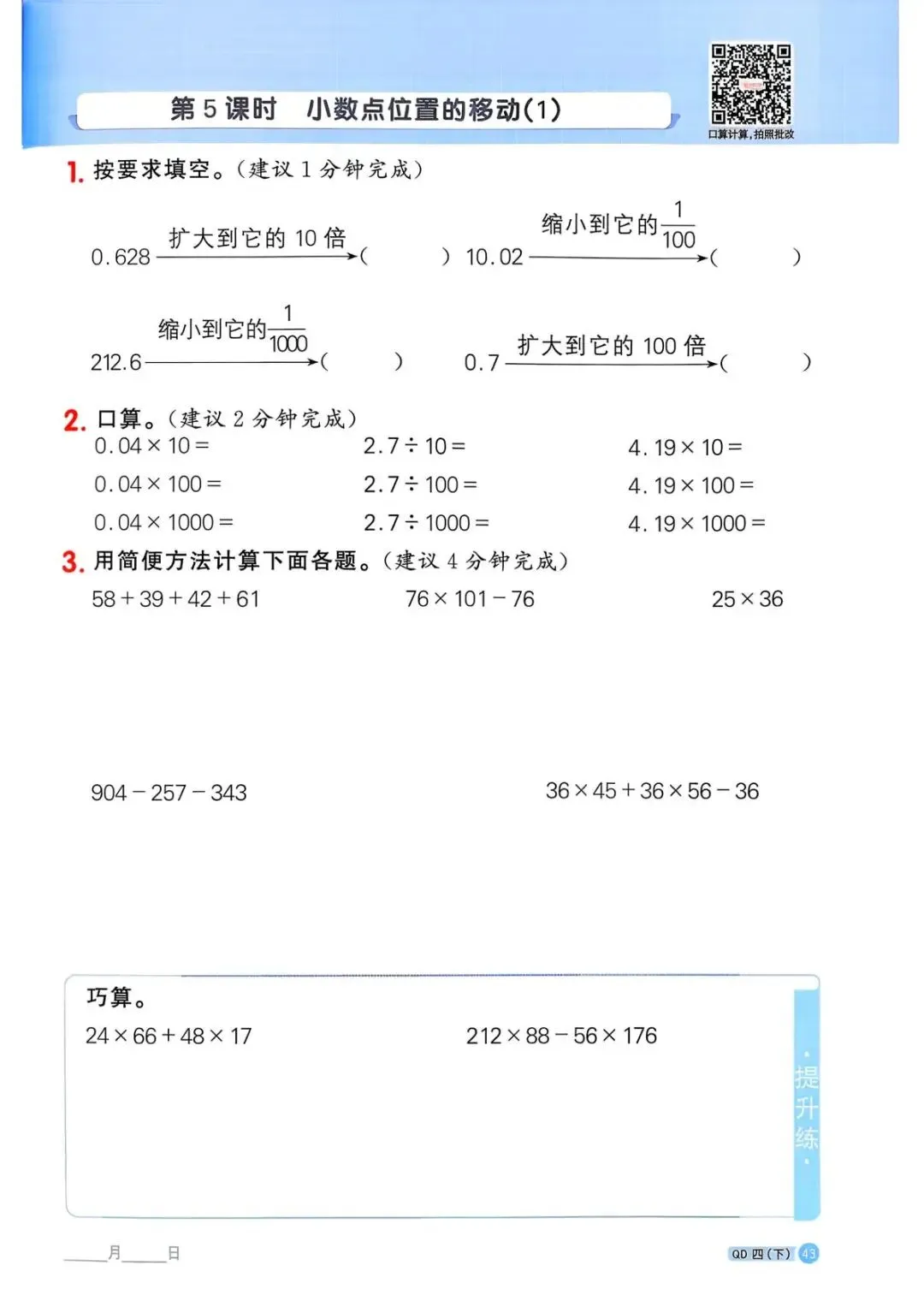 26春青岛版63数学四年级下册《口算+简便计算天天练》附答案| 高清可打印.口算竖式提升练习