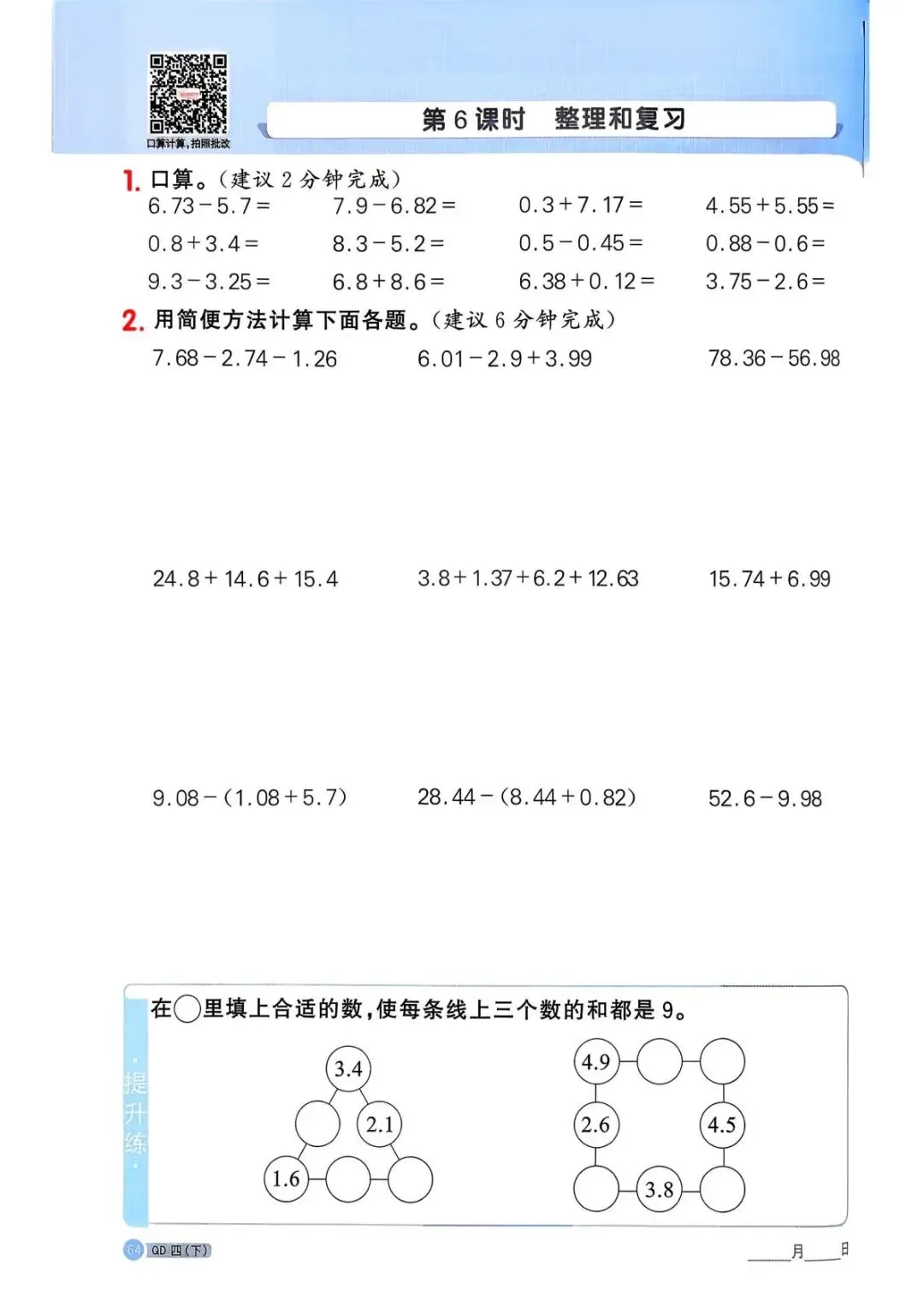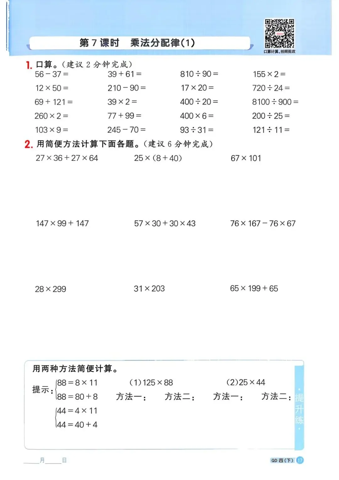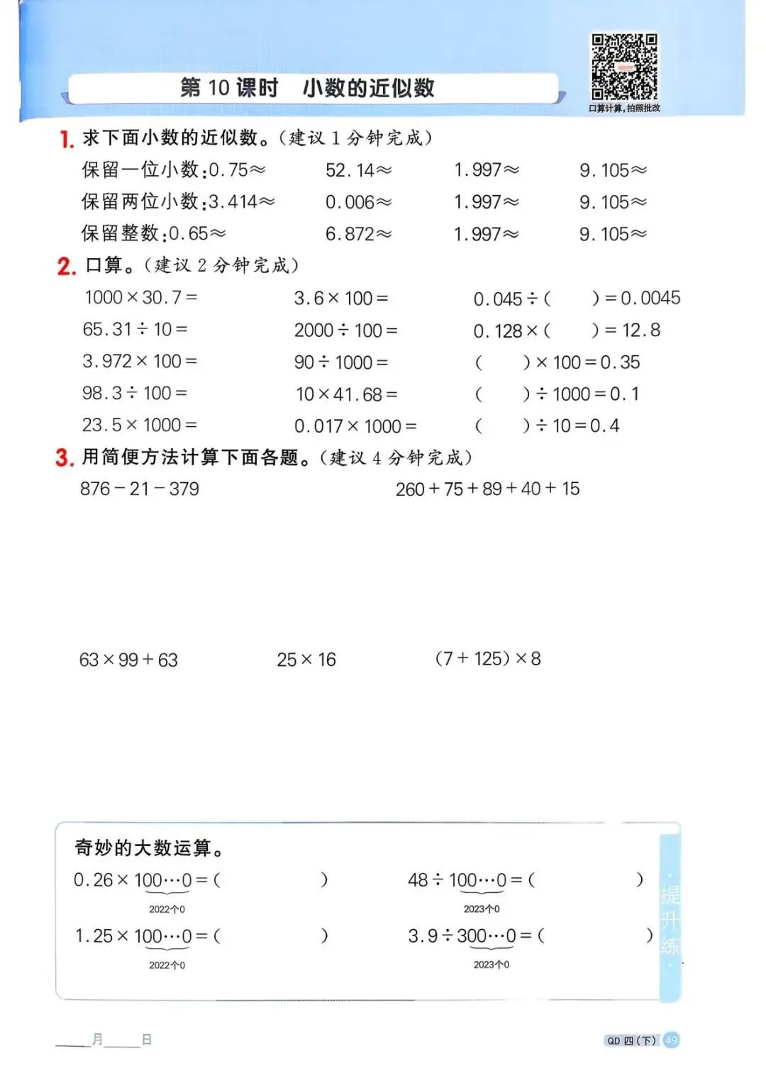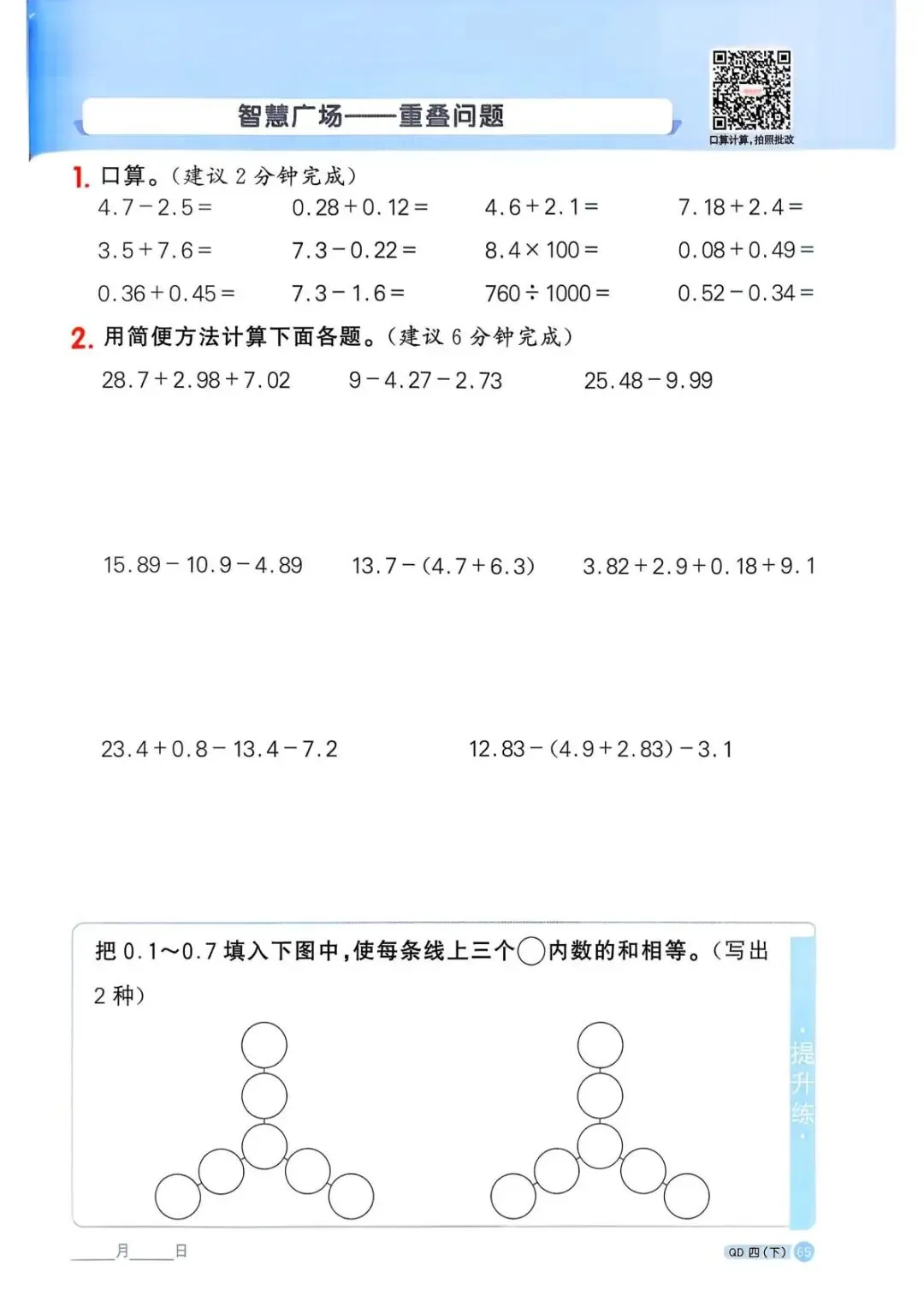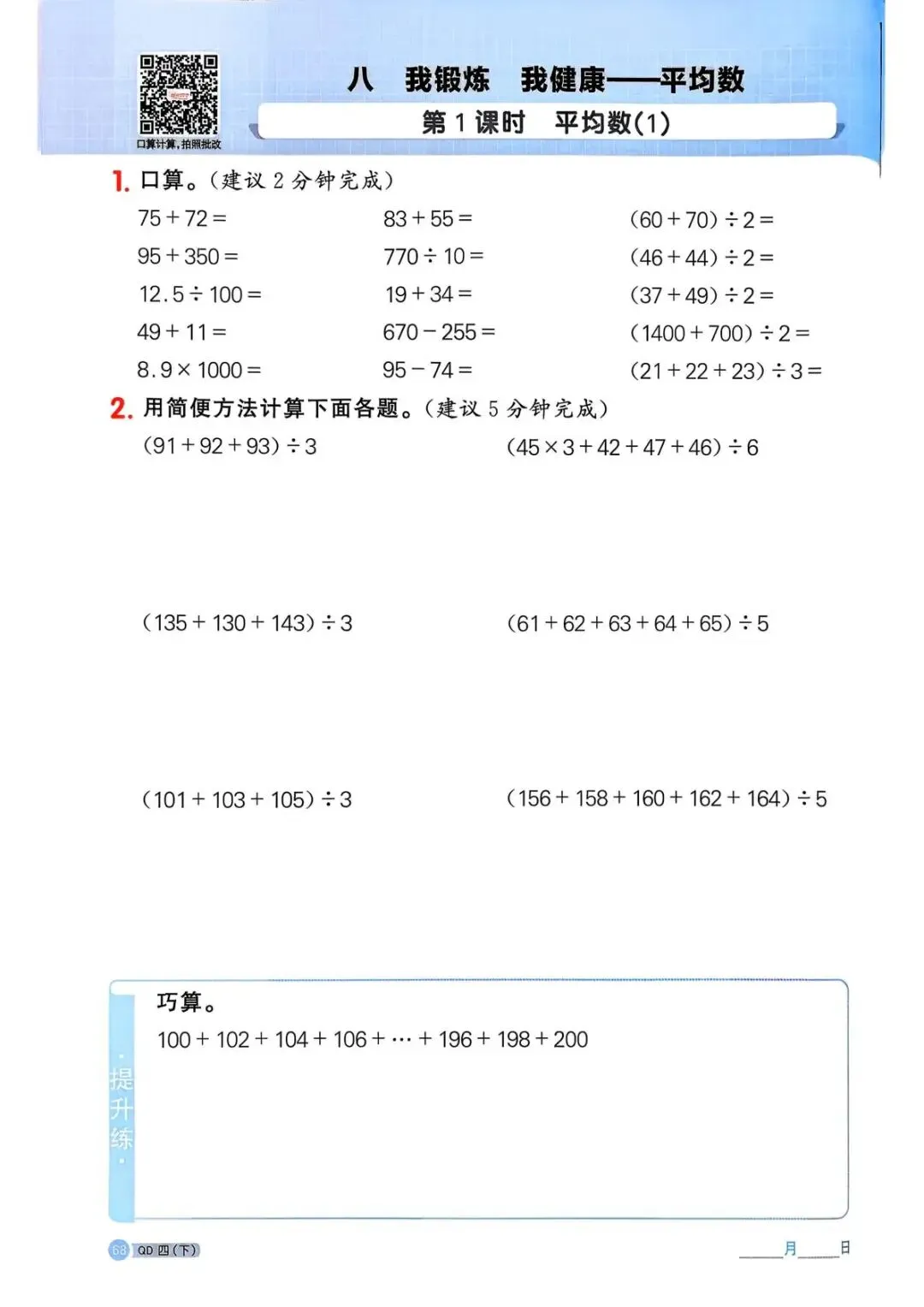 26春青岛版63数学四年级下册《口算+简便计算天天练》附答案| 高清可打印.口算竖式提升练习