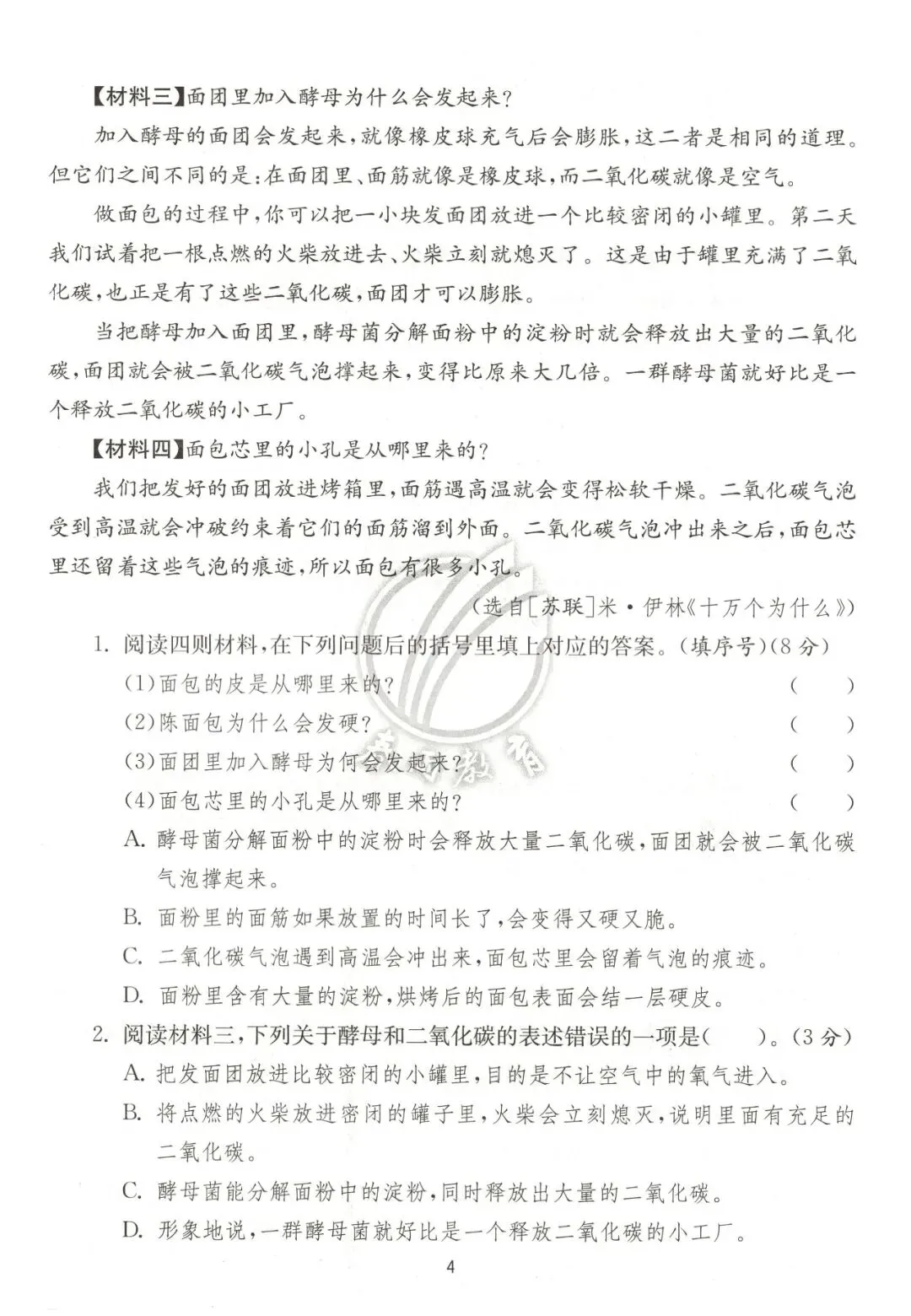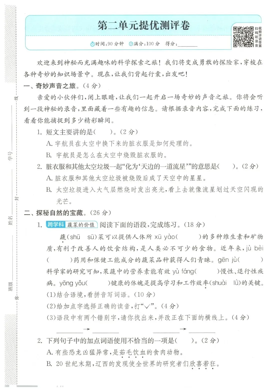 部编版四年级语文下册,第二单元检测卷