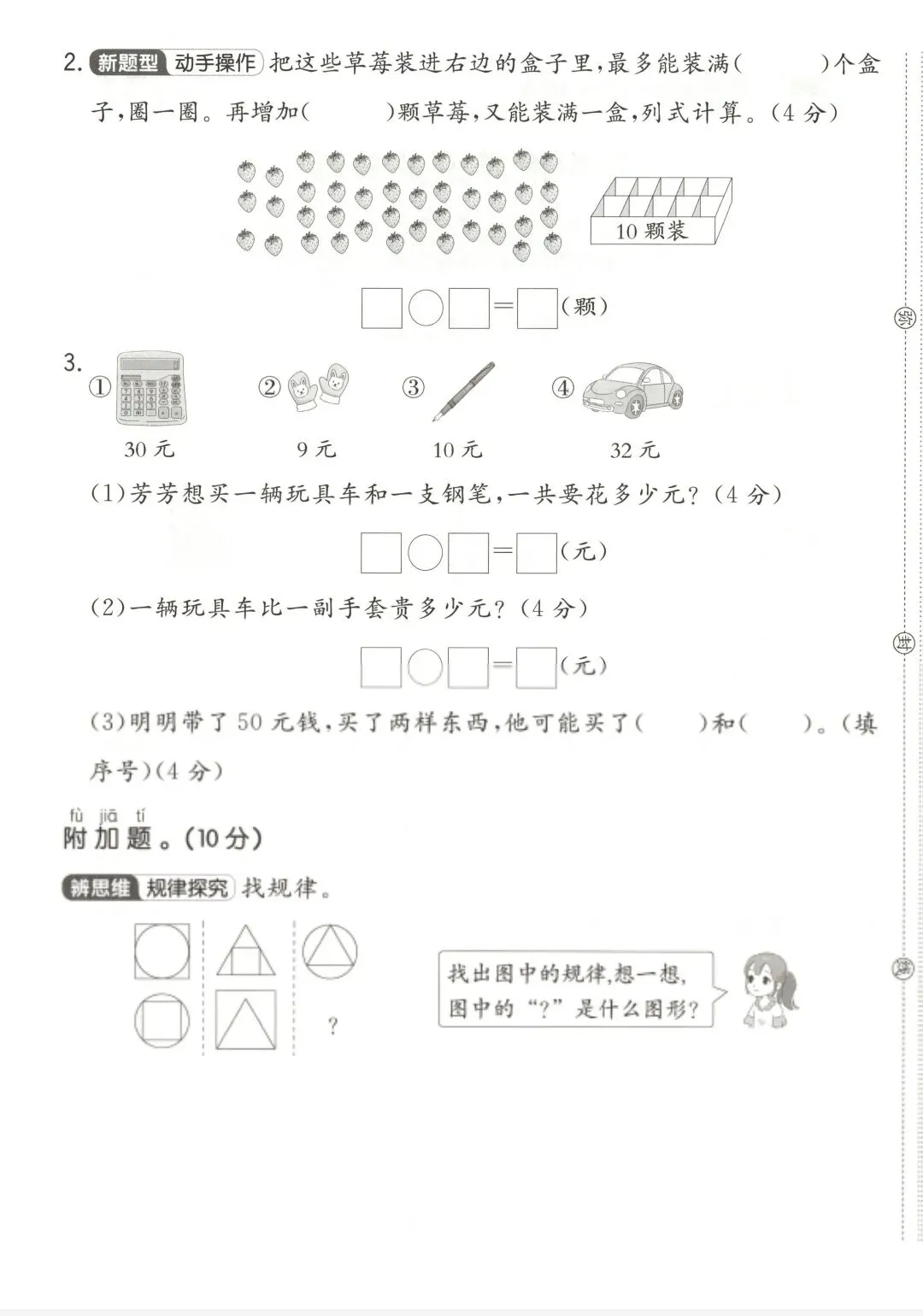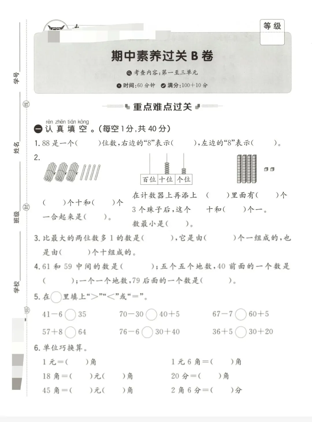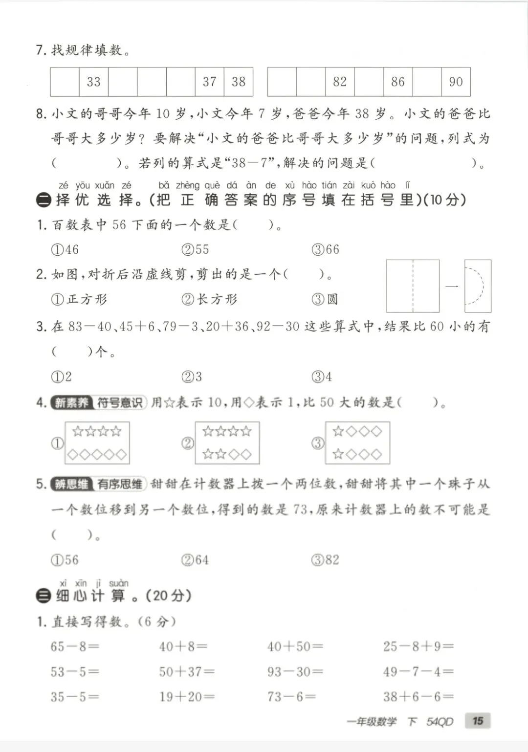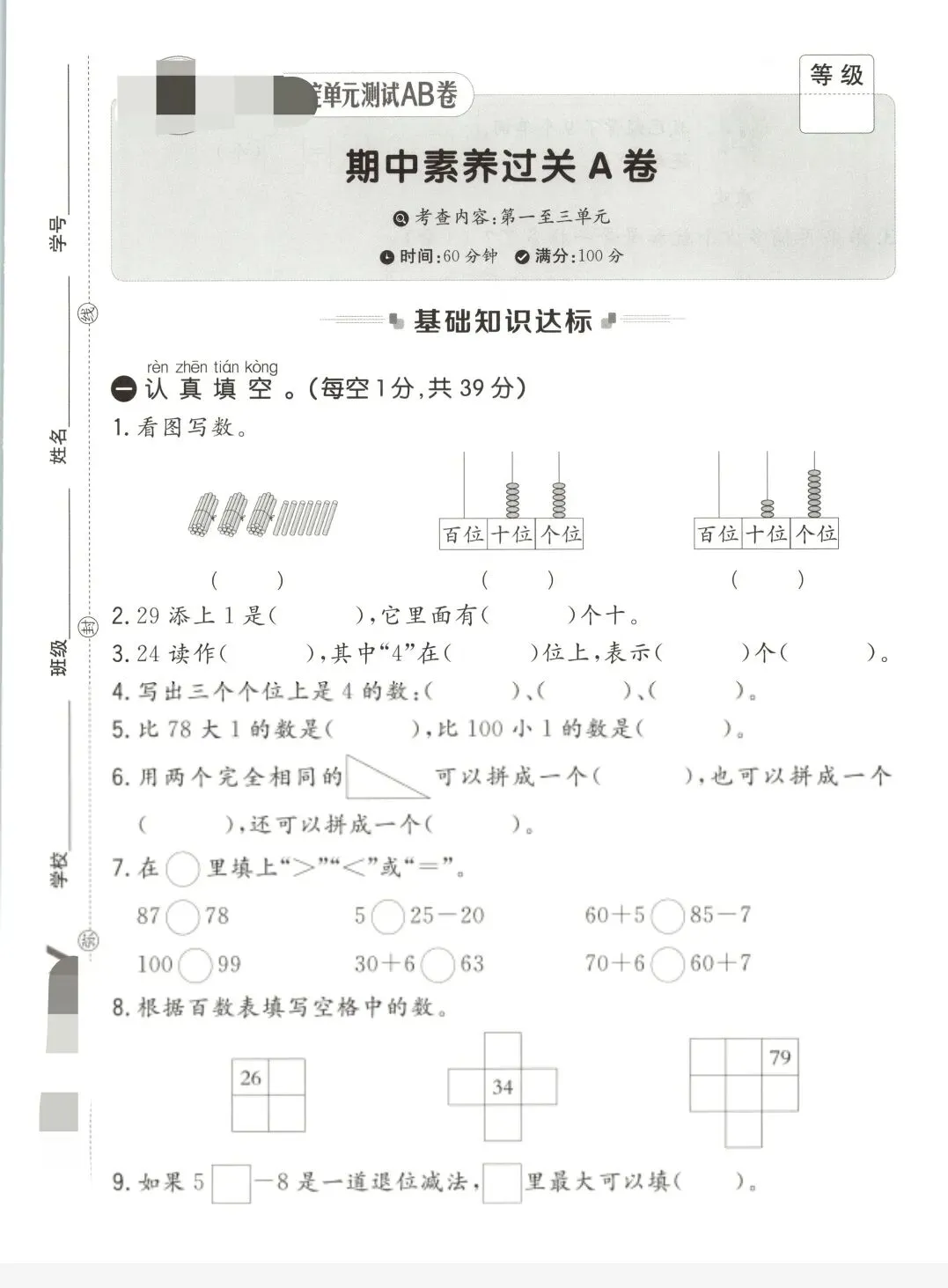青岛五四版一年级下册数学《期中测试卷》2套 有答案 电子版🉑下载,家长可以下载下来给学生巩固练习