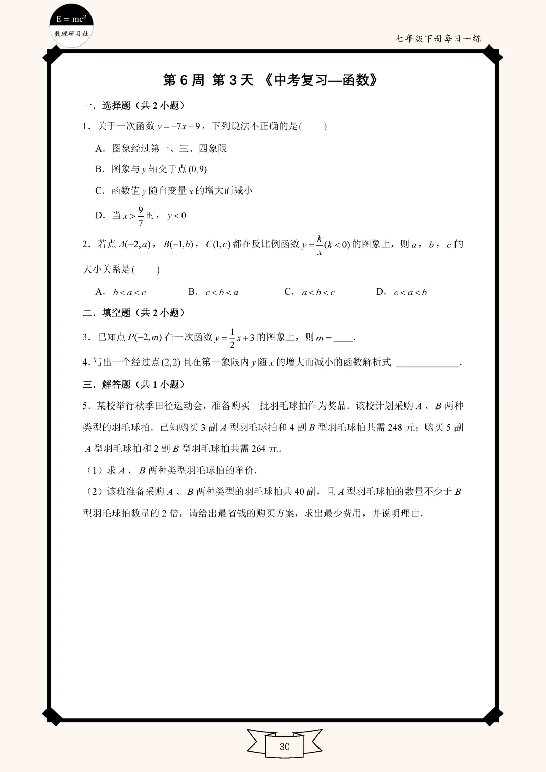 【九年级下】数学每日一练(6-3)免费领电子版 点击:加入数理研习社-资料库 题目部分 视频讲解 【往期资料汇总】七年级八年级九年级河南省中考真题 2026,一起加油 扫 码 加入学习交流群 点赞关注 小编会更努力的哦