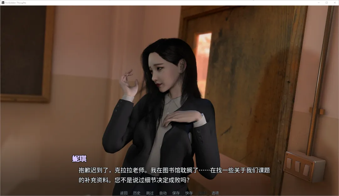 《禁忌之念》(Forbidden Thoughts)是一款由欧美制作组开发的剧情驱动型视觉小说游戏。本作凭借其独特的“支配型”主角设定、无NTR的纯净后宫体验以及充满张力的心理博弈,在同类作品中独树一帜。v0.4.5官方中文版不仅实现了全剧情文本的精准汉化,更带来了全新的剧情章节与角色互动,让玩家能无障碍地沉浸在这段关于“掌控”与“禁忌”的校园冒险中,体验主角在一位疯狂女性的指导下,如何一步步建立并管理属于自己的后宫。