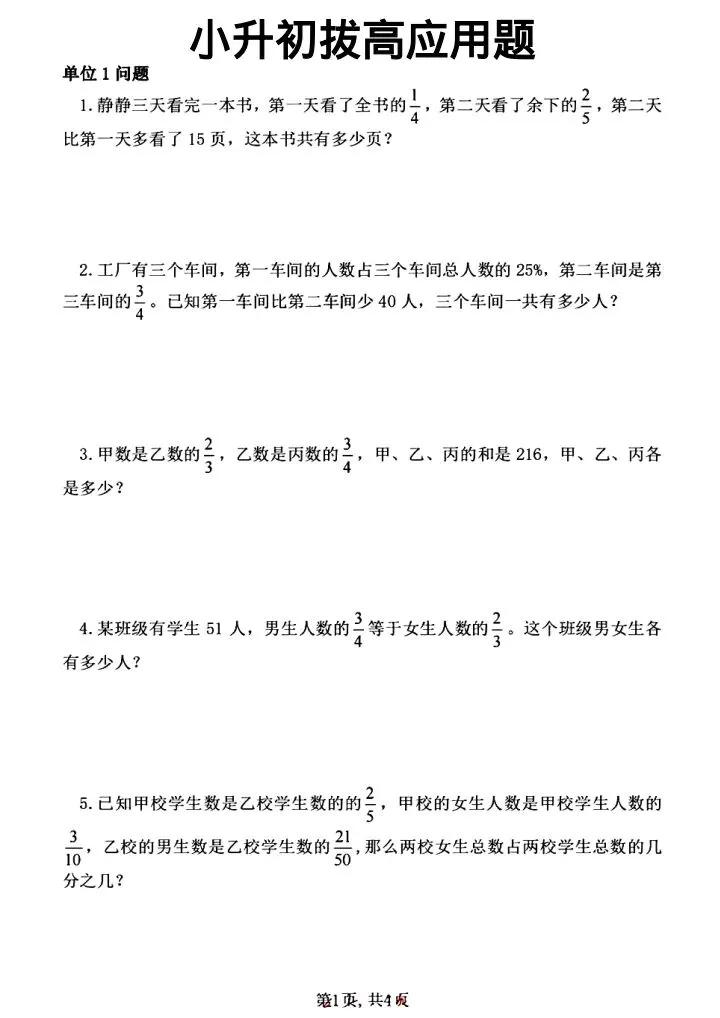 今日份分享小升初应用题专项练习(含答案)完整电子版可打印!这份资料已经整理成可打印版本,方便孩子随时翻看学习,建议家长先收藏,再转发给身边有需要的家庭,一起帮助孩子高效学习~