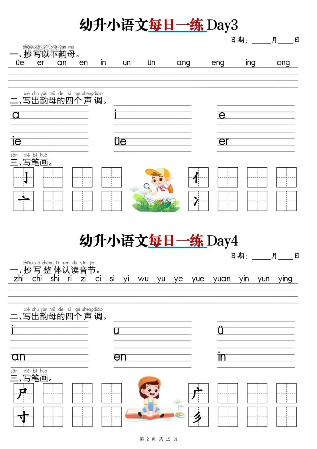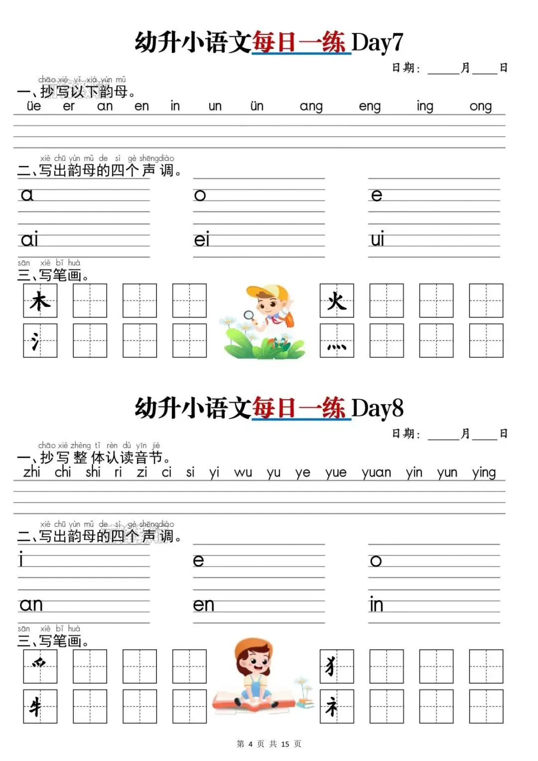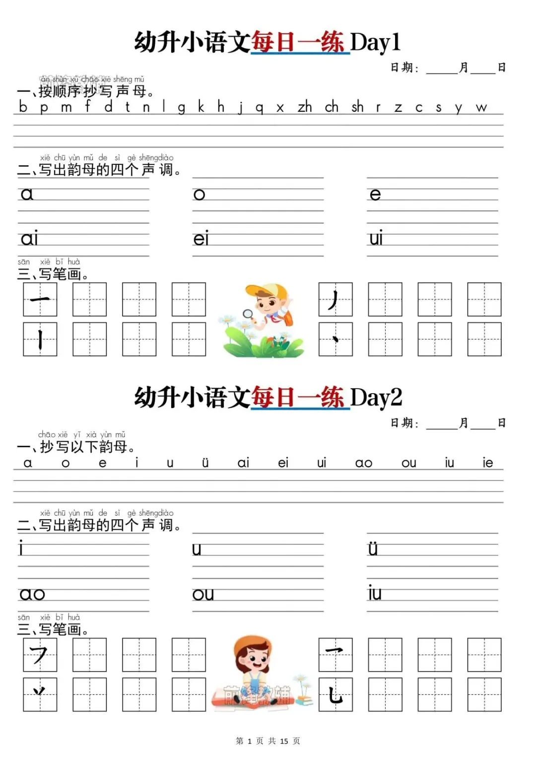 幼升小语文《每日一练》,完整版共15页,电子版可打印