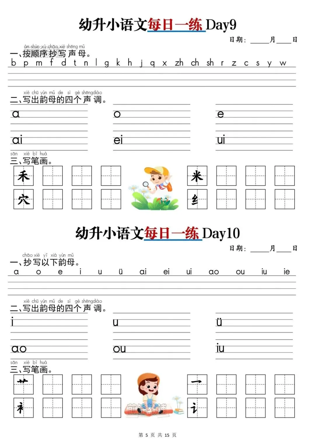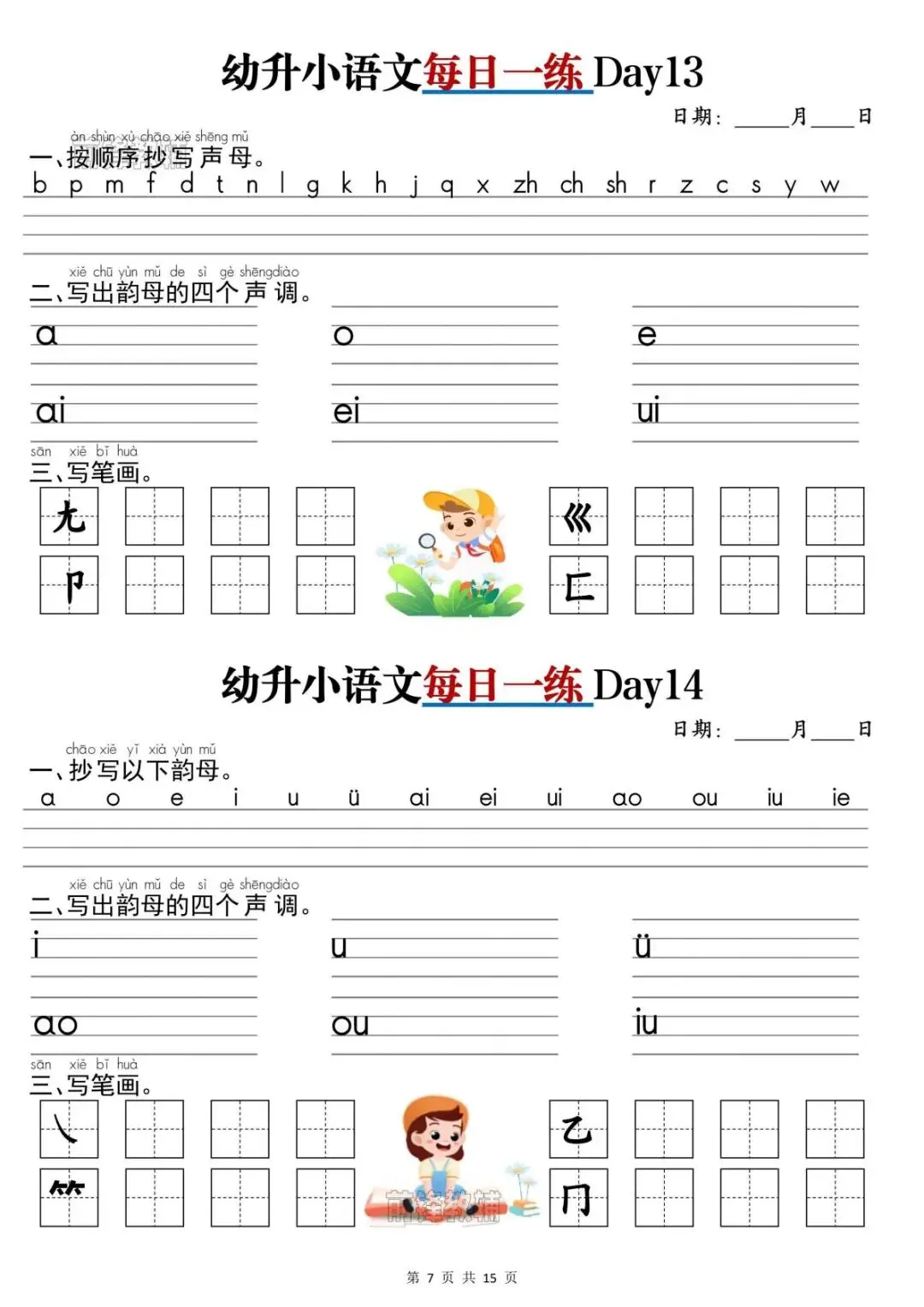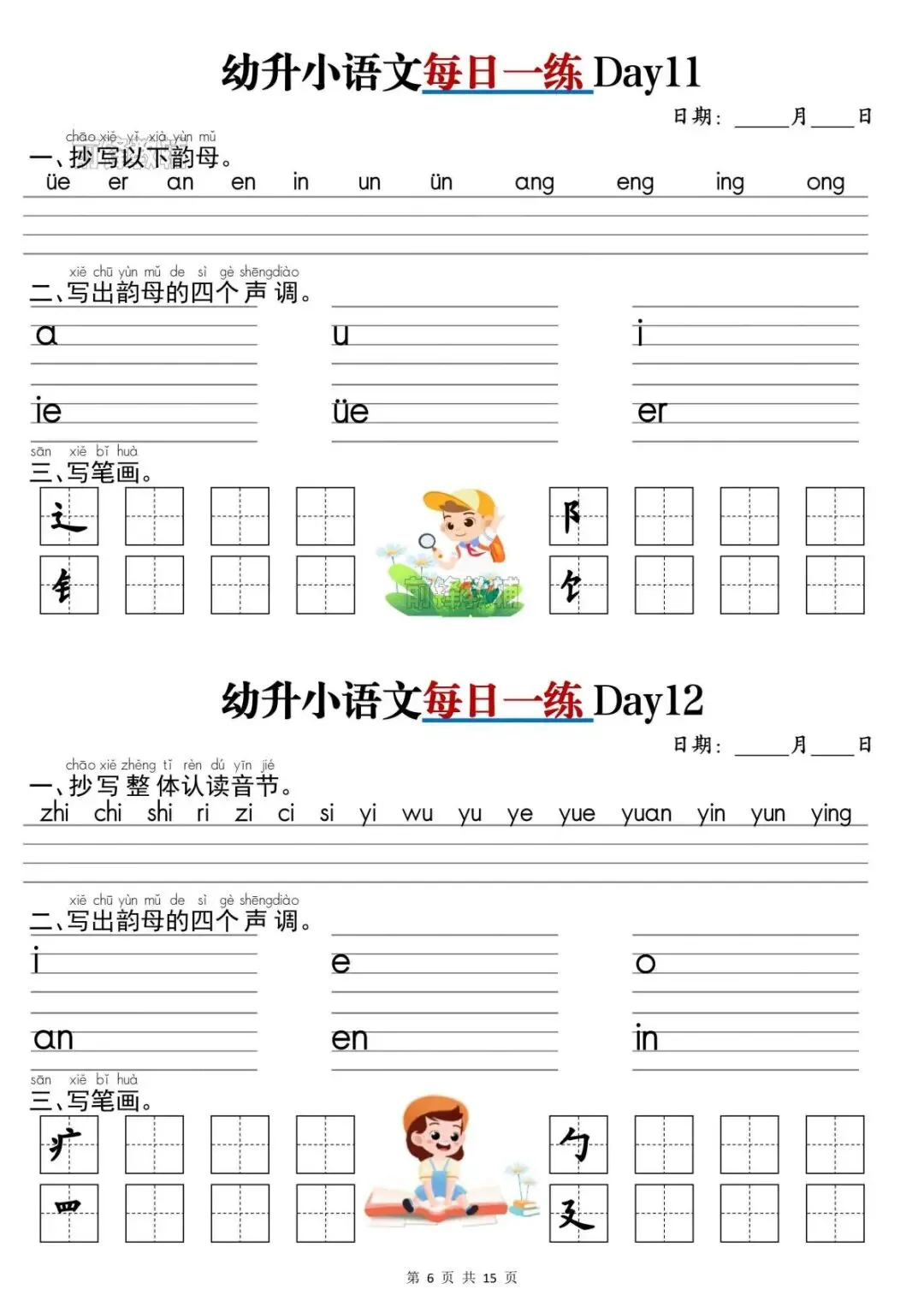 幼升小语文《每日一练》,完整版共15页,电子版可打印