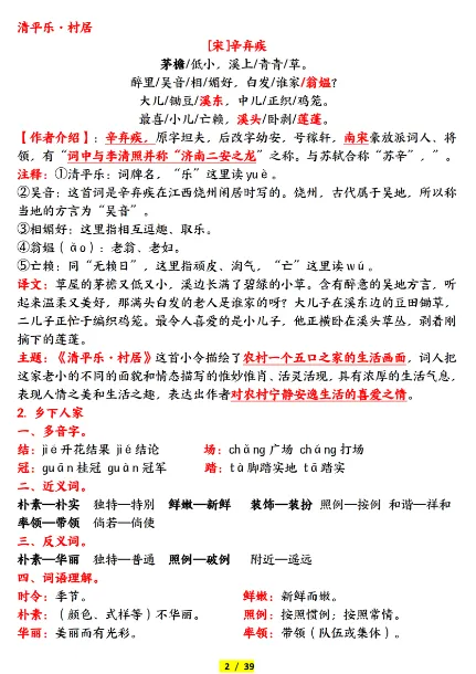 四年级(下)语文 全册知识点归纳,PDF电子版,可打印,免费下载