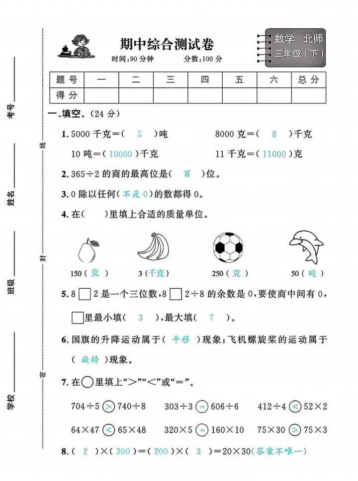 今日份分享三年级下册北师版数学期中测试卷5套含答案(完整电子版可打印)!这份资料已经整理成可打印版本,方便孩子随时翻看学习,建议家长先收藏,再转发给身边有需要的家庭,一起帮助孩子高效学习~