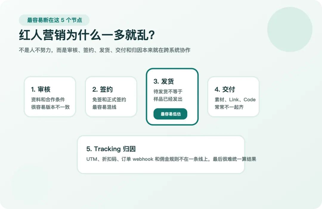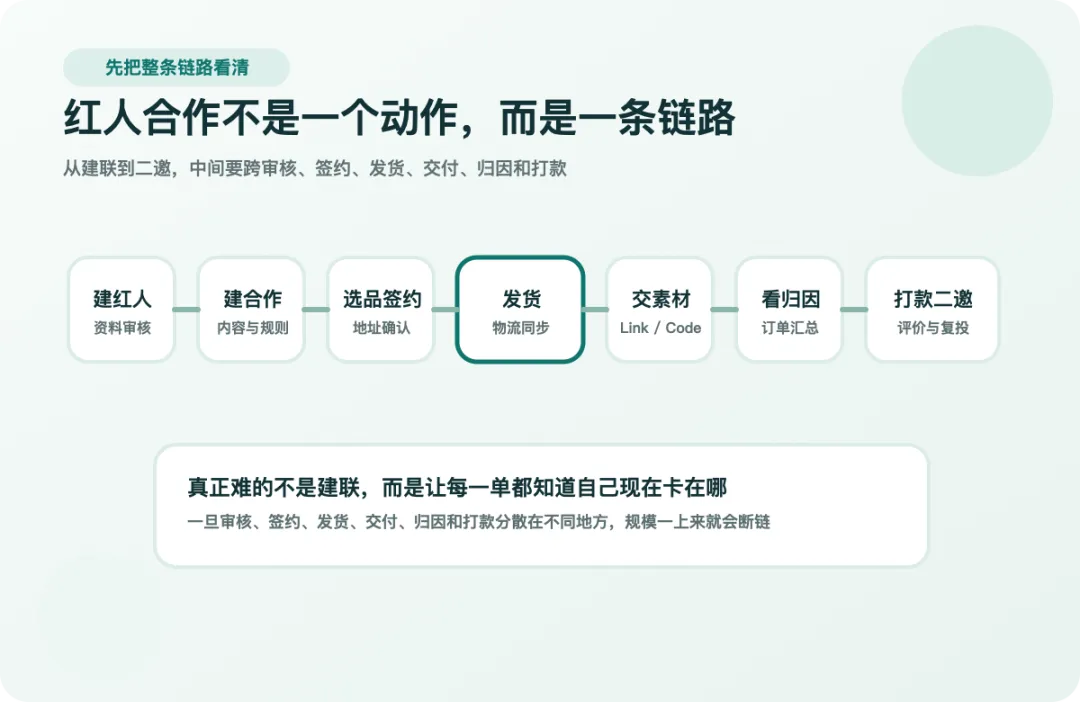 红人合作不是寄样就结束。真正决定你能不能放大规模的,是这条链路能不能稳定跑完。