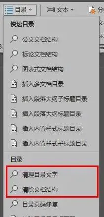 根据需要,也可以用【目录】菜单里的【清除文档结构】功能来一键清除整个文档或者选区范围所有段落的大纲级别设置