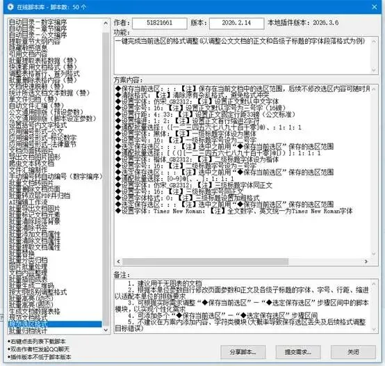 这个和上面的类似,但是是针对你选中的部分,比如你只需要调整某一段的格式,选中之后,点一下这个脚本,它就会自动把你选中的部分调整成规范的格式,不用影响其他部分,特别方便。