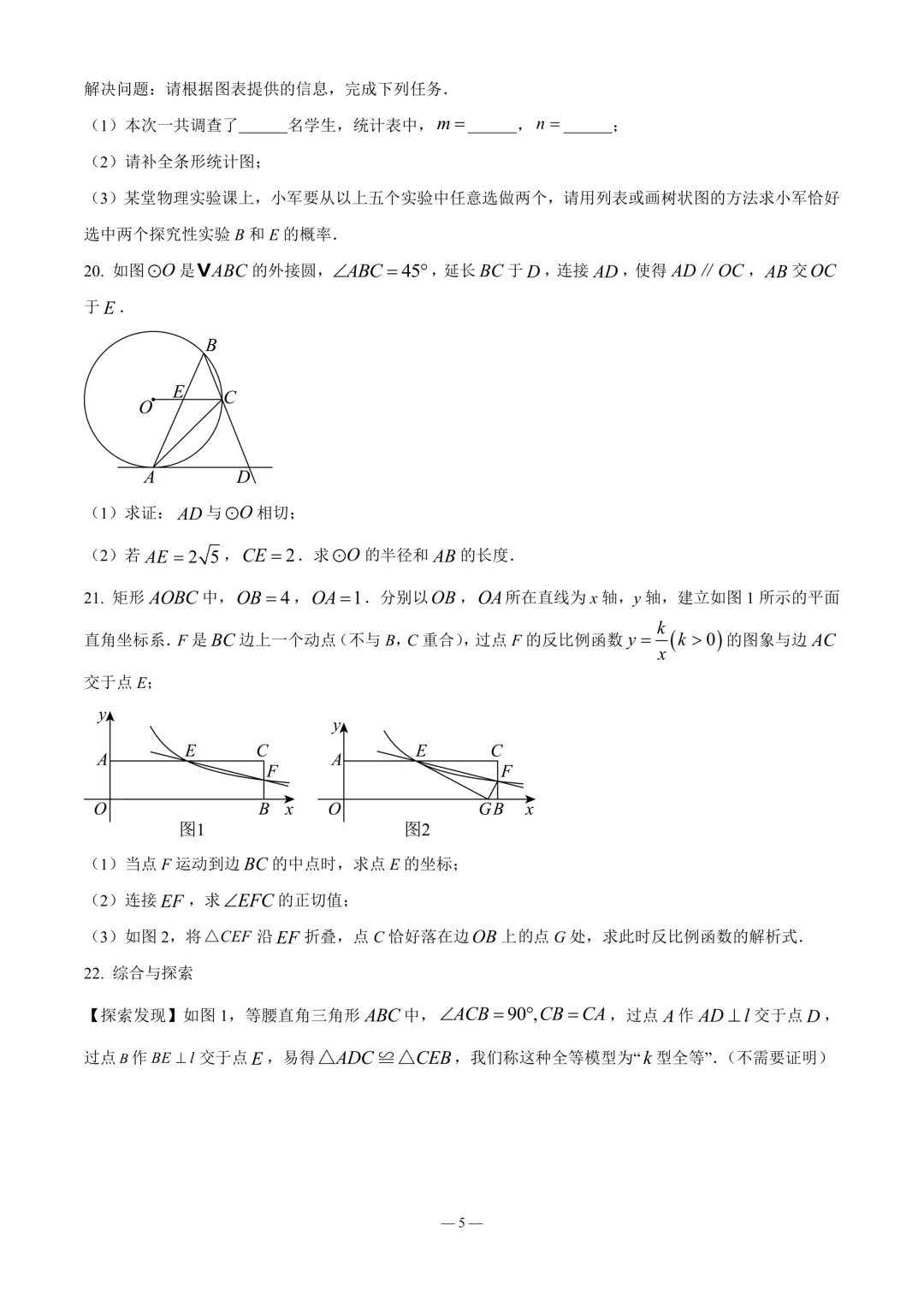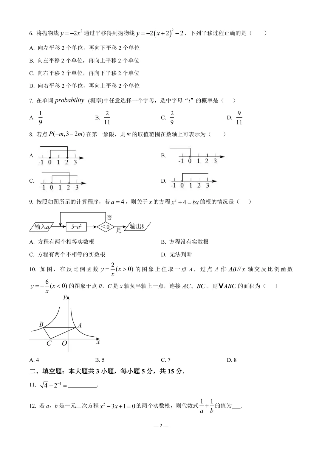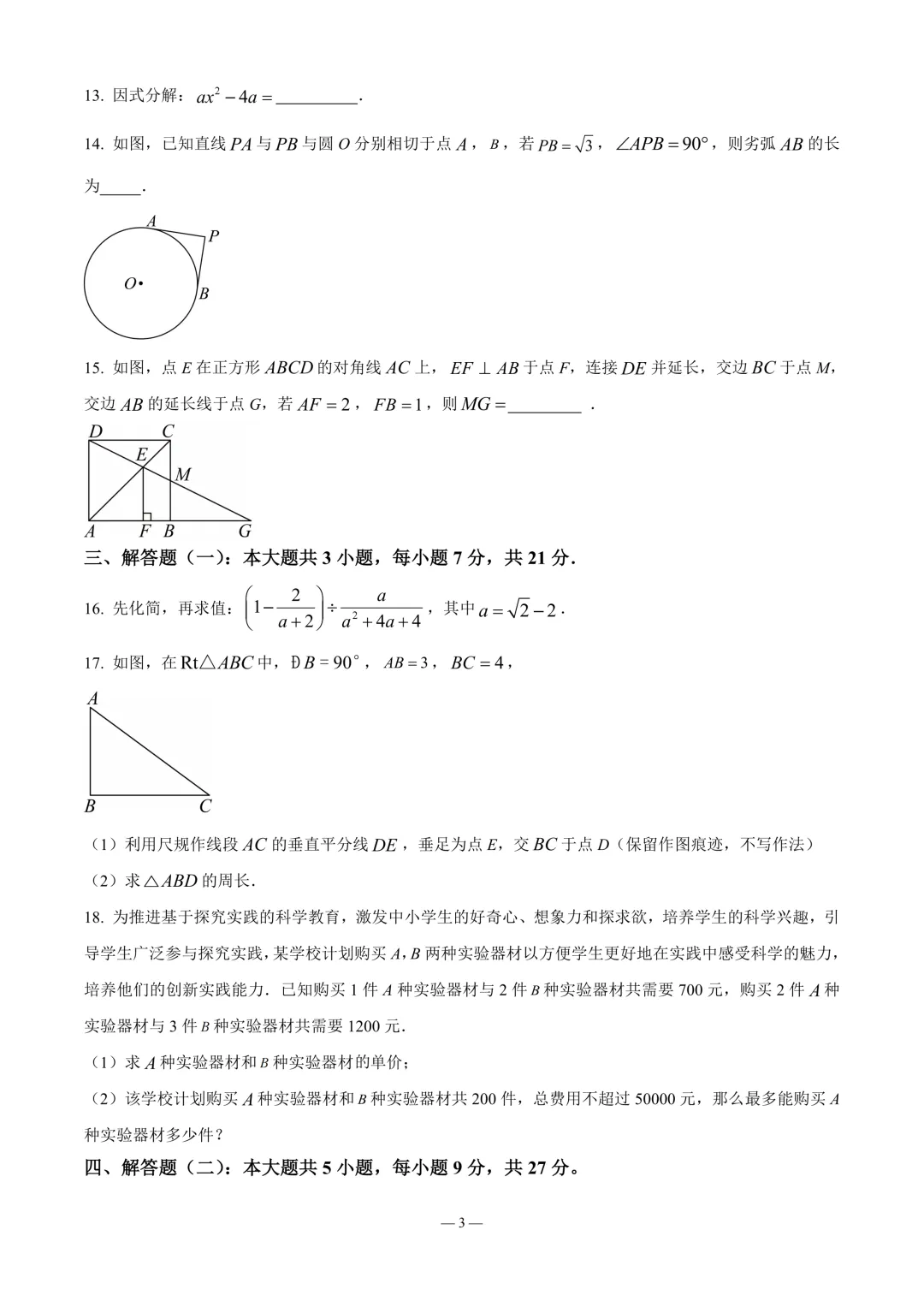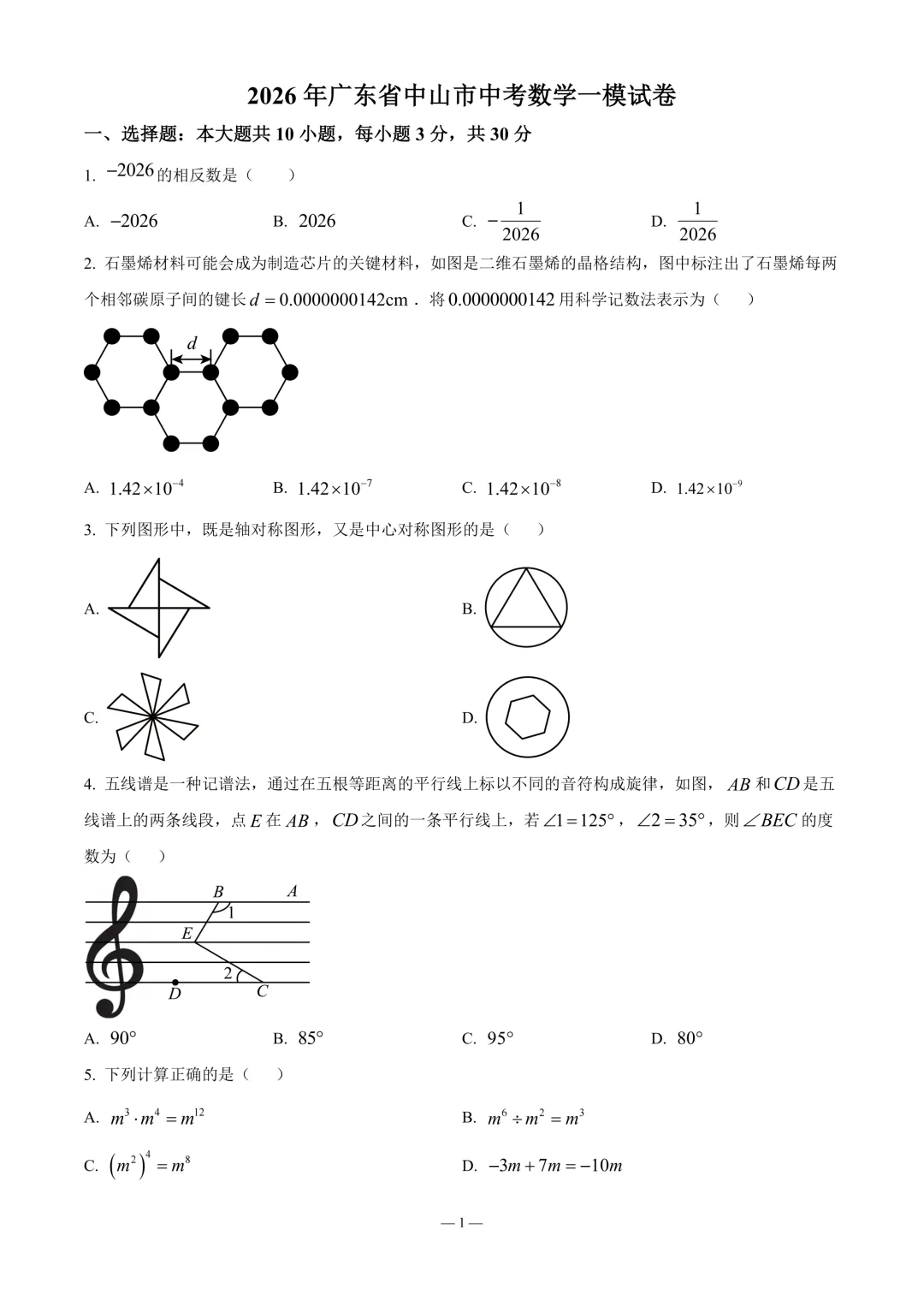 2026中山市中考纪中一模数学卷(可下载电子版)