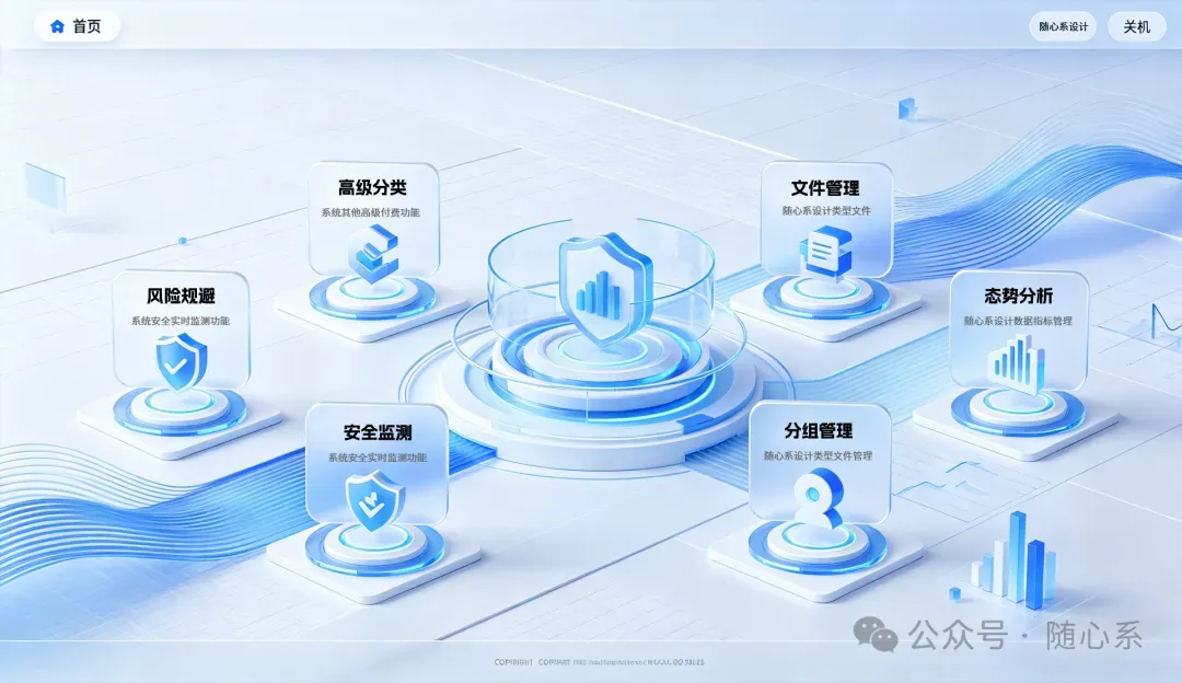 轻盈感:大面积留白、细线条分割、浅灰背景,减少视觉压迫