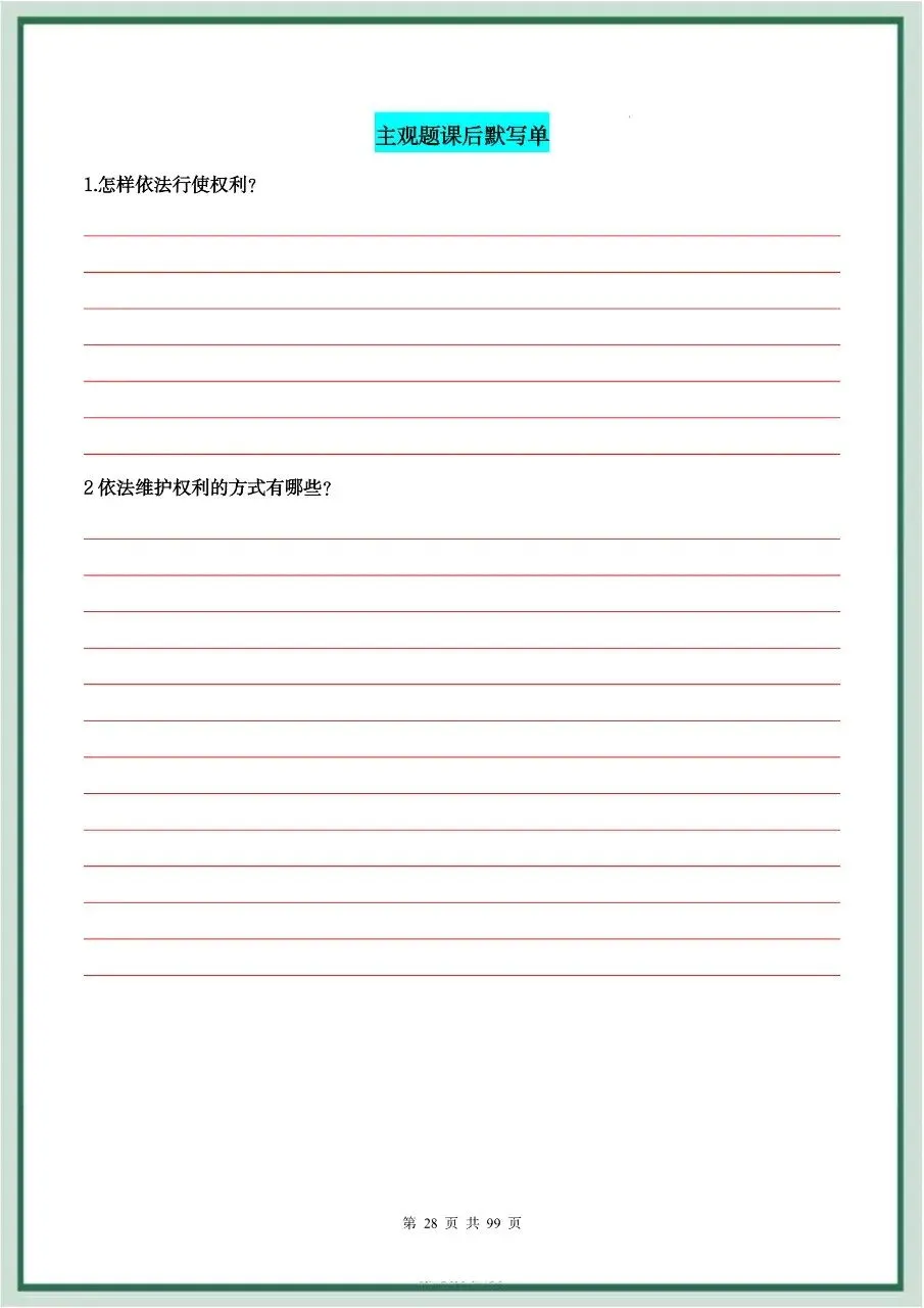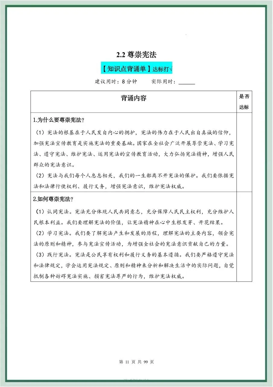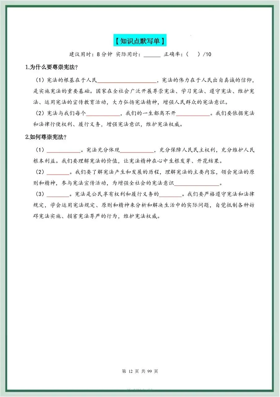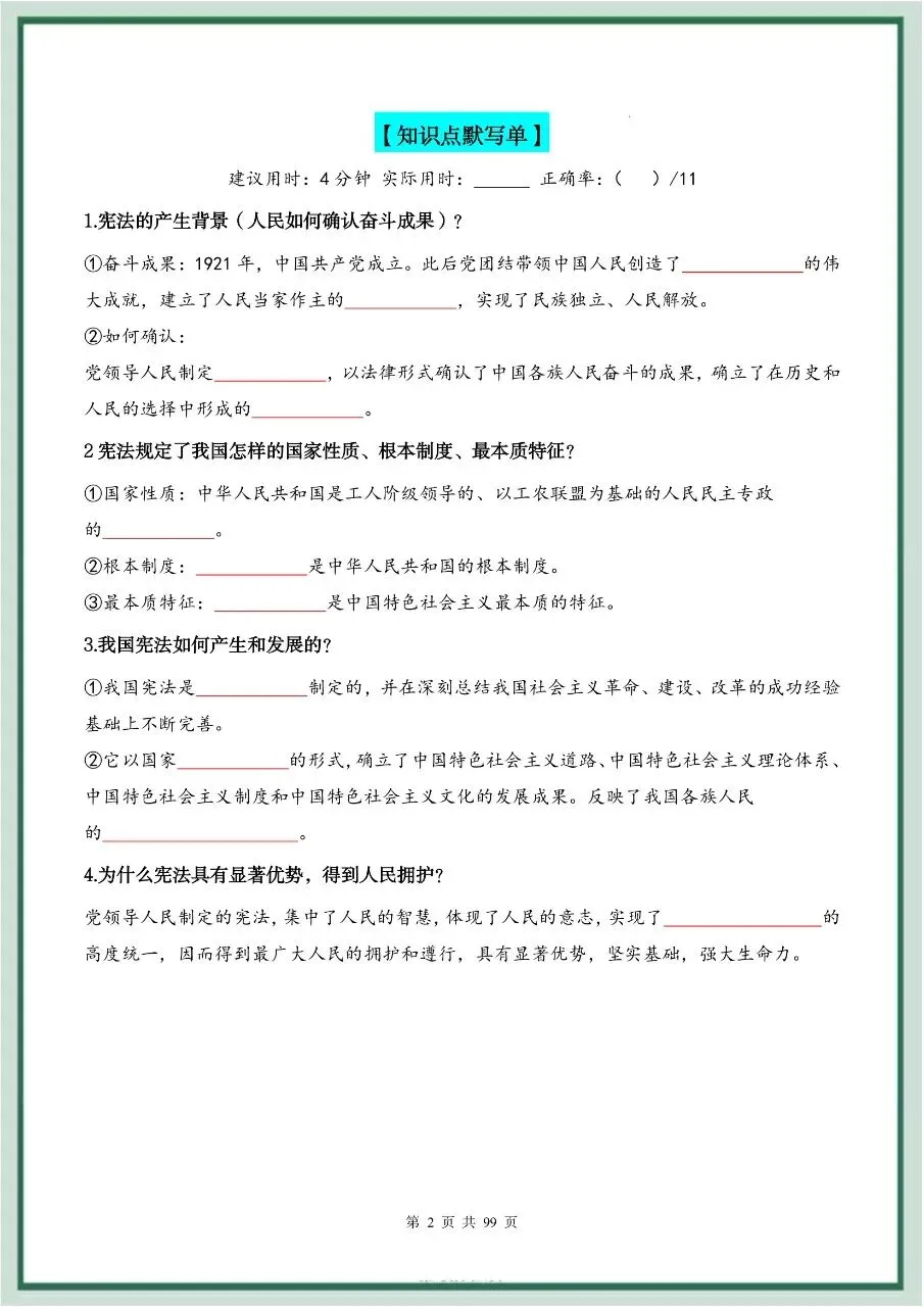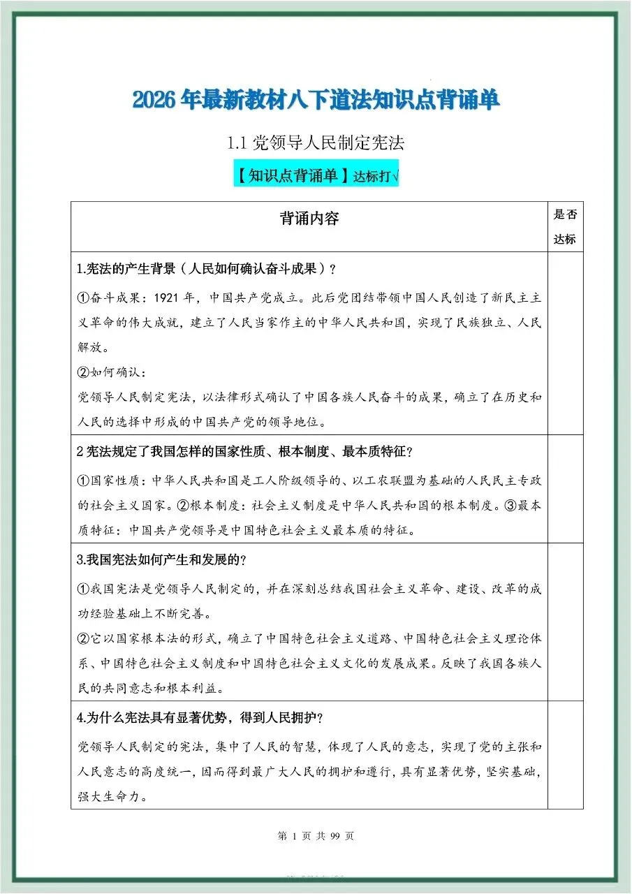 2026年最新版八年级下册道法全册知识点背诵单(答案版+默写版),完整可打印,学霸学习好帮手,建议家长打印,学霸人手一份!