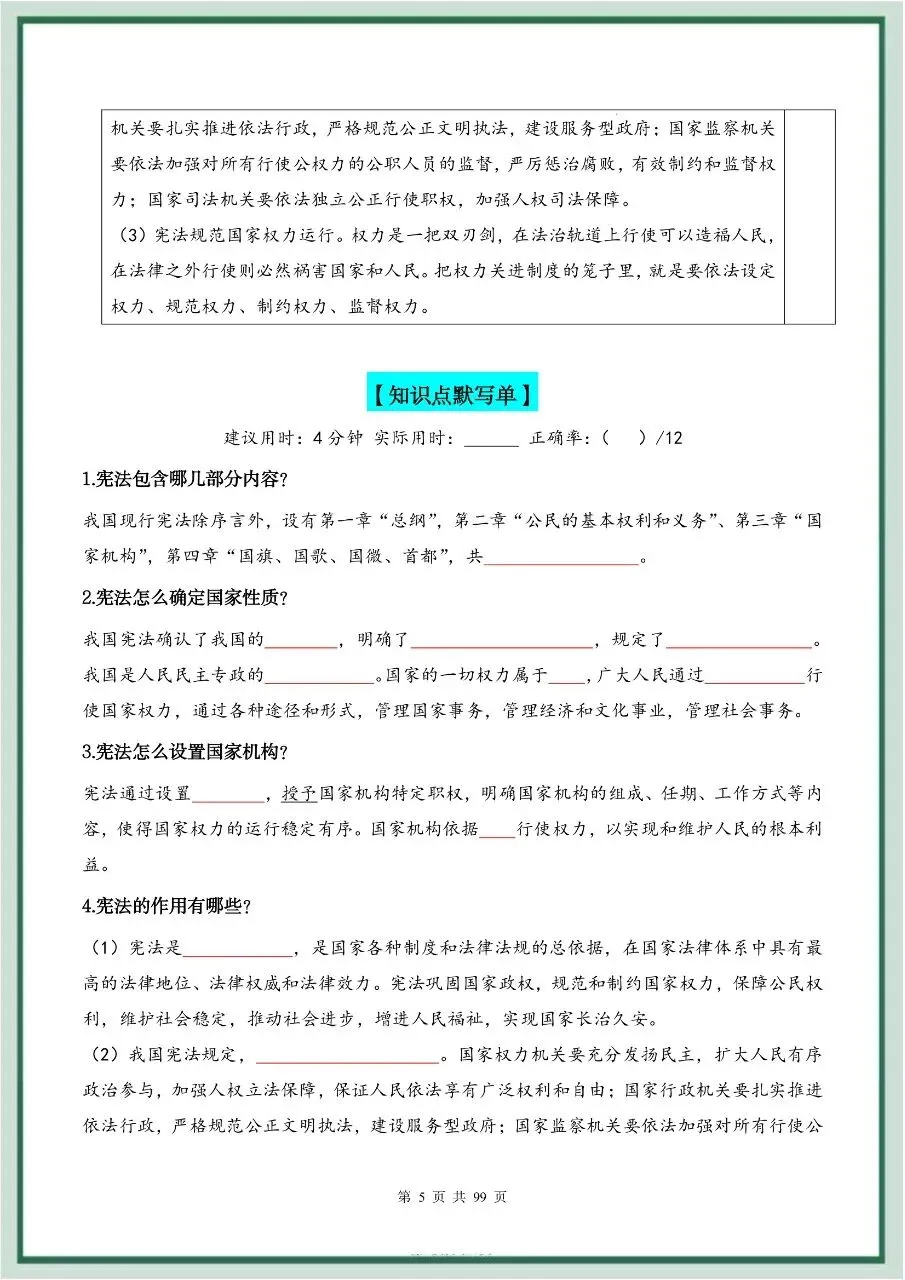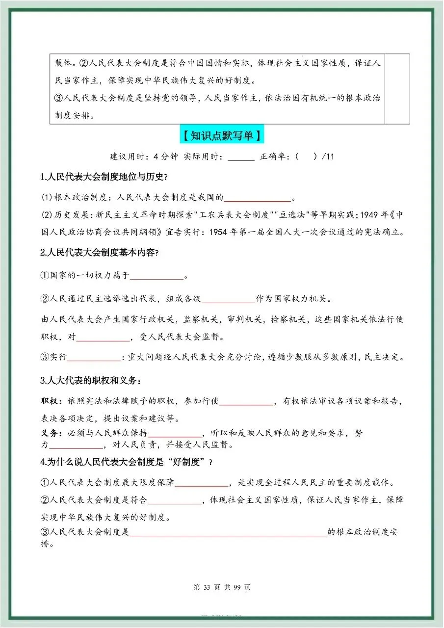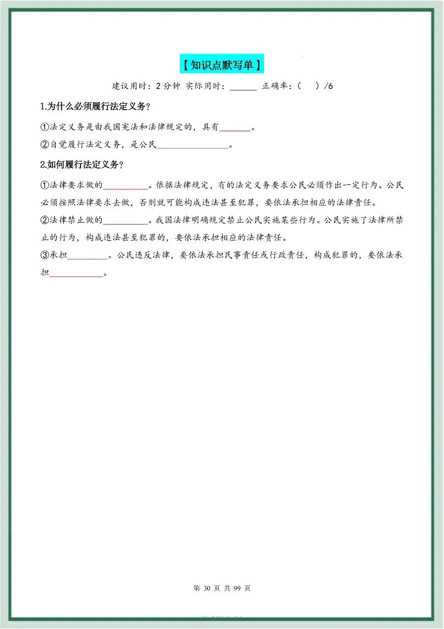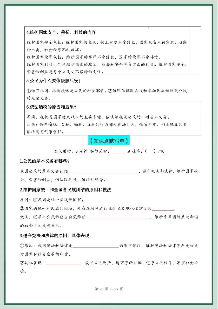 2026年最新版八年级下册道法全册知识点背诵单(答案版+默写版),完整可打印,学霸学习好帮手,建议家长打印,学霸人手一份!
