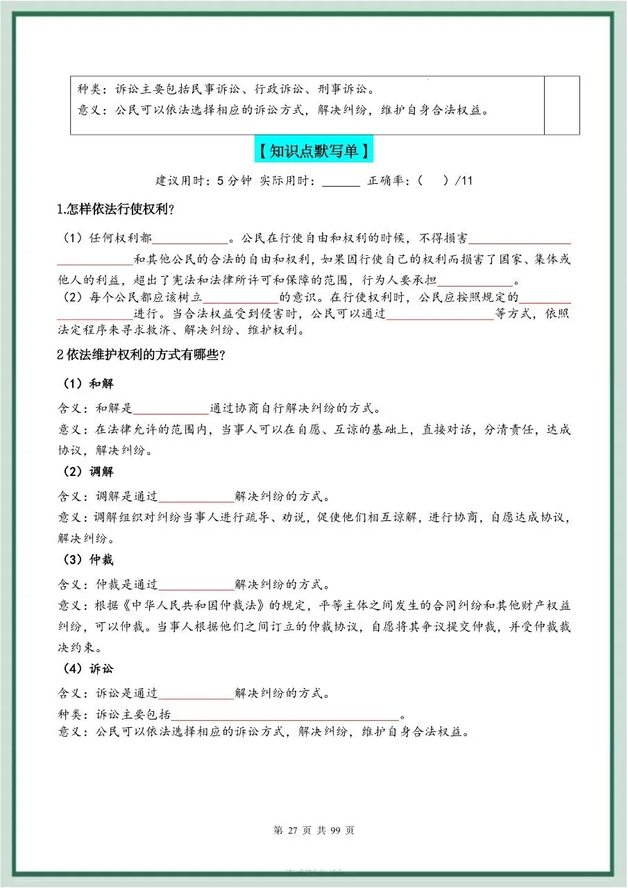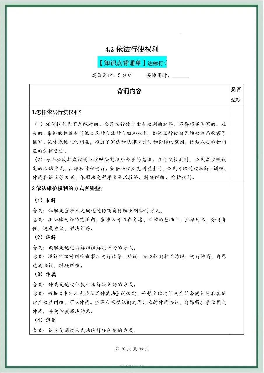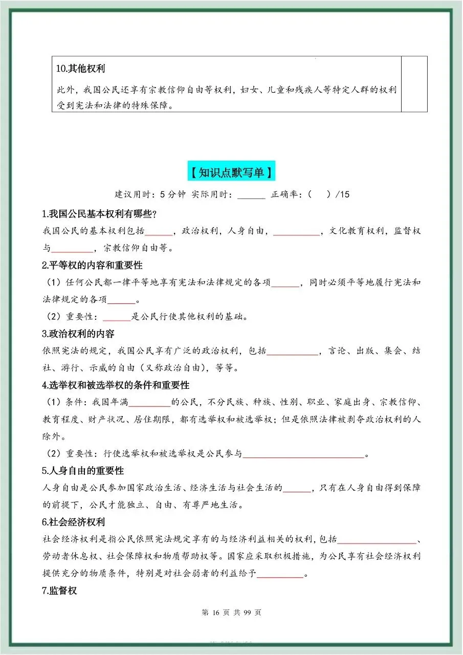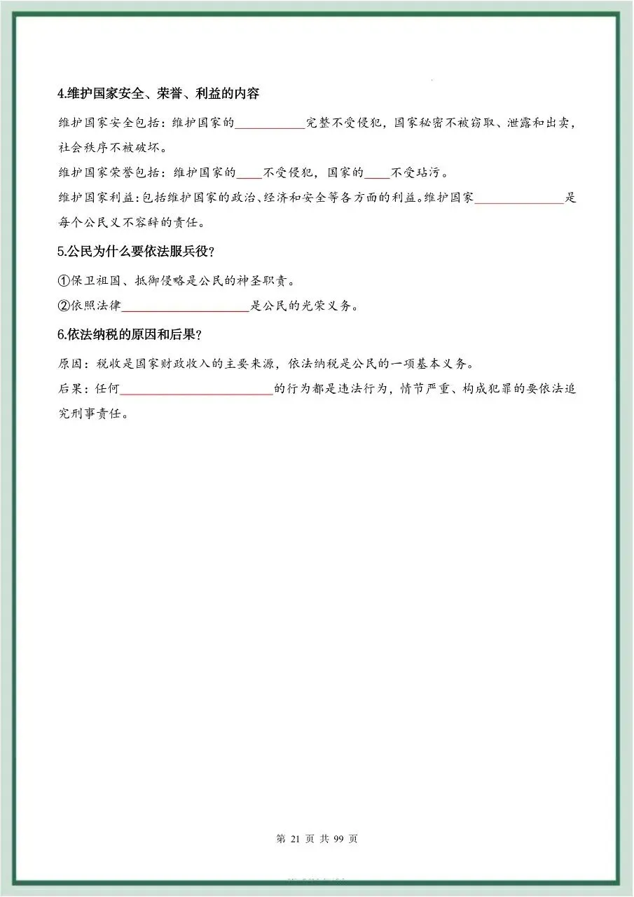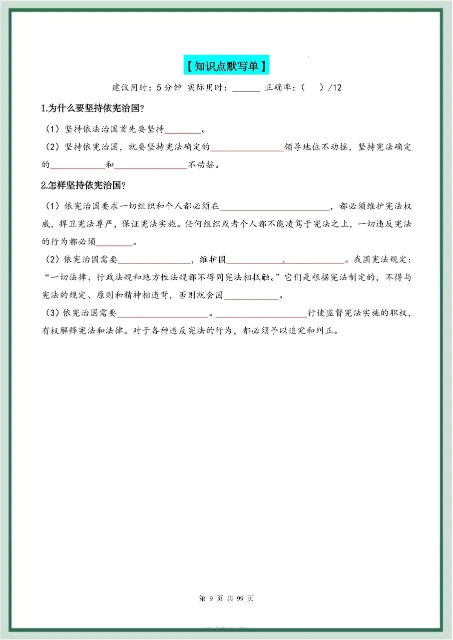 2026年最新版八年级下册道法全册知识点背诵单(答案版+默写版),完整可打印,学霸学习好帮手,建议家长打印,学霸人手一份!