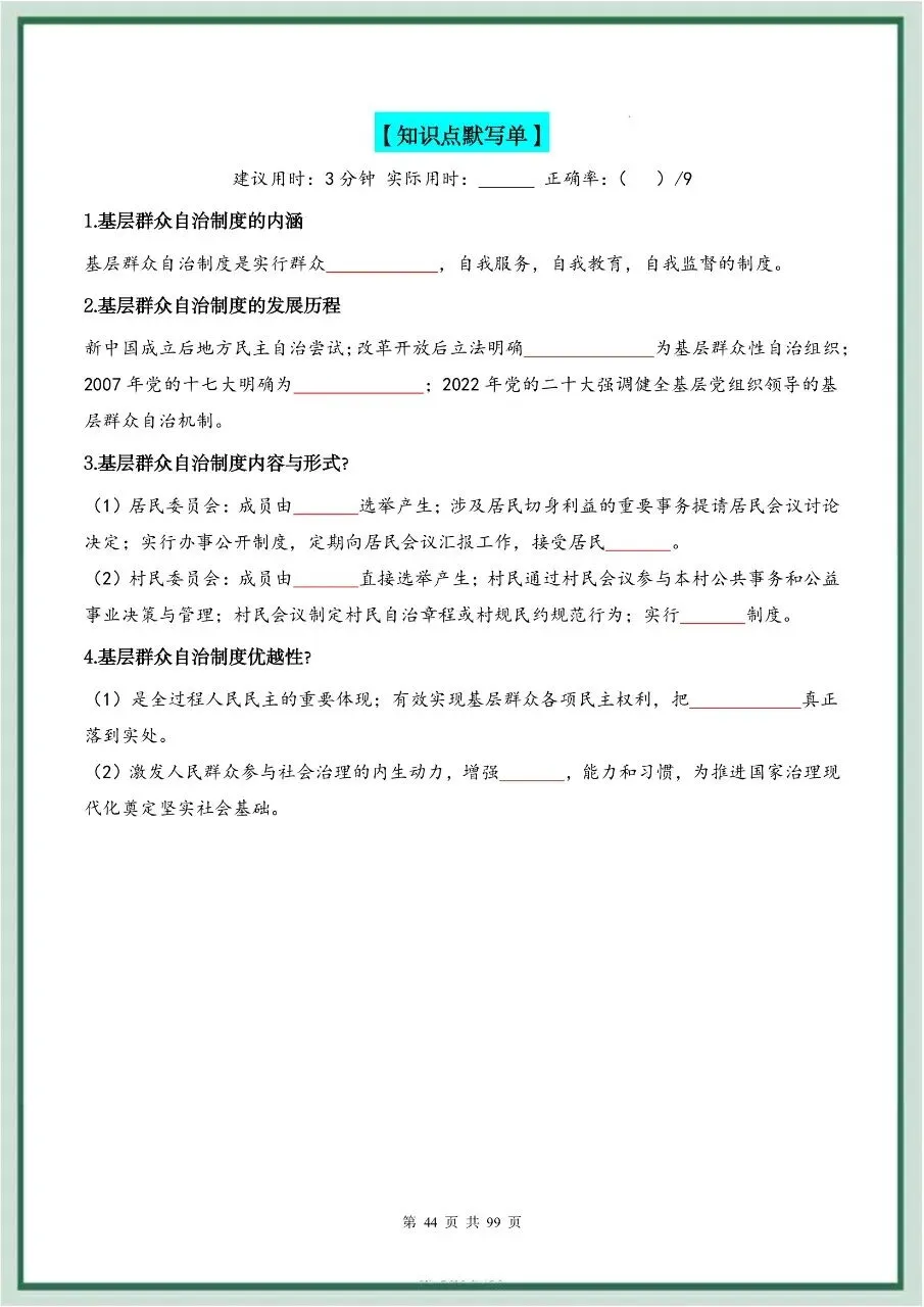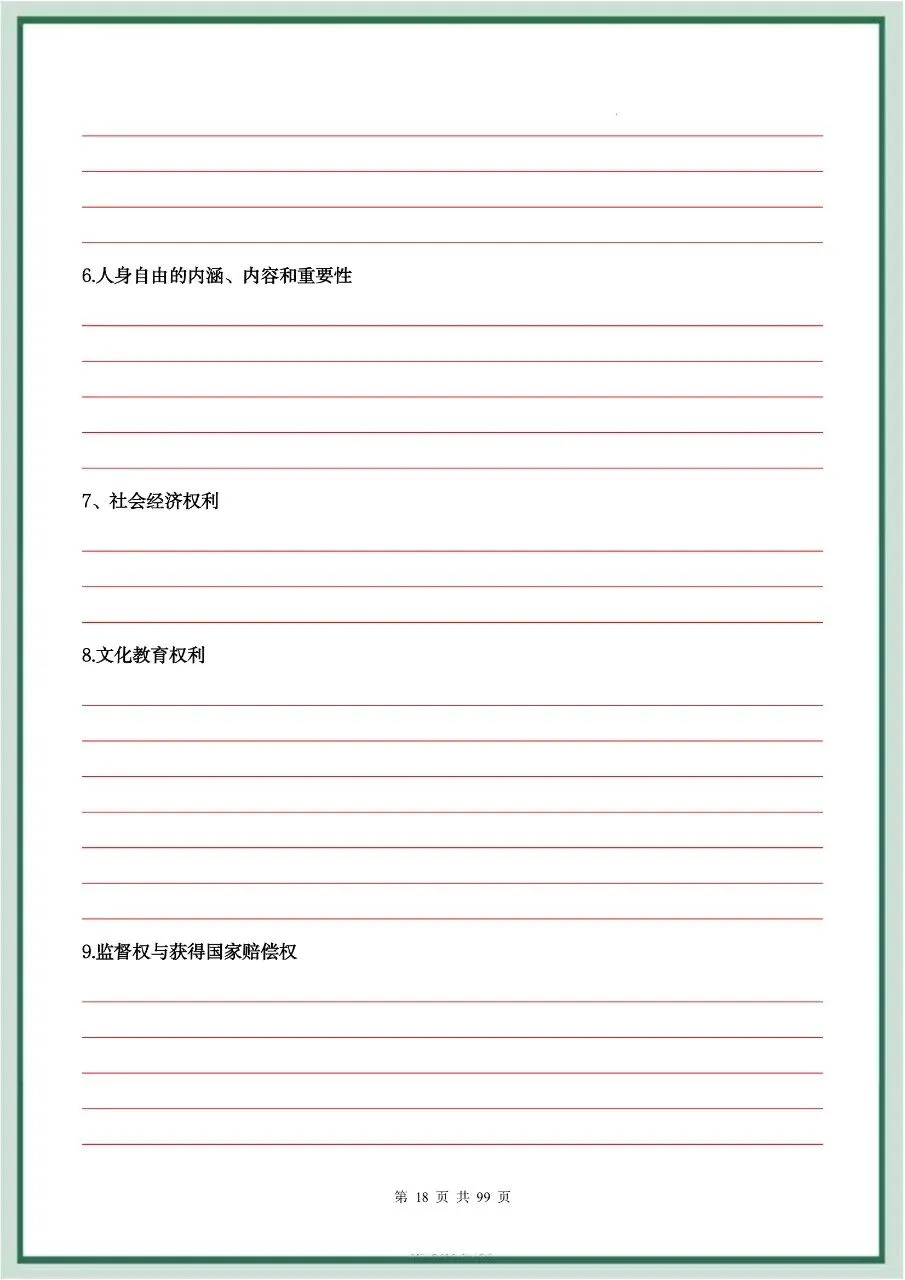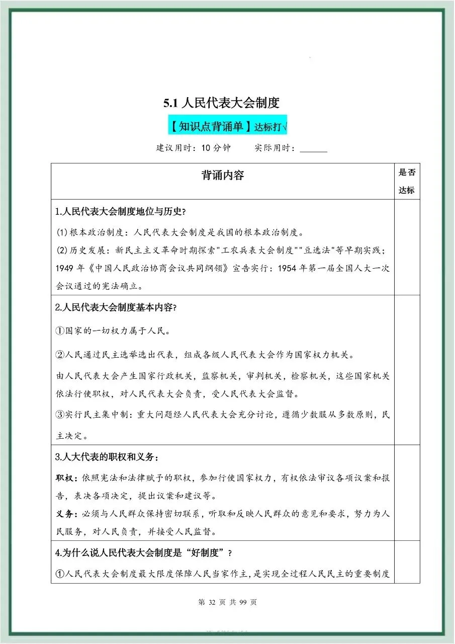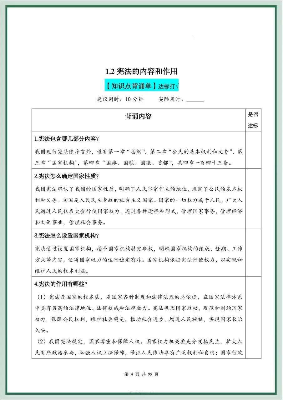 从宪法、国家机构到权利义务、制度原则,全册考点全覆盖,条理清晰、重点突出,背起来省时又省力。课前预习用它理清框架,课后复习巩固记忆,考前集中背诵,效率直接翻倍。