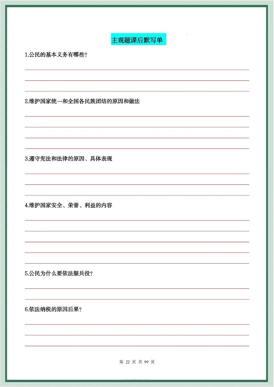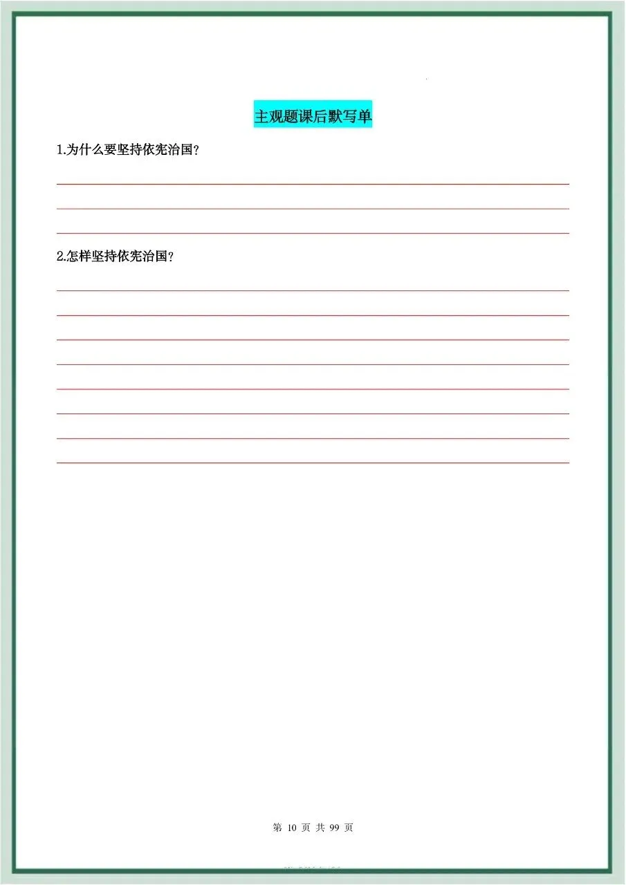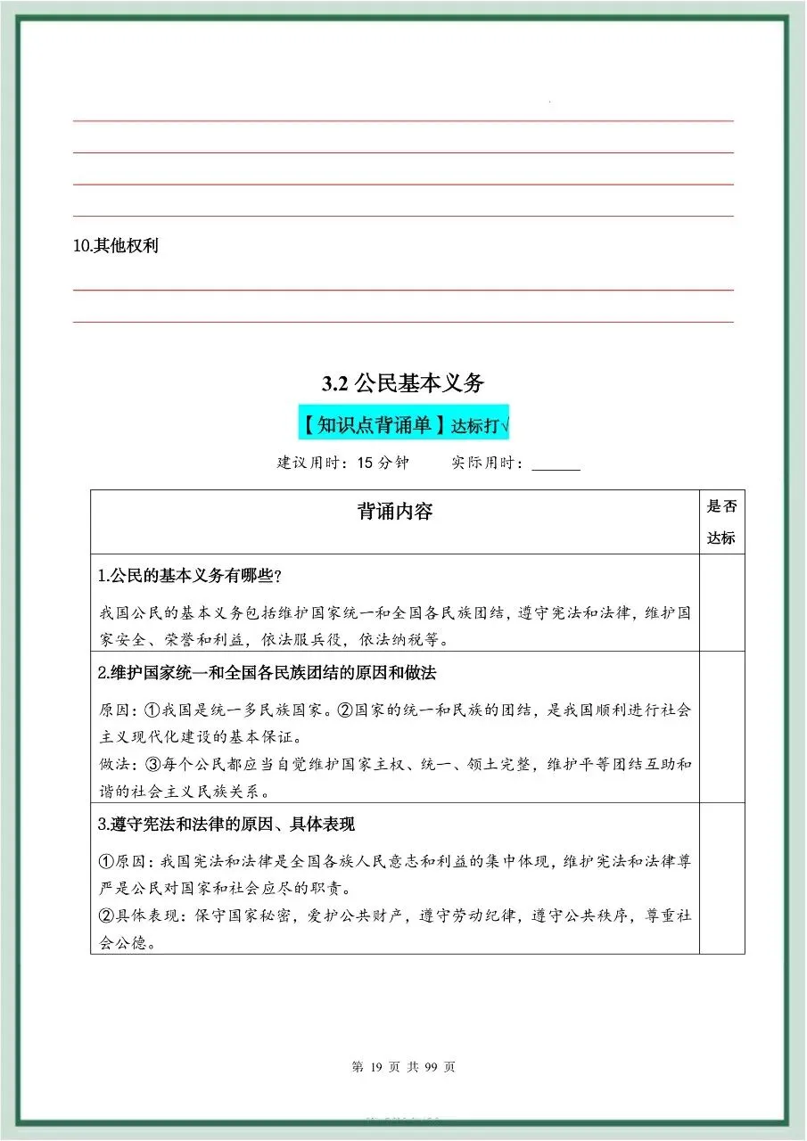 每天坚持读一读、背一背,把知识点吃透记牢,考试不慌不乱、不丢不漏。背熟这份背诵单,道法考试轻松拿满分,稳拿年级第一!