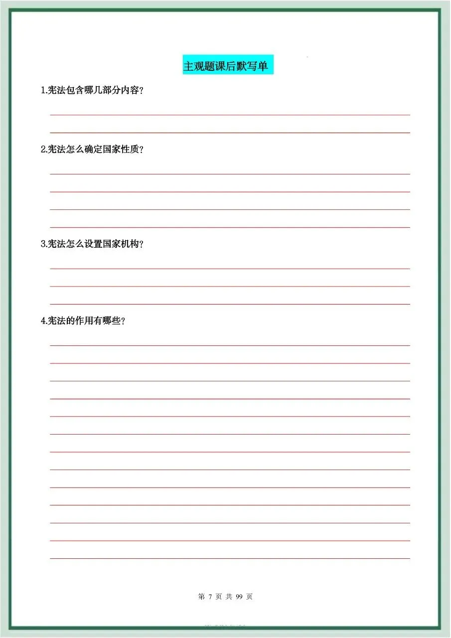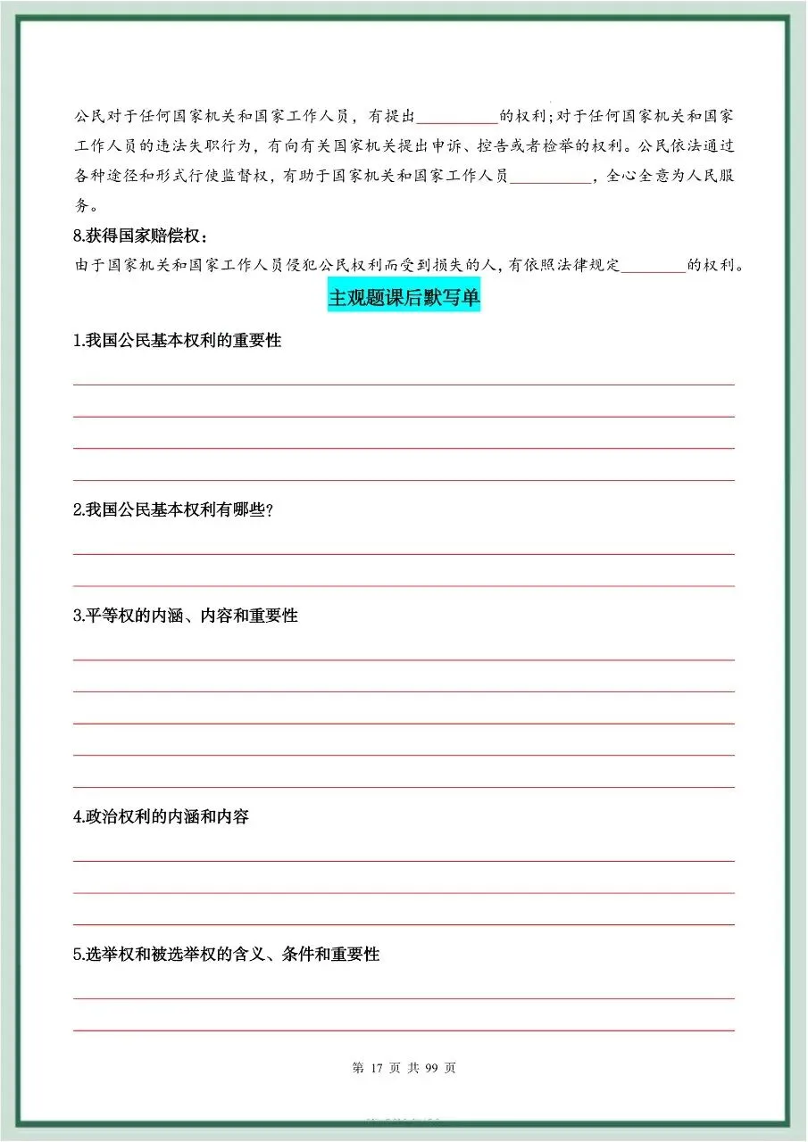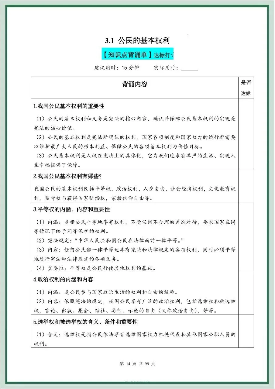 每天坚持读一读、背一背,把知识点吃透记牢,考试不慌不乱、不丢不漏。背熟这份背诵单,道法考试轻松拿满分,稳拿年级第一!